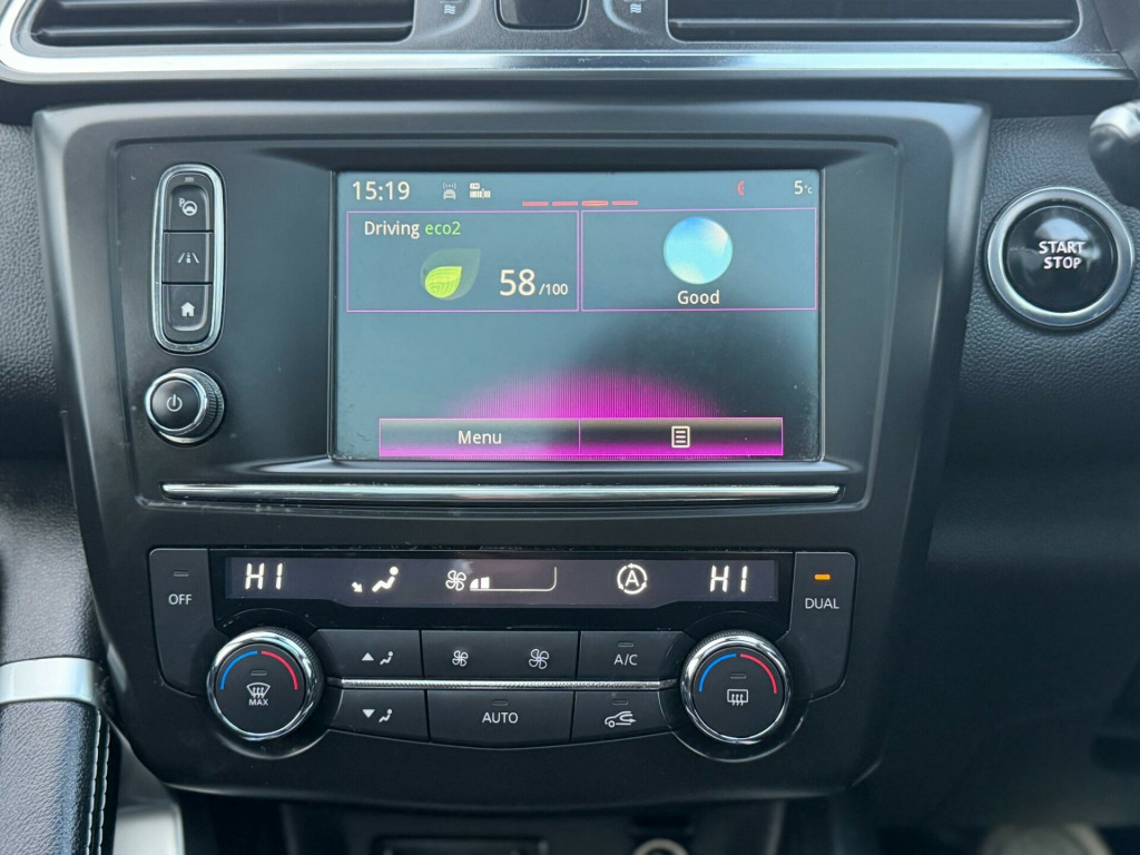 This 2017 Renault Kadjar TCe Signature Nav offers an excellent blend of style and practicality, making it a compelling choice for any driver. Powered by an efficient 1.2 litre petrol engine, this Euro 6 compliant model is designed for modern motoring. The Signature Nav trim level comes equipped with a host of desirable features, including the convenient Keycard with hands free entry, allowing for effortless access. Inside, you'll find the BOSE Energy Efficient Sound System for an enhanced audio experience, and Automatic Dual Zone Climate Control to ensure comfort for all occupants. For added peace of mind and ease of use, it boasts the Parking Pack Premium, which includes a rear camera and Blind Spot Assistance, alongside full LED headlights for superior visibility.This Renault Kadjar stands out with its impressive fuel economy, achieving up to 49 miles per gallon, which indicates it is more economical than many similar vehicles. Furthermore, its low CO2 emissions highlight its environmental consideration, and it sits in a low insurance group, suggesting that running costs are kept to a minimum compared to other cars in its class. These factors combine to make this Kadjar a sensible and cost effective option for everyday driving. rking pack premium, 19in alloy wheels - diamond cut - zeus, 3 point inertia reel seatbelts, abs with ebd - electronic brake distribution and emergency brake assist, accessory power point, adjustable dashboard illumination, air recirculation, airbags - drivers two stage auto adaptive, airbags - front lateral, airbags - front passenger deactivation, airbags - front passengers two stage adaptive, airbags - front and rear curtain, android auto, anti-drill door locks and ignition barrel, apple carplay, armrest - front centre, assisted parking brake, automatic headlights and windscreen wipers, bose energy efficient sound system, body sided moulding with chrome insert, central rear armrest with cup holders, chrome detailing, chrome window surrounds, climate control - automatic dual zone, climate pack, convenience pack, courtesy lights - rear, cruise control with speed limiter, daytime running lights - led, display - digital speedometer - 7in tft screen, door handles - body coloured - front, door mirrors - body coloured shell, door mirrors - electrically operated - heated - folding, door-boot open warning light, driver and passenger seat belt undone warning audible alert, dust protection kit, esp - electronic stability programme with asr - anti-skid regulation and ucl - understeer logic control, eco mode, electric windows - front, electric windows - rear, electrochromatic rear view mirror, electronic parking brake, exterior temperature sensor, extra tinted windows - rear and tailgate, fingertip audio system remote control, fleet management, fog lights with cornering function, front and rear skids, front and rear towing rings, full flat floor, glovebox light, gravel protection kit, hsa - hill start assist, headlights - full led, headrests - front fully adjustable, headrests - rear height adjustable x3, heated rear windscreen, heating ducts to feet of rear passengers, height adjustable front seat belts, isofix - child seat fixing points - outer rear seats, indicators with side repetitions, insurance approved - category 1 alarm system and immobiliser, integrated fuel filler cap, interior courtesy light controlled by all 4 doors, keycard - hands free, low fuel level warning light, luggage compartment - illumination, multi position trunk floor, oil level gauge, panoramic sunroof, parking sensors - front and rear, passenger height adjustment seat, pollen filter, power assisted steering, protective rear brake disc, raid - renault anti intruder device, rain protection kit, reading lights - driver and front passenger, rear seat belt undone warning audible alert, rev-counter, roof rails, satellite navigation - r-link v2 system, seats - 3-seat rear bench, seats - 60-40 split folding rear, seats - drivers height and lumbar adjustment, seats - height adjustable front seatbelts with double pretensioners, seats - one touch easy folding rear bench, side impact protection bars, side and boot kick plates, signature nappa leather steering wheel, steering wheel - rake and reach adjustable, sun visor - mirror with light, superlocking, trip computer, tyre inflation kit, tyre pressure monitoring system, usb connection, visio system, windscreen wipers - front with variable speed adjustment, windscreen wipers - rear