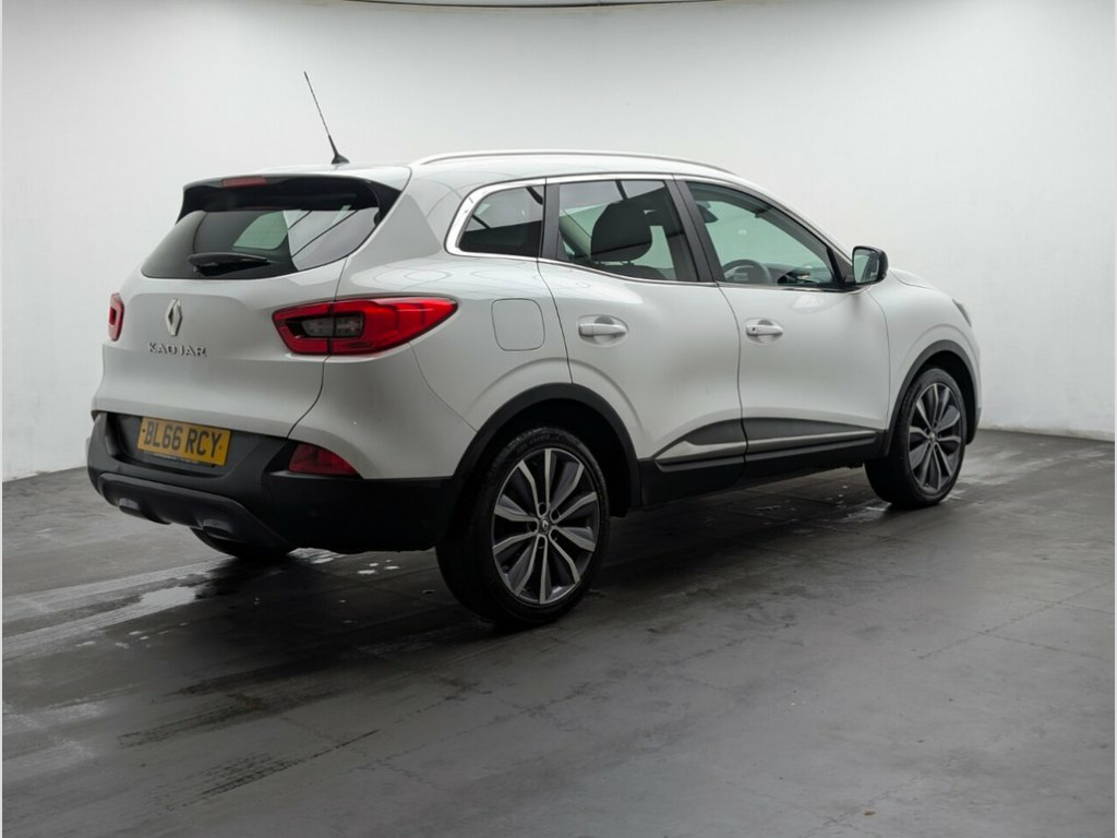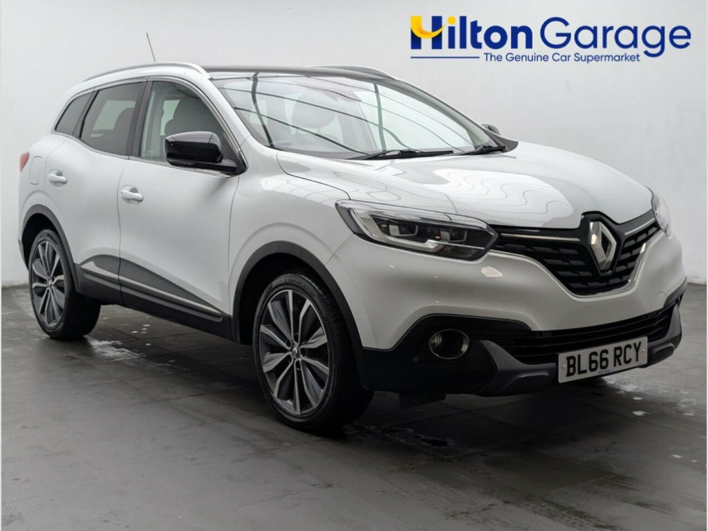Leather seats, Navigation, Android Auto, Cruise control and Parking sensors. 8 services - last service done at 51723 miles. This 2016 Renault Kadjar TCe Signature Nav boasts an exceptionally low mileage of just 55,000 miles, a significant advantage for a vehicle of its age. This Euro 6 compliant 1.2 litre petrol model comes with an MOT valid until July 2026 and a clear vehicle history check, offering peace of mind. The Signature Nav trim level includes desirable features such as front and rear parking sensors for effortless manoeuvring, automatic dual zone climate control for personalised comfort, and a fixed panoramic sunroof that floods the cabin with natural light. Connectivity is also a strong point, with Android Auto integration allowing seamless access to your smartphone apps. The Kadjar Signature Nav is designed to be an economical choice, achieving an impressive 49 miles per gallon, which is a highlight indicating its efficiency compared to similar vehicles. Furthermore, its low CO2 emissions and low insurance group further contribute to its cost effectiveness, making it an attractive option for many drivers. This combination of low running costs, comprehensive features, and excellent provenance makes this Renault Kadjar a compelling proposition. 19in Alloy Wheels - Diamond Cut - Zeus, 3 Point Inertia Reel Seatbelts, ABS with EBD - Electronic Brake Distribu, Accessory Power Point, Adjustable Dashboard Illumination, Air Recirculation, Airbags - Drivers Two Stage Auto Adaptiv, Airbags - Front and Rear Curtain, Airbags - Front Lateral, Airbags - Front Passenger Deactivation, Airbags - Front Passengers Two Stage Ada, Android Auto, Anti-Drill Door Locks and Ignition Barre, Apple CarPlay, Armrest - Front Centre, Assisted Parking Brake, Automatic Headlights and Windscreen Wipe, Body Sided Moulding with Chrome Insert, BOSE Energy Efficient Sound System, Central Rear Armrest with Cup Holders, Chrome Detailing, Chrome Window Surrounds, Climate