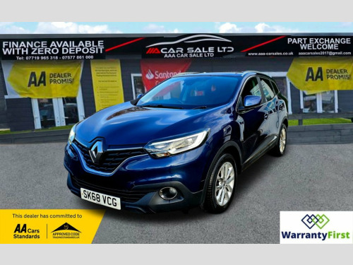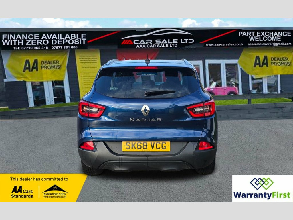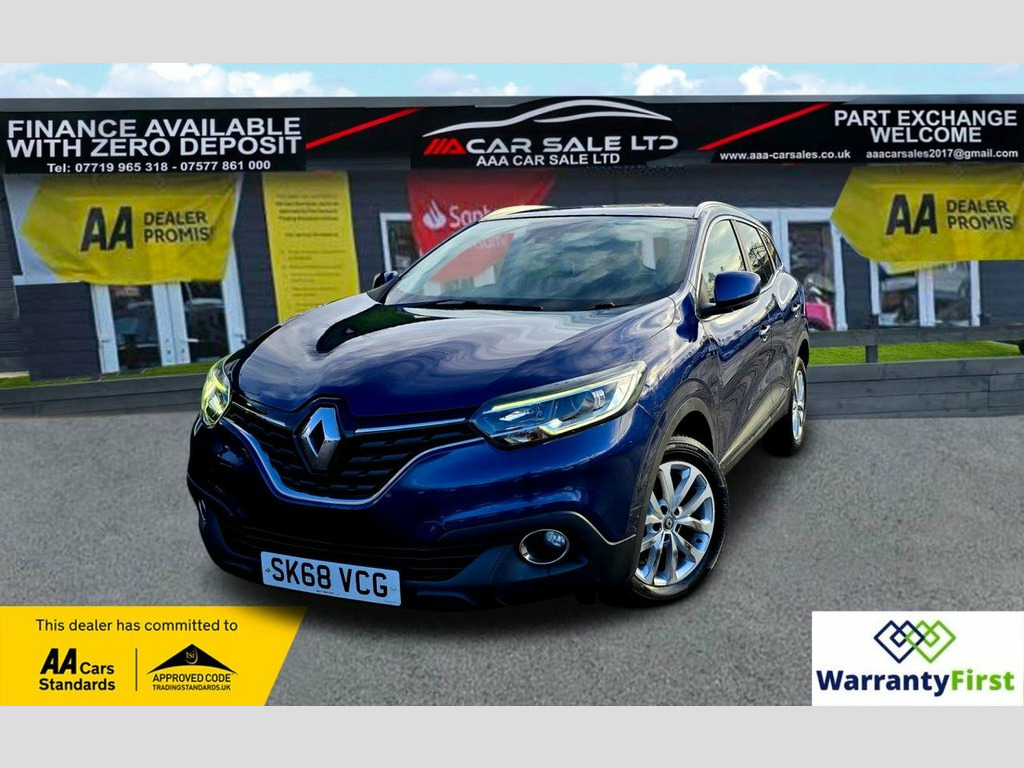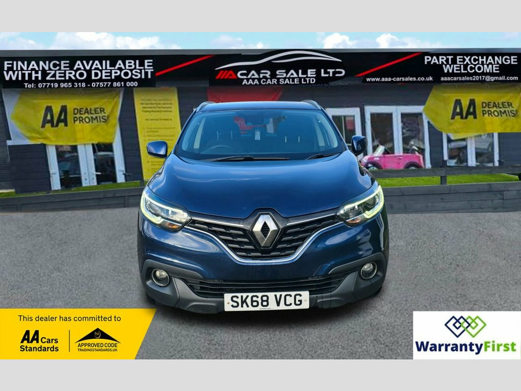 **AAA CAR SALES DARLINGTON LTD HAVE THE PLEASURE TO PRESENT THIS RENAULT KADJAR 1.3 TCe Dynamique Nav SUV 5dr Petrol Manual Euro 6 (s/s) (140 ps) IN COSMOS BLUE PAINTWORK. FULL SERVICE HISTORY - SERVICED AT 6K, 12K, 18K, 36K, 51K, 67K AND SERVICED BY OUR TEAM AT 83K. 2 KEYS+ALL OUR CARS GO THROUGH 72 POINT INSPECTION,ALL OF OUR CARS COME WITH 12 MONTHS AA BREAKDOWN COVER, UP TO 12 MONTH MOT WITHOUT ADVISORIES,INTERIM SERVICE,HPI CHECKED VIA EXPERIAN,3 MONTHS WARRANTY WITH THE OPTION TO UPGRADE **, **NATIONWIDE DELIVERY AVAILABLE ON OUR OWN TRANSPORTER AT COMPETITIVE RATES**, ***AUTOTRADER CUSTOMER SERVICE AWARD 2019,2020,2021&2022 YEAR ON YEAR***, WE ARE OPEN 7 DAYS A WEEK FOR YOUR CONVIENIENCE,CALL 01325 499787 OR EMAIL US AT [email protected] or visit our website www.aaa-carsales.co.uk,YOU CAN BUY WITH FULL CONFIDENCE FROM AAA CARS CHECK OUR AUTOTRADER REVIEWS FOR FULL PEACE OF MIND, 12v Socket - Front, 17in Alloy Wheels - Athena, 3 Height Adjustable Rear Head Restraints, 3 Point Inertia Reel Seatbelts, 60-40 Split Folding Seats, ABS with EBD - Electronic Brake Distribu, Accessory Power Point, Adjustable Dashboard Illumination, Air Recirculation, Airbags - Curtain Front and Rear, Airbags - Deactivation of Front Passenge, Airbags - Drivers Two Stage Auto Adaptiv, Airbags - Front Lateral, Airbags - Front Passengers Two Stage Ada, Anti-Drill Door Locks and Ignition Barre, Apple CarPlay and Android Auto, Arkamys 3D Sound 4x35W DAB Radio with Bl, Armrest - Front Centre, Cloth - Dark Carbon, Assisted Parking Brake, Automatic Dual Zone Climate Control, Cosmos Blue, Automatic He