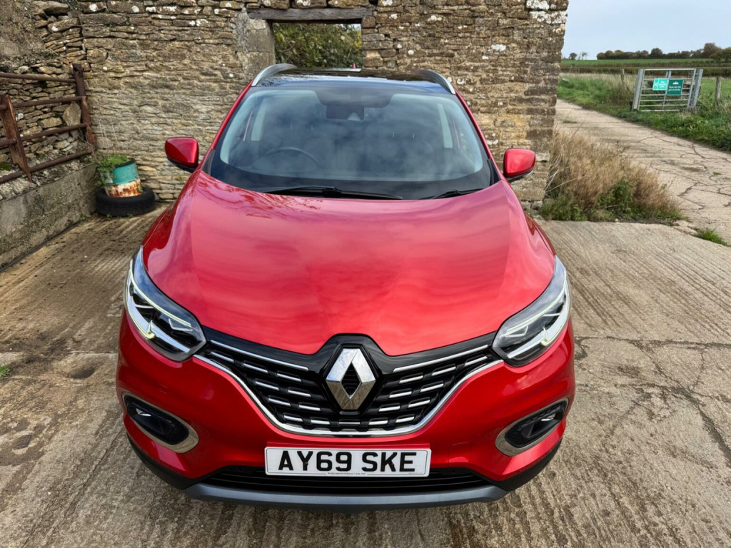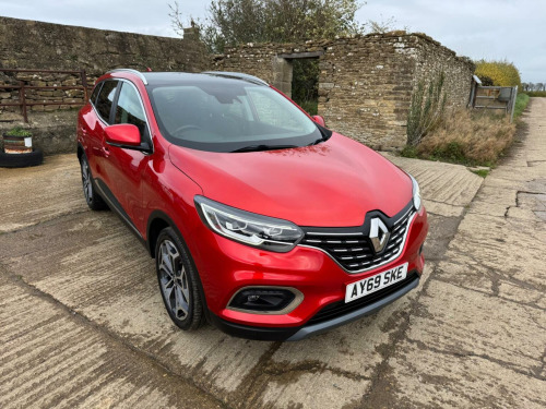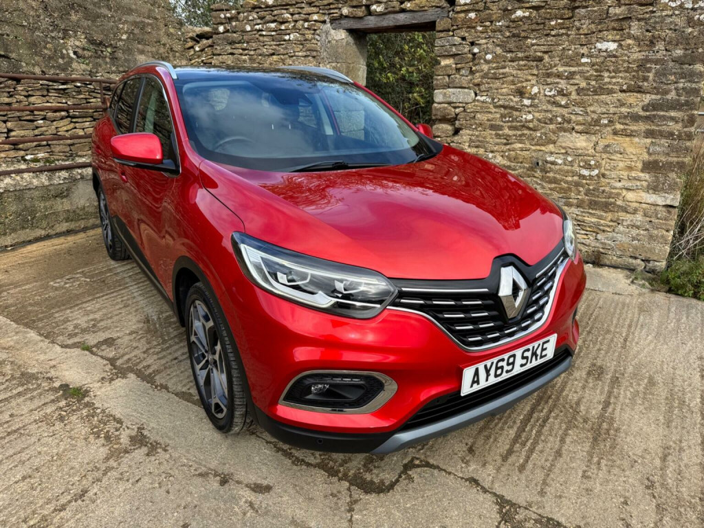 The Renault Kadjar 1.3 TCe GT Line Euro 6 (s/s) 5dr SUV with a 1.3-liter turbocharged petrol engine that complies with the Euro 6 emission standards, includes a start/stop system, and is equipped with the premium GT Line trim. This specification indicates a well-appointed vehicle with features such as full LED headlights, 19-inch alloy wheels, a panoramic glass sunroof, a premium sound system, built-in navigation, rear-view camera, and keyless ignition. This 2019 Renault Kadjar TCe GT Line offers a superb ownership proposition, having been cherished by just one owner from new and boasting a clear vehicle history, comes with 2 keys , long Mot and the following services 02/11/2020 at 10110 miles ,21/09/2021 at 18404 miles ,22/04/2022 at 27177 miles ,24/08/2023 at 36977 miles , 23/08/2024 at 51250 miles . As a Euro 6 compliant 1.3 litre petrol model, it combines efficient performance with a refined driving experience. The GT Line trim ensures a high specification, featuring the R Link 2 multimedia system with a 7 inch touchscreen and Bluetooth connectivity for seamless entertainment and communication. Manoeuvring is made effortless thanks to front and rear parking sensors, a rear parking camera, and a comprehensive parking assistance system. Inside, youll appreciate the comfort provided by the automatic dual zone climate control and the added sense of space and light from the fixed glass panoramic sunroof. The generous boot space of this Kadjar is a significant advantage, offering ample room for shopping, luggage, or sporting equipment, making it a practical choice for families and active lifestyles. Furthermore, its low CO2 emissions highlight its environmental consideration and potential for lower running costs compared to many similar vehicles. These combined attributes, from its single owner provenance and clear history to its practical features and efficient powertrain, position this Renault Kadjar GT Line as an exceptionally well presented and desirable option.