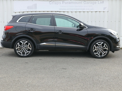 Awaiting preparation....This 2020 Kadjar GT-Line is equipped with the 140BHP ULEZ friendly 1.3 petrol engine. The superb specifications of the GT-Line include Leather upholstery with heated front seats, a fixed panoramic sunroof,  Sat Nav system with a 7'' touch screen, all round parking sensors with self parking system and an uprated Bose sound system. in alloy wheels - poseidon, door mirrors - body coloured, door mirrors - heated and electrically adjustable - automatically folding, electric front windows, electric rear windows, extra tinted windows - rear and tailgate, fixed glass panoramic sunroof, roof rails, tyre inflation kit, auto dimming rear view mirror, automatic dual zone climate control, central rear armrest with cup holders, display - digital speedometer, easylife quick folding rear seats, fingertip audio system remote control, heated front seats and electrically adjustable drivers seat - fore-aft - height and recline, leather steering wheel, rear air vents, rear led fog lights, seats - drivers height and lumbar adjustment, seats - passenger height adjustment, abs with eba - emergency brake assist, aebs - advanced emergency braking system, airbags - curtain front and rear, airbags - deactivation of front passenger - for use with child seats, airbags - driver and passenger adaptive front, airbags - front lateral, deadlocking and immobiliser, esp - electronic stability programme with asr - anti-skid regulation and ucl - understeer logic control, electronic parking brake, hsa - hill start assist, isofix child seat anchorage on rear outer seats, insurance approved - category 1 alarm system and immobiliser, keycard - hands free with walk away lock function, rear seat belt undone audible alert, speed alert with traffic sign recognition, accessory power point, apple carplay and android auto, bose energy efficient sound system, r-link 2 multimedia system - 7in touchscreen, smart phone integration, two rear usb plugs, automatic headlights and front wipers, daytime running lights - led, full led headlamps, headlights - automatic high-low beam, led front fog lights with cornering lights, led tail lights, puddle lighting in door mirrors, blind spot warning, cruise control with speed limiter, eco mode, hands free parking, ldw - lane departure warning, parking sensors - front and rear, rear parking camera, tyre pressure monitoring system