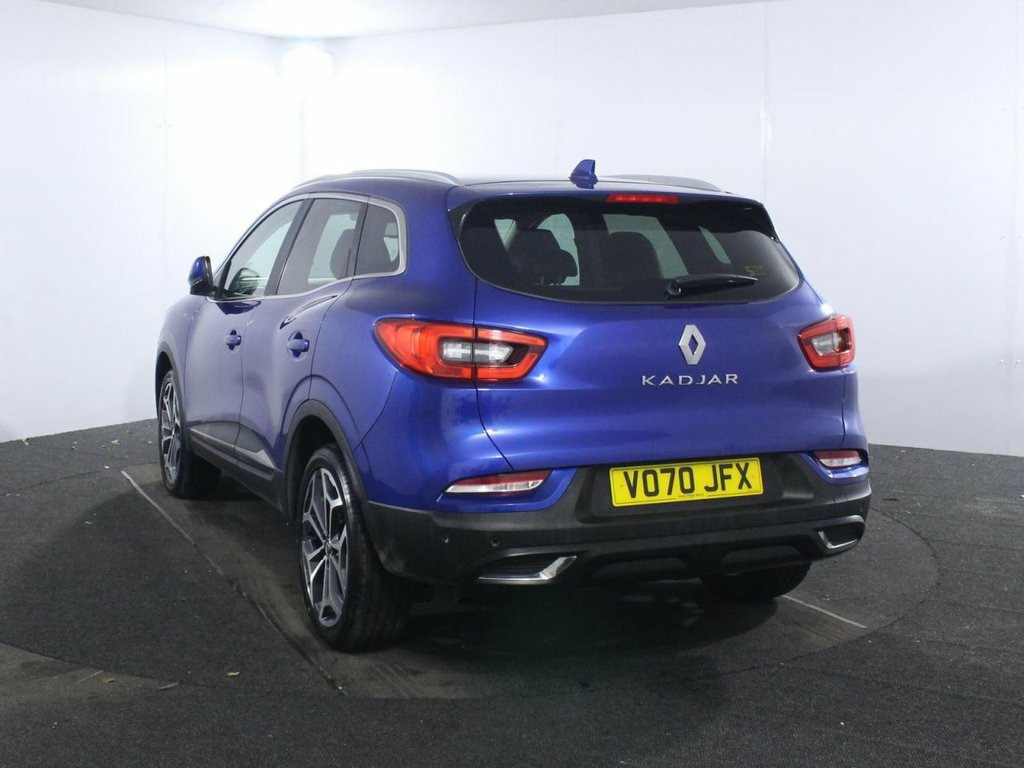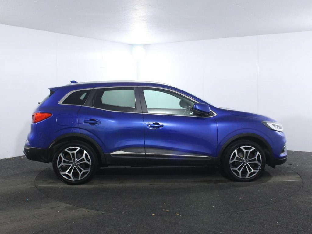 2 Owners. Full service history with 5 services. Last serviced at 35,162 miles in March 2025. The 2020 Renault Kadjar 1.3 TCe GT Line is a premium, high-specification family SUV powered by a refined 140 ps 1.3-litre turbocharged petrol engine with a six-speed manual gearbox, delivering a balanced blend of performance and economy. This Euro 6 compliant model offers smooth acceleration, reaching 0–62 mph in 10.4 seconds with a top speed of 126 mph. It is notably efficient for its class, with official combined fuel economy figures of approximately 42.8–44.8 mpg (WLTP), though real-world averages typically sit around 41 mpg. Finished in Iron Blue metallic paint, the GT Line trim stands out with its 19-inch Poseidon diamond-cut alloy wheels, full LED headlamps with integrated C-shape indicators, and distinctive Adamantium grey front and rear skid plates. The GT Line cabin provides a luxurious environment featuring carbon black leather upholstery, heated front seats, and an electrically adjustable driver's seat with a cushion length extender. Technology is a major highlight, centered around the R-Link 2 multimedia system with a 7-inch touchscreen, satellite navigation, Apple CarPlay, and Android Auto, all complemented by a premium BOSE energy-efficient sound system. Practical features include a fixed glass panoramic sunroof, automatic dual-zone climate control, and a versatile 527-litre boot with a multi-position floor and "Easylife" quick-folding rear se 19in Alloy Wheels - Poseidon, 3 Height Adjustable Rear Head Restraints, 3 Point Inertia Reel Seatbelts, 3-Seat Rear Bench, 60-40 Split Folding Seats, ABS with EBA - Emergency Brake Assist, Accessory Power Point, Adamantium Grey Front and Rear Skid Plat, Adjustable Dashboard Illumination, AEBS - Advanced Emergency Braking System, Air Recirculation, Airbags - Curtain Front and Rear, Airbags - Deactivation of Front Passenge, Airbags - Driver and Passenger Adaptive , Airbags - Front Lateral, Apple CarPlay and Android Auto, Auto Dimming Rear View Mirror, Automatic Dual Zone Climate Control, Automatic Headlights and Front Wipers, Back-Illuminated Central Console, Blind Spot Warning, Body Sided Mou