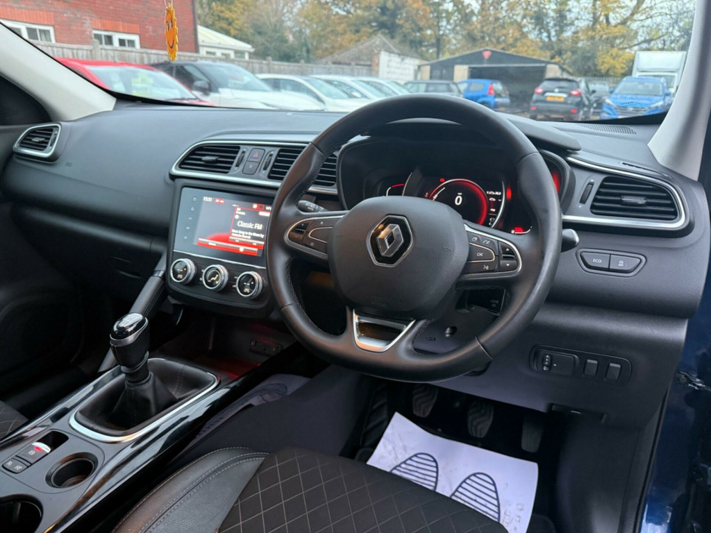 Echo motors are delighted to offer this beautiful Renault Kadjar which comes with: Full Service History, Last serviced 19 159 miles, 1 Owner from new, ULEZ Compliant, HPI Clear, Remote central locking, Lane Assist, Sat-Nav, Parking Sensors, ***EXTENDED WARRANTY AVAILABLE*** Due to high volume of enquiries, we recommend booking a viewing in advance, this can be done via phone 07747 879 005 or email salesechomotors.co.uk Standard of quality: -All cars go through a 32 point inspection prior to sale -All vehicles come with a nationwide Auto Protect warranty -Minimum of 6 Months of MOT provided with all cars Nationwide delivery is available, give us a call or email us for a quote. Part-exchanges is also available. GIVE US A CALL ON 07747 879 006 OR EMAIL SALESECHOMOTORS.CO.UK ADDRESS: ECHO MOTORS HORSHAM ROAD, FIVE OAKS BILLINGSHURST RH14 9AL in alloy wheels - zeus, 3 height adjustable rear head restraints, 3 point inertia reel seatbelts, 3-seat rear bench, 4x35w speakers with 3d sound, 60-40 split folding seats, abs with eba - emergency brake assist, accessory power point, adjustable dashboard illumination, air recirculation, airbags - curtain front and rear, airbags - deactivation of front passenger - for use with child seats, airbags - driver and passenger adaptive front, airbags - front lateral, apple carplay and android auto, automatic dual zone climate control, automatic headlights and front wipers, back-illuminated central console, body sided moulding with chrome insert, central rear armrest with cup holders, chrome window surrounds, courtesy lights - rear, cruise control with speed limiter, daylight-nightlight rearview mirror, daytime running lights - led, deadlocking and immobiliser, display - digital speedometer, door handles - body coloured - front, door mirrors - body coloured, door mirrors - heated and electrically adjustable - automatically folding, door-boot open warning light, driver seat belt height adjustable, driver and passenger seat belt undone warning audible alert, esp - electronic stability programme with asr - anti-skid regulation and ucl - understeer logic control, easylife quick folding rear seats, eco mode, electric front windows, electric rear windows, electronic parking brake, exterior temperature indicator, extra tinted windows - rear and tailgate, fingertip audio system remote control, floor mats - front and rear, front fog lights with corner function, gear change indicator, hsa - hill start assist, halogen headlights, headlights - automatic high-low beam, headrests - front fully adjustable, heated rear windscreen, height adjustable front seat belts, isofix child seat anchorage on rear outer seats, insurance approved - category 1 alarm system and immobiliser, integrated c-shape indicators with side repeaters, interior courtesy light controlled by all 4 doors, keycard - hands free with walk away lock function, ldw - lane departure warning, led tail lights, low fuel level warning light, luggage compartment - illumination, multi position boot floor, oil level gauge, parking sensors - front and rear, pollen filter, power steering, protective rear brake disc, r-link 2 multimedia system - 7in touchscreen, raid - renault anti intruder device - auto closure - 6mph, reading lights - driver and front passenger, rear air vents, rear parking camera, rear seat belt undone audible alert, rev-counter, roof rails, seats - drivers height and lumbar adjustment, seats - height adjustable front seatbelts with double pretensioners, seats - passenger height adjustment, side impact protection bars, sliding front centre armrest, steering wheel - faux leather, steering wheel - rake and reach adjustable, sun visor - mirror with light, trip computer - multifunctional, two rear usb plugs, tyre inflation kit, tyre pressure monitoring system