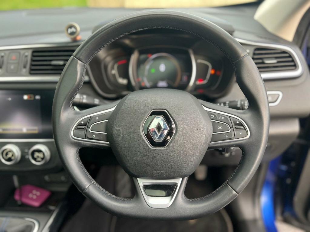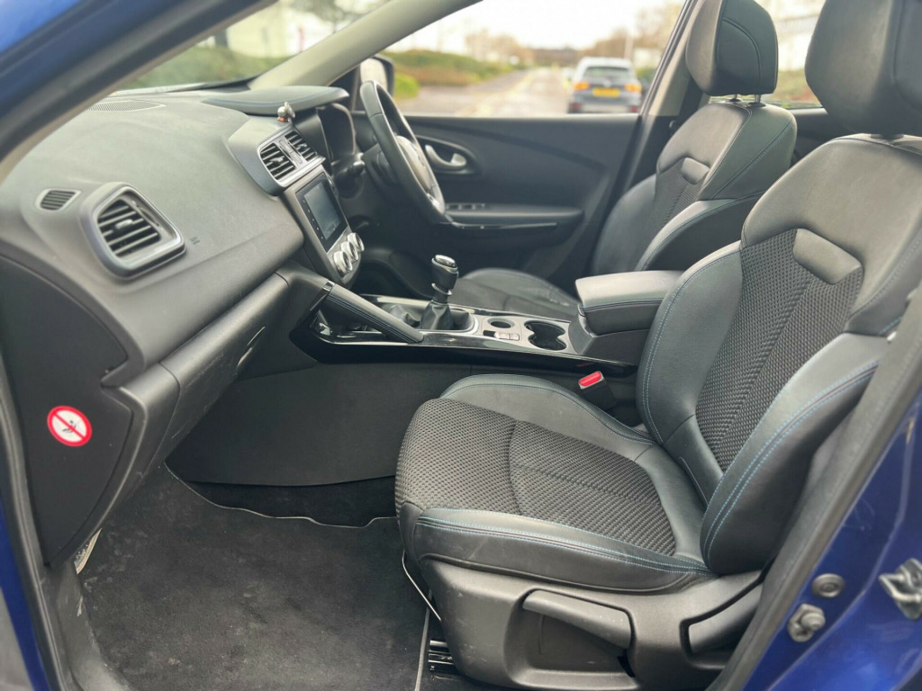 2020 Renault Kadjar S Edition 1.4 petrol finished in blue. 72,000 warranted miles on the clock. Comes with a 12 month warranty! MOT til 6th January 2027. Only 1 owner from new! Fulls service history available; 6 services. Last serviced on 05/09/2025 at 68,911 miles. Car drives well with no mechanical faults. Full V5 available. Comes with a top spec including; alloy wheels, leather steering wheel, multi-functional steering wheel, cruise control, on-board computer, Satellite Navigation, Radio DAB/FM, electric windows, central locking, AC/Climate control, panoramic sunroof, Bluetooth, reverse camera, automatic headlights, USB input, TPMS, cup holders and many more. Nationwide Delivery Available. P/X Welcome. HPI Clear. ULEZ compliant. 2 keys. Any questions don't hesitate to contact us on 07443456706 oth - black with blue top stitching, 19in alloy wheels - zeus, 3 height adjustable rear head restraints, 3 point inertia reel seatbelts, 3-seat rear bench, 4x35w speakers with 3d sound, 60-40 split folding seats, abs with eba - emergency brake assist, accessory power point, adjustable dashboard illumination, air recirculation, airbags - curtain front and rear, airbags - deactivation of front passenger - for use with child seats, airbags - driver and passenger adaptive front, airbags - front lateral, apple carplay and android auto, auto dimming rear view mirror, automatic dual zone climate control, automatic headlights and front wipers, back-illuminated central console, body sided moulding with chrome insert, central rear armrest with cup holders, chrome window surrounds, courtesy lights - rear, cruise control with speed limiter, daytime running lights - led, deadlocking and immobiliser, display - digital speedometer, door handles - body coloured - front, door mirrors - body coloured, door mirrors - heated and electrically adjustable - automatically folding, door-boot open warning light, driver seat belt height adjustable, driver and passenger seat belt undone warning audible alert, esp - electronic stability programme with asr - anti-skid regulation and ucl - understeer logic control, easylife quick folding rear seats, eco mode, electric front windows, electric rear windows, electronic parking brake, exterior temperature indicator, extra tinted windows - rear and tailgate, fingertip audio system remote control, fixed glass panoramic sunroof, floor mats - front and rear, fog lights - chrome surrounds, full led headlamps, gear change indicator, hsa - hill start assist, headlights - automatic high-low beam, headrests - front fully adjustable, heated rear windscreen, height adjustable front seat belts, isofix child seat anchorage on rear outer seats, insurance approved - category 1 alarm system and immobiliser, integrated c-shape indicators with side repeaters, interior courtesy light controlled by all 4 doors, keycard - hands free with walk away lock function, ldw - lane departure warning, led front fog lights with cornering lights, led tail lights, low fuel level warning light, luggage compartment - illumination, multi position boot floor, oil level gauge, parking sensors - front and rear, pollen filter, power steering, protective rear brake disc, r-link 2 multimedia system - 7in touchscreen, raid - renault anti intruder device - auto closure - 6mph, reading lights - driver and front passenger, rear air vents, rear parking camera, rear seat belt undone audible alert, rev-counter, roof rails, satin grey front and rear skid plates, seats - drivers height and lumbar adjustment, seats - height adjustable front seatbelts with double pretensioners, seats - passenger height adjustment, side impact protection bars, sliding front centre armrest, steering wheel - faux leather, steering wheel - rake and reach adjustable, sun visor - mirror with light, trip computer - multifunctional, two rear usb plugs, tyre inflation kit, tyre pressure monitoring system