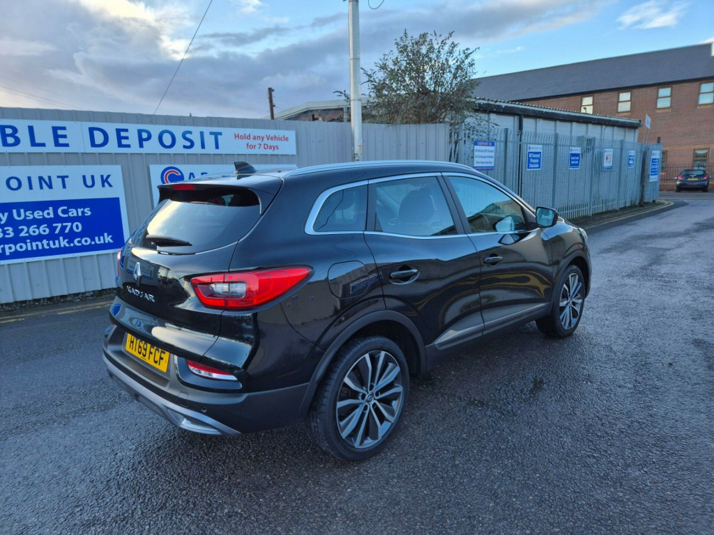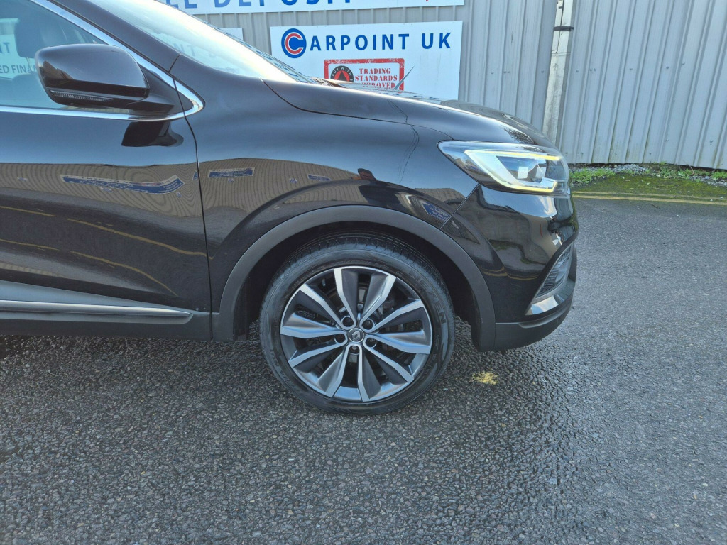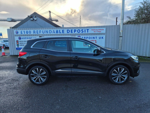 Boasting exceptionally low mileage for its age, this 2019 Renault Kadjar TCe S Edition presents a superb ownership proposition. Powered by a 1.3 litre petrol engine, this Euro 6 compliant model has a full service history, with its last service completed on 2026 01 15 at 36194 miles, and benefits from an MOT valid until January 2027. Inside, you will find automatic dual zone climate control for personalised comfort, a fixed glass panoramic sunroof to brighten the cabin, and the R Link 2 multimedia system with a 7 inch touchscreen and Bluetooth connectivity.This Kadjar S Edition also offers practical assistance with its rear parking camera and front and rear parking sensors, making manoeuvring effortless. You will appreciate the generous boot space, ideal for all your luggage and shopping needs. Furthermore, its low CO2 emissions highlight its efficiency, making it a more economical choice compared to many other vehicles.. 19in Alloy Wheels - Zeus, 3 Height Adjustable Rear Head Restraints, 3 Point Inertia Reel Seatbelts, 3-Seat Rear Bench, 4x35W Speakers with 3D Sound, 60-40 Split Folding Seats, ABS with EBA - Emergency Brake Assist, Accessory Power Point, Adjustable Dashboard Illumination, Air Recirculation, Airbags - Curtain Front and Rear, Airbags - Deactivation of Front Passenger - For Use with Child Seats, Airbags - Driver and Passenger Adaptive Front, Airbags - Front Lateral, Apple CarPlay and Android Auto, Auto Dimming Rear View Mirror, Automatic Dual Zone Climate Control, Automatic Headlights and Front Wipers, Back-Illuminated Central Console, Body Sided Moulding with Chrome Insert, Central Rear Armrest with Cup Holders, Chrome Window Surrounds, Courtesy Lights - Rear, Cruise Control with Speed Limiter, Daytime Running Lights - LED, Deadlocking and Immobiliser, Display - Digital Speedometer, Door Handles - Body Coloured - Front, Door Mirrors - Body Coloured, Door Mirrors - Heated and Electrically Adjustable - Automatically Folding, Door-Boot Open Warning Light, Driver Seat Belt Height Adjustable, Driver and Passenger Seat Belt Undone Warning Audible Alert, ESP - Electronic Stability Programme with ASR - Anti-Skid Regulation and UCL - Understeer Logic Control, Easylife Quick Folding Rear Seats, Eco Mode, Electric Front Windows, Electric Rear Windows, Electronic Parking Brake, Exterior Temperature Indicator, Extra Tinted Windows - Rear and Tailgate, Fingertip Audio System Remote Control, Fixed Glass Panoramic Sunroof, Floor Mats - Front and Rear, Fog Lights - Chrome Surrounds, Full LED Headlamps, Gear Change Indicator, HSA - Hill Start Assist, Headlights - Automatic High-Low Beam, Headrests - Front Fully Adjustable, Heated Rear Windscreen, Height Adjustable Front Seat Belts, ISOFIX Child Seat Anchorage on Rear Outer Seats, Insurance Approved - Category 1 Alarm System and Immobiliser, Integrated C-Shape Indicators with Side Repeaters, Interior Courtesy Light Controlled By All 4 Doors, Keycard - Hands Free with Walk Away Lock Function, LDW - Lane Departure Warning, LED Front Fog Lights with Cornering Lights, LED Tail Lights, Low Fuel Level Warning Light, Luggage Compartment - Illumination, Multi Position Boot Floor, Oil Level Gauge, Parking Sensors - Front and Rear, Pollen Filter, Power Steering, Protective Rear Brake Disc, R-Link 2 Multimedia System - 7in Touchscreen, RAID - Renault Anti Intruder Device - Auto Closure - 6mph, Reading Lights - Driver and Front Passenger, Rear Air Vents, Rear Parking Camera, Rear Seat Belt Undone Audible Alert, Rev-Counter, Roof Rails, Satin Grey Front and Rear Skid Plates, Seats - Drivers Height and Lumbar Adjustment, Seats - Height Adjustable Front Seatbelts with Double Pretensioners, Seats - Passenger Height Adjustment, Side Impact Protection Bars, Sliding Front Centre Armrest, Steering Wheel - Faux Leather, Steering Wheel - Rake and Reach Adjustable, Sun Visor - Mirror With Light, Trip Computer - Multifunctional, Two Rear USB Plugs, Tyre Inflation Kit, Tyre Pressure Monitoring System, Cloth - Black with Blue Top Stitching. Full service history