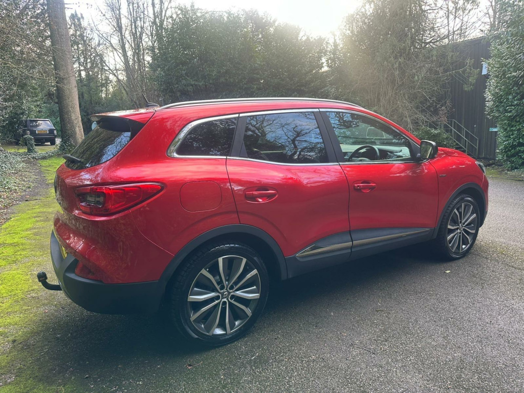 SUPPLIED WITH FULL SERVICE INC TIMING BELT IF REQ! 12 MONTHS MOT! 12 MONTHS FREE AA BREAKDOWN COVER! AND 3 MONTHS PERSONAL PARTS AND LABOUR WARRANTY! We as a garage have been established since 1997 and from the beginning, have always worked hard to provide the best possible service to our customers. One of the key elements of this service is our 3 month personal warranty. It is supplied with the majority of our cars, free of charge and covers any faults which may occur with the car in the first 3 months of purchase! Unlike conventional warranty booklets the warranty is held with us personally. This unique approach guarantees that you receive the best possible service and that the problem is solved conveniently and successfullyThis 2018 Renault Kadjar TCe Signature Nav is a well maintained example, offering a blend of style and practicality. Powered by a responsive 1.3L petrol engine, this Euro 6 compliant model delivers an impressive 0-62mph in just 9.4 seconds. Inside, you'll find a host of desirable features designed to enhance your driving experience, including Automatic Dual Zone Climate Control for perfect cabin temperature, and seamless integration with your smartphone via Apple CarPlay and Android Auto. Enjoy your favourite music with the premium BOSE Energy Efficient Sound System, and let in the light with the expansive Panoramic Sunroof. The Kadjar also boasts striking Full LED headlights for superior visibility.With a fuel economy of 47 mpg, this Kadjar is an economical choice for your journeys, and its low CO2 emissions further contribute to its environmental credentials. These highlights demonstrate how this vehicle stands out from others in its class, offering a more refined and efficient driving experience. v socket - front, 19in alloy wheels - diamond cut - zeus, 3 height adjustable rear head restraints, 3 point inertia reel seatbelts, 60-40 split folding seats, abs with ebd - electronic brake distribution and emergency brake assist, accessory power point, adjustable dashboard illumination, air recirculation, airbags - curtain front and rear, airbags - deactivation of front passenger - for use with child seats, airbags - drivers two stage auto adaptive, airbags - front lateral, airbags - front passengers two stage adaptive, anti-drill door locks and ignition barrel, apple carplay and android auto, armrest - front centre, assisted parking brake, auto dimming rear view mirror, automatic dual zone climate control, automatic headlights and windscreen wipers, bose energy efficient sound system, body sided moulding with chrome insert, central rear armrest with cup holders, chrome detailing, chrome window surrounds, courtesy lights - rear, cruise control with speed limiter, daytime running lights - led, deadlocking and immobiliser, display - digital speedometer - 7in tft screen, door handles - body coloured - front, door mirrors - body coloured shell, door mirrors - electrically operated - heated - folding, door-boot open warning light, driver and passenger seat belt undone warning audible alert, dust protection kit, esp - electronic stability programme with asr - anti-skid regulation and ucl - understeer logic control, eco mode, electric front windows, electric rear windows, electronic parking brake, exterior temperature indicator, extra tinted windows - rear and tailgate, fingertip audio system remote control, fleet telematics, fog lights with cornering function, front and rear skids, front and rear towing rings, full flat floor, glovebox light, gravel protection kit, hsa - hill start assist, headlights - full led, headrests - front fully adjustable, heated rear windscreen, heating ducts to feet of rear passengers, isofix child seat anchorage on rear outer seats, illuminated luggage compartment on opening of boot, indicators with side repetitions, insurance approved - category 1 alarm system and immobiliser, integrated fuel filler cap, interior courtesy light controlled by all 4 doors, keycard - hands free with walk away lock function, load limiters, low fuel level warning light, multi position trunk floor, oil level gauge, panoramic sunroof, parking sensors - front and rear, pollen filter, power assisted steering, protective rear brake disc, r-link v2 live satellite navigation system with western european mapping, raid - renault anti intruder device - auto closure - 6mph, rain protection kit, reading lights - driver and front passenger, rear seatbelt unfastened audible alert, rev-counter, roof rails, seats - 3-seat rear bench, seats - drivers height and lumbar adjustment, seats - height adjustable front seatbelts with double pretensioners, seats - one touch easy folding rear bench, seats - passenger height adjustment, side impact protection bars, side and boot kick plates, signature nappa leather steering wheel, steering wheel - rake and reach adjustable, sun visor - mirror with light, trip computer - multifunctional, tyre inflation kit, tyre pressure monitoring system, visio system, synthetic leather-cloth - signature dark carbon