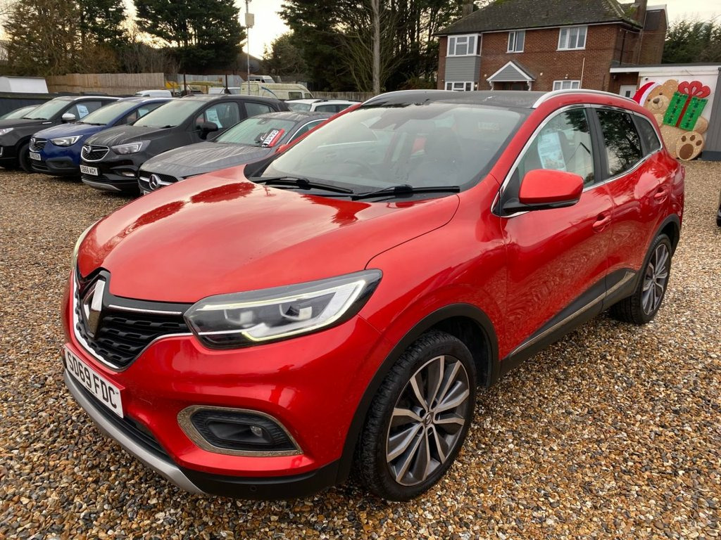SERVICE HISTORY+7 INCH TOUCHSCREEN R-LINK 2 MULTIMEDIA SYSTEM FEATURING SATELLITE NAVIGATION SYSTEM+APPLE CARPLAY AND ANDROID AUTO+AUTOMATIC DUAL ZONE CLIMATE CONTROL AIR-CONDITIONING+AUTOMATIC HEADLIGHT ACTIVATION+RAIN-SENSING WINDSCREEN WIPERS+PANORAMIC GLASS ROOF+FRONT & REAR PARKING ASSISTANCE WITH PARKING CAMERA+METALLIC 'FLAME RED' PAINT+19 INCH ALLOY WHEELS. At Haverhill Car Xchange we would like to offer you our Renault Kadjar S Edition SUV which has been finished in a metallic 'Flame Red' paint, 'Black Cloth upholstery with Blue top stitching. Excellent Specification Includes a 7 Inch Touchscreen which features an R-Link 2 Multimedia System, Apple CarPlay/Android Auto, Two Rear USB Plugs, Accessory Power Point, Lane Departure Warning, Automatic Dual Zone Climate Control Air-Conditioning, Gear Change Indicator, Cruise Control with Speed Limiter, ECO Mode, Electric Front and Rear Windows, Body Coloured Bumpers/Door Handles/Rear Spoiler and Door Mirrors, Satin Grey Front and Rear Skid Plates, Roof Rails, Automatic Headlight Activation, LED Daytime Running Lights, Full LED Headlamps, LED Tail Lights, LED Front Fog Lights with Cornering Function, Rain-Sensing Windscreen Wipers, Auto Dimming Rear-View Mirror, Front and Rear Parking Assistance with Parking Camera, Panoramic Glass Roof, Multifunction Steering Wheel, Extra Tinted Windows-Rear and Tailgate, Heated Rear Windscreen, 19 Inch Alloy Wheels, Power Steering, Hill Start Assist, ABS Brea Emergency Spare Wheel - Space Saver, 19in Alloy Wheels - Zeus, 3 Height Adjustable Rear Head Restraints, 3 Point Inertia Reel Seatbelts, 3-Seat Rear Bench, 4x35W Speakers with 3D Sound, 60-40 Split Folding Seats, ABS with EBA - Emergency Brake Assist, Accessory Power Point, Adjustable Dashboard Illumination, Air Recirculation, Airbags - Curtain Front and Rear, Airbags - Deactivation of Front Passenge, Airbags - Driver and Passenger Adaptive , Airbags - Front Lateral, Apple CarPlay and Android Auto, Auto Dimming Rear View Mirror, Automatic Dual Zone Climate Control, Automatic Headlights and Front Wipers, Back-Illuminated Central Console, Body Sided Moulding with Chrome Insert, Central Rear Ar