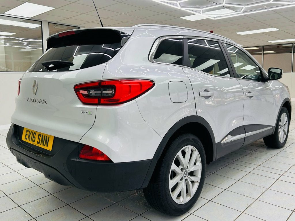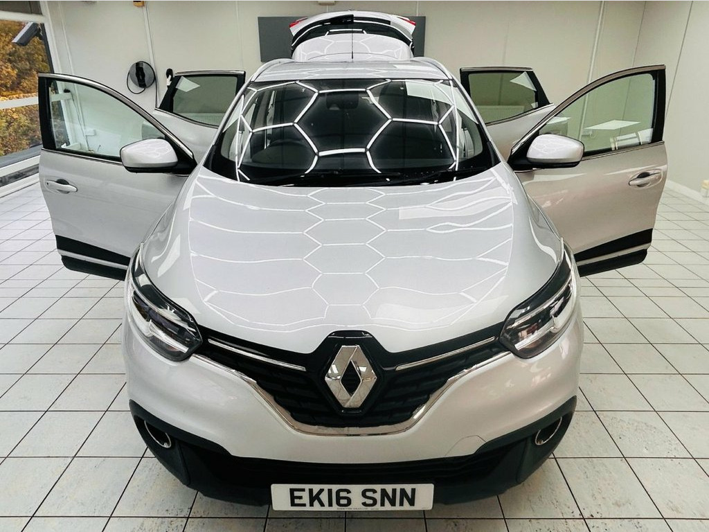 This 2016 Renault Kadjar dCi Dynamique Nav boasts a clear vehicle history, offering you peace of mind. This stylish SUV is equipped with a 1.5L Euro 6 diesel engine, ensuring efficient performance. Inside, you'll find a host of convenient features including a hands free keycard for keyless entry, automatic dual zone climate control, and automatic headlights. Entertainment is provided by an Arkamys 3D Sound DAB radio with Bluetooth and USB connectivity, compatible with Android Auto for seamless smartphone integration. The Renault Kadjar dCi Dynamique Nav stands out with its impressive fuel economy, achieving up to 74 mpg, which is significantly better than many other vehicles in its class. Furthermore, its low insurance group and low CO2 emissions make it an economical choice for everyday driving, indicating lower running costs and a more environmentally friendly profile compared to similar models. 17in Alloy Wheels - Athena, 3 Point Inertia Reel Seatbelts, ABS with EBD - Electronic Brake Distribu, Accessory Power Point, Adjustable Dashboard Illumination, Air Recirculation, Airbags - Drivers Two Stage Auto Adaptiv, Airbags - Front Lateral, Airbags - Front Passenger Deactivation, Airbags - Front Passengers Two Stage Ada, Airbags - Front and Rear Curtain, Android Auto, Anti-Drill Door Locks and Ignition Barre, Apple CarPlay, Arkamys 3D Sound 4x35W DAB Radio with Bl, Armrest - Front Centre, Assisted Parking Brake, Automatic Headlights and Windscreen Wipe, Body Sided Moulding with Chrome Insert, Chrome Detailing, Chrome Window Surrounds, Climate Control - Automatic Dual Zone, Climate Pack,