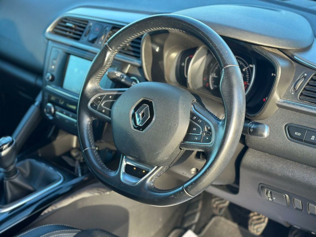 A STUNNING LOOKING EXAMPLE RENAULT KADJAR 1.5L DCI DYNAMIQUE S NAV EURO 6, 7X SERVICE HISTORY STAMPS ( LAST SERVICED @ 105434 MILES), CURRENT MOT WITHOUT ADVISORY, HALF LEATHER TRIM, BLUETOOTH CONNECTIVITY, CLIMATE CONTROL, CRUISE CONTROL, DAB RADIO, SAT NAV, MULTI FUNCTIONAL STEERING WHEEL, 2 KEYS. THIS VEHICLE COMES WITH A 3 MONTH EXTENDED WARRANTY COVERING ALL MECHANICAL AND ELECTRICAL PARTS. THIS NATIONWIDE COVER INCLUDES PARTS AND LABOUR. EYE GREEN CARS IS A REPUTABLE, FAMILY OWNED BUSINESS WITH MANY YEARS OF EXPERIENCE IN BRINGING THE VERY BEST IN USED, PREMIUM CARS. WE WILL VENTURE TO FIND ANY VEHICLE TO SUIT YOUR BUDGET AND REQUIREMENTS. OUR HELPFUL STAFF IS AT HAND TO DELIVER FIRST CLASS CUSTOMER SERVICE AND MAKE THE PURCHASE OF YOUR USED CAR SIMPLE. WE PRIDE OURSELVES ON OUR CUSTOMER CARE AND OFFER AN EXCEPTIONAL PERSONAL SERVICE. PRIOR TO SALE, OUR QUALIFIED TEAM WILL FULLY INSPECT VEHICLES TO MAKE SURE THEY ARE ROAD WORTHY. ALL VEHICLES ARE HPI/FINANCE CLEAR. FOR PEACE OF MIND, 3-24 MONTH WARRANTIES ARE AVAILABLE COVERING ALL ELECTRICAL/MECHANICAL ISSUES AND INCLUDE A NATIONAL REPAIR NETWORK, PARTS, LABOUR AND VAT. MOT RENEWAL CAN BE DISCUSSED AT TIME OF SALE. WE ARE OPEN TO DISCUSSING PART-EXCHANGE ON OUR VEHICLES. PRICES ON THE FORECOURT WILL BE CONSIDERED WHEN AGREEING A PART-EXCHANGE VALUATION. PRICES VARY FROM ONLINE AND FORECOURT. FINANCE IS AVAILABLE THROUGH A RANGE OF COUNTRYWIDE BROKERS WHO PROVIDE YOU WITH COMPETITIVE, AFFORDABLE RATES. NATIONWIDE DELIVERY CAN BE REQUESTED AT A COST OF £1.50 PER MILE. WE ACCEPT ALL MAJOR DEBIT/CREDIT CARDS. PLEASE FEEL FREE TO VIEW OUR EXTENSIVE RANGE OF VEHICLES ON OUR WEBSITE AND CALL/EMAIL US TO BOOK AN APPOINTMENT AND ARRANGE A TEST DRIVE. THE ADDRESS IS EYE GREEN INDUSTRIAL ESTATE, 1 CROWLAND ROAD, PETERBOROUGH, PE6 7TN AND THE WEBSITE IS WWW.EYEGREENCARS.COM. 19in Alloy Wheels - Diamond Cut - Apollo, 3 Point Inertia Reel Seatbelts, ABS with EBD - Electronic Brake Distribution and Emergency Brake Assist, Accessory Power Point, Adjustable Dashboard Illumination, Air Recirculation, Airbags - Drivers Two Stage Auto Adaptive, Airbags - Front Lateral, Airbags - Front Passenger Deactivation, Airbags - Front Passengers Two Stage Adaptive, Airbags - Front and Rear Curtain, Android Auto, Anti-Drill Door Locks and Ignition Barrel, Apple CarPlay, Arkamys 3D Sound 4x35W DAB Radio with Bluetooth and USB Connection, Armrest - Front Centre, Assisted Parking Brake, Automatic Headlights and Windscreen Wipers, Body Sided Moulding with Chrome Insert, Chrome Detailing, Chrome Window Surrounds, Climate Control - Automatic Dual Zone, Climate Pack, Convenience Pack, Courtesy Lights - Rear, Cruise Control with Speed Limiter, Daylight-Nightlight Rearview Mirror, Daytime Running Lights - LED, Display - Digital Speedometer - 7in TFT Screen, Door Handles - Body Coloured - Front, Door Mirrors - Body Coloured Shell, Door Mirrors - Electrically Operated - Heated - Folding, Door-Boot Open Warning Light, Driver and Passenger Seat Belt Undone Warning Audible Alert, Dust Protection Kit, ESP - Electronic Stability Programme with ASR - Anti-Skid Regulation and UCL - Understeer Logic Control, Eco Mode, Electric Windows - Front, Electric Windows - Rear, Electronic Parking Brake, Exterior Temperature Sensor, Extra Tinted Windows - Rear and Tailgate, Fingertip Audio System Remote Control, Fleet Management, Fog Lights with Cornering Function, Front and Rear Towing Rings, Full Flat Floor, Glovebox Light, Gravel Protection Kit, HSA - Hill Start Assist, Headlights - Halogen, Headrests - Front Fully Adjustable, Headrests - Rear Height Adjustable x3, Heated Rear Windscreen, Heating Ducts to Feet of Rear Passengers, Height Adjustable Front Seat Belts, ISOFIX - Child Seat Fixing Points - Outer Rear Seats, Indicators with Side Repetitions, Insurance Approved - Category 1 Alarm System and Immobiliser, Integrated Fuel Filler Cap, Interior Courtesy Light Controlled By All 4 Doors, Keycard - Hands Free, Low Fuel Level Warning Light, Luggage Compartment - Illumination, Multi Position Trunk Floor, Oil Level Gauge, Parking Sensors - Front and Rear, Passenger Height Adjustment Seat, Pollen Filter, Power Assisted Steering, Protective Rear Brake Disc, RAID - Renault Anti Intruder Device, Rain Protection Kit, Reading Lights - Driver and Front Passenger, Rear Seat Belt Undone Warning Audible Alert, Rev-Counter, Roof Rails, Satellite Navigation - R-Link v2 System, Seats - 3-Seat Rear Bench, Seats - 60-40 Split Folding Rear, Seats - Drivers Height and Lumbar Adjustment, Seats - Height Adjustable Front Seatbelts with Double Pretensioners, Seats - One Touch Easy Folding Rear Bench, Side Impact Protection Bars, Steering Wheel - Leather, Steering Wheel - Rake and Reach Adjustable, Sun Visor - Mirror Without Light, Superlocking, Trip Computer, Tyre Inflation Kit, Tyre Pressure Monitoring System, USB Connection, Visio System, Windscreen Wipers - Front with Variable Speed Adjustment, Windscreen Wipers - Rear.