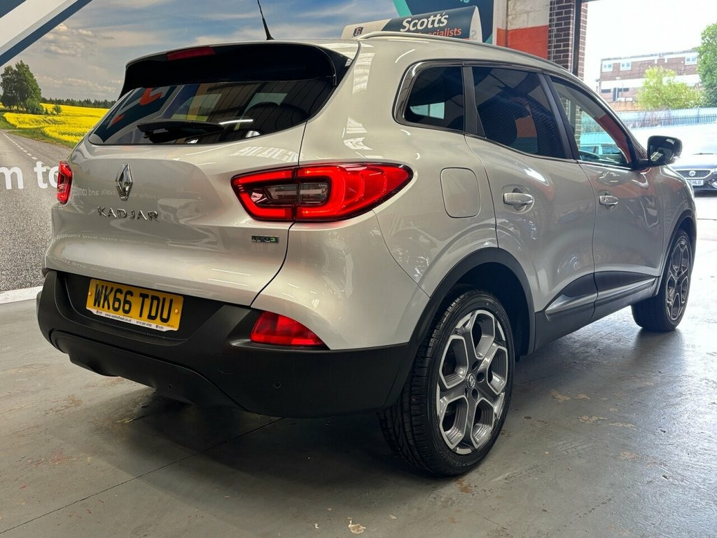 Scott's of Leeds Car Sales are pleased to offer this RENAULT KADJAR 1.5 dCi Dynamique S Nav SUV 5 Door Diesel Automatic in Silver. The car is in good condition throughout, in a lovely colour combination and a great specification including Satellite navigation, Part leather seats, Bluetooth, Cruise control, DAB digital radio, Front & rear parking sensors, Dual USB point, Aux point, Automatic lights & wipers, Lane departure warning, Electric folding mirrors, Electric windows, Drivers armrest, Isofix, Alloys and much much more. 1 Former Keeper supplied with an up to date service record including 6 services having just been serviced in our Workshop, an MOT until September 2026 and 2 Keys ready to drive away. £20 Road Tax and great MPG. A guaranteed 12 Months MOT can be added for an extra £100. DISCLAIMER: The above specification is true and correct. Any other specification listed elsewhere can sometimes be incorrect. Please check with Sales Executive to clarify this if needed prior to purchase. 19in Alloy Wheels - Diamond Cut - Apollo, 3 Point Inertia Reel Seatbelts, ABS with EBD - Electronic Brake Distribu, Accessory Power Point, Adjustable Dashboard Illumination, Air Recirculation, Airbags - Drivers Two Stage Auto Adaptiv, Airbags - Front Lateral, Airbags - Front Passenger Deactivation, Airbags - Front Passengers Two Stage Ada, Airbags - Front and Rear Curtain, Android Auto, Anti-Drill Door Locks and Ignition Barre, Apple CarPlay, Arkamys 3D Sound 4x35W DAB Radio with Bl, Armrest - Front Centre, Assisted Parking Brake, Automatic Headlights and Windscreen Wipe, Body Sided Moulding with Chrome Insert, Chrome Detailing, Chrome Window Surrounds, Climate Control - Automatic Dual Zone,