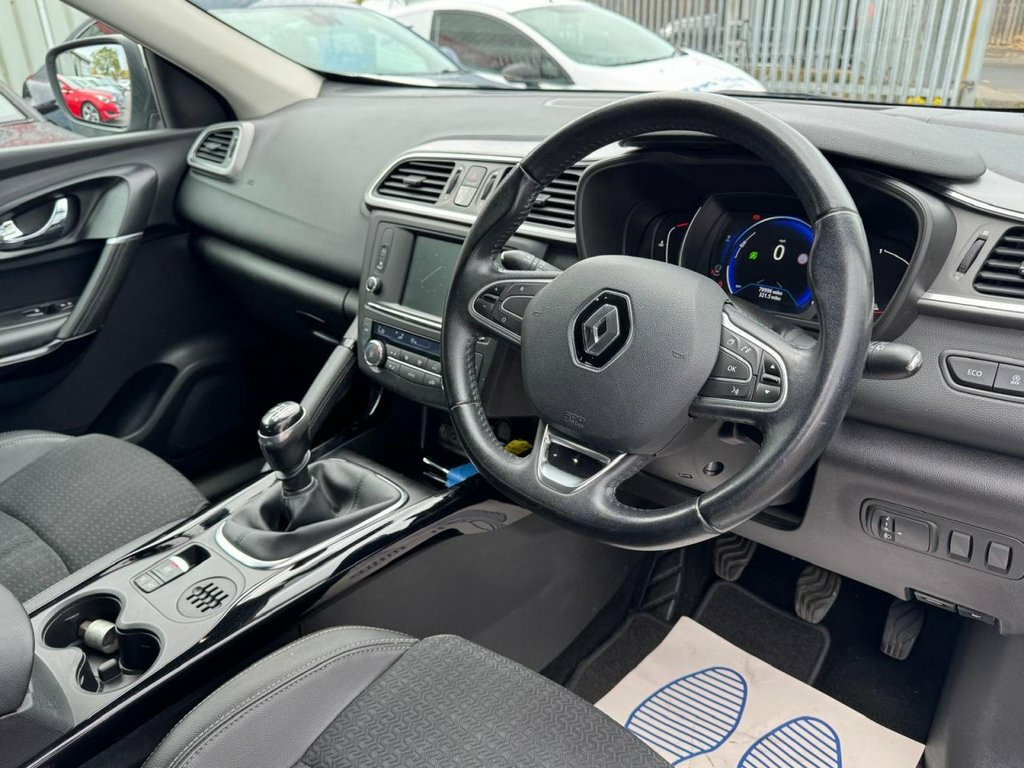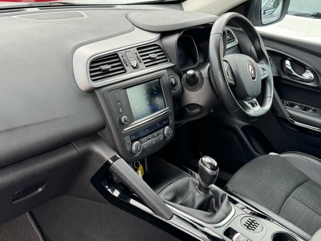 Renault Kadjar Dynamique S Nav, September 2016 model, Euro 6, Combined MPG of 72.4, One former keeper, 1461cc diesel engine with 79,995 miles, 6 speed manual gearbox, £20 annual road tax, Full service history including 10 service stamps, 2 key cards, Half leather trim, Colour Satnav, Media screen, DAB radio, Bluetooth, Aux/USB connection, Auto lights/wipers, Electric folding mirrors, Cruise control, Climate control, Multifunctional steering wheel, Lane assist, Voice command, Electric windows all round, Isofix seats, Front and rear parking sensors, Roof rails, Freshly refurbished alloy wheels, Privacy glass. Also comes with a full 12 months MOT, fresh service & 6 months warranty on sale. Part exchange friendly, any inspection welcome. Driven Trade Cars Ltd, Towngate Business Park, Leeholme Rd. (Behind Tesco) Billingham, TS233TA. - 01642 370823 - £6790 19in Alloy Wheels - Diamond Cut - Apollo, 3 Point Inertia Reel Seatbelts, ABS with EBD - Electronic Brake Distribu, Accessory Power Point, Adjustable Dashboard Illumination, Air Recirculation, Airbags - Drivers Two Stage Auto Adaptiv, Airbags - Front and Rear Curtain, Airbags - Front Lateral, Airbags - Front Passenger Deactivation, Airbags - Front Passengers Two Stage Ada, Android Auto, Anti-Drill Door Locks and Ignition Barre, Apple CarPlay, Arkamys 3D Sound 4x35W DAB Radio with Bl, Armrest - Front Centre, Assisted Parking Brake, Automatic Headlights and Windscreen Wipe, Body Sided Moulding with Chrome Insert, Chrome Detailing, Chrome Window Surrounds, Climate Control - Automatic Dual Zone,