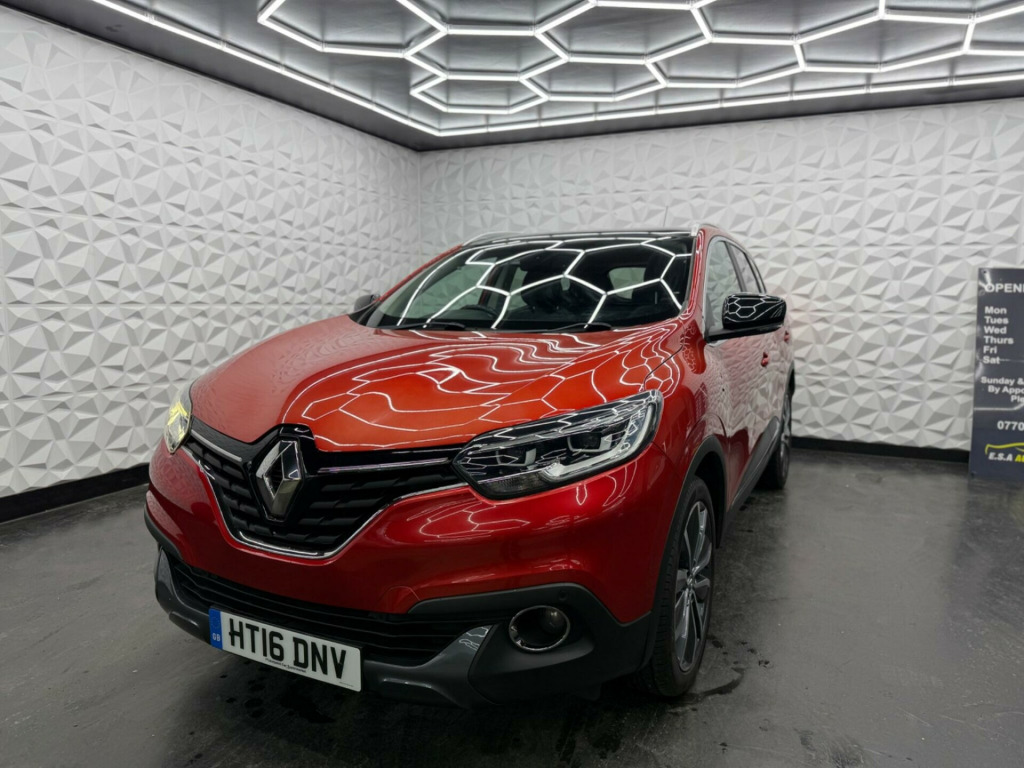 WE ARE PROUD TO OFFER THIS LOVELY RENAULT KADJAR FINISHED IN METALLIC ORANGE. COMES WITH A CONTRASTING HALF LEATHER INTERIOR. THIS VEHICLE WILL COME WITH A FRESH MOT AND A FRESH SERVICE READY FOR THE NEW OWNER. COMES WITH A FULL DEALER SERVICE HISTORY FULLY UP TO DATE. COMES WITH 2 KEYS. ONLY 1 FORMER KEEPER FROM BRAND NEW. THIS VEHICLE COMES WITH A HUGE AMOUNT OF SPEC. COMES WITH A HALF LEATHER INTERIOR, MEDIA SYSTEM, BLUETOOTH, DAB RADIO, PANORAMIC SUNROOF, UPGRADED SOUND SYSTEM PLUS MUCH MUCH MORE. THIS VEHICLE REALLY NEEDS TO BE SEEN TO BE APPRECIATED. HERE AT E.S.A AUTOMOTIVE LTD WE OFFER AS STANDARD A 12 MONTHS AA BREAKDOWN COVER, 5 DAY DRIVEAWAY INSURANCE & A COMPREHENSIVE 3 MONTHS WARRANTY ON ALL VEHICLES. RESERVE ANY VEHICLE WITH A £99 REFUNDABLE DEPOSIT. WE HAVE A HUGE PANEL OF LENDERS FOR GOOD&BAD FINANCE SO WHY NOT CALL US TODAY. WE ARE COMMITED TO THE AA CARS STANDARDS & ALSO TRADING STANDARDS APPROVED. WE ARE THE PROUD WINNERS OF THE AUTOTRADER RETAILERS CUSTOMER CHOICE AWARD WINNER FOR 2020, ALSO THE PROUD WINNERS OF THE 2021/22 CAR DEALER OF THE YEAR (YORKSHIRE) PRESTIGE AWARD AND FINALLY WE HAVE WON THE CAR/VAN DEALER OF THE YEAR (SOUTH YORKSHIRE) 2023. WITH 100 PERCENT POSITIVE VERIFIED REVIEWS & SELECTED HIGHLY RATED BY AUTOTRADER 2019,20,21,22,23,2024 AND ON ROUTE TO BEING HIGHLY RATED FOR 2025. WE TAKE PRIDE IN NOT JUST SELLING CARS BUT AN AMAZING AFTERCARE SERVICE. CALL THE TEAM TODAY TO START YOUR CAR BUYING JOURNEY.. 19in Alloy Wheels - Diamond Cut - Zeus, 3 Point Inertia Reel Seatbelts, ABS with EBD - Electronic Brake Distribution and Emergency Brake Assist, Accessory Power Point, Adjustable Dashboard Illumination, Air Recirculation, Airbags - Drivers Two Stage Auto Adaptive, Airbags - Front Lateral, Airbags - Front Passenger Deactivation, Airbags - Front Passengers Two Stage Adaptive, Airbags - Front and Rear Curtain, Android Auto, Anti-Drill Door Locks and Ignition Barrel, Apple CarPlay, Armrest - Front Centre, Assisted Parking Brake, Automatic Headlights and Windscreen Wipers, BOSE Energy Efficient Sound System, Body Sided Moulding with Chrome Insert, Central Rear Armrest with Cup Holders, Chrome Detailing, Chrome Window Surrounds, Climate Control - Automatic Dual Zone, Climate Pack, Convenience Pack, Courtesy Lights - Rear, Cruise Control with Speed Limiter, Daytime Running Lights - LED, Display - Digital Speedometer - 7in TFT Screen, Door Handles - Body Coloured - Front, Door Mirrors - Body Coloured Shell, Door Mirrors - Electrically Operated - Heated - Folding, Door-Boot Open Warning Light, Driver and Passenger Seat Belt Undone Warning Audible Alert, Dust Protection Kit, ESP - Electronic Stability Programme with ASR - Anti-Skid Regulation and UCL - Understeer Logic Control, Eco Mode, Electric Windows - Front, Electric Windows - Rear, Electrochromatic Rear View Mirror, Electronic Parking Brake, Exterior Temperature Sensor, Extra Tinted Windows - Rear and Tailgate, Fingertip Audio System Remote Control, Fleet Management, Fog Lights with Cornering Function, Front and Rear Skids, Front and Rear Towing Rings, Full Flat Floor, Glovebox Light, Gravel Protection Kit, HSA - Hill Start Assist, Headlights - Full LED, Headrests - Front Fully Adjustable, Headrests - Rear Height Adjustable x3, Heated Rear Windscreen, Heating Ducts to Feet of Rear Passengers, Height Adjustable Front Seat Belts, ISOFIX - Child Seat Fixing Points - Outer Rear Seats, Indicators with Side Repetitions, Insurance Approved - Category 1 Alarm System and Immobiliser, Integrated Fuel Filler Cap, Interior Courtesy Light Controlled By All 4 Doors, Keycard - Hands Free, Low Fuel Level Warning Light, Luggage Compartment - Illumination, Multi Position Trunk Floor, Oil Level Gauge, Panoramic Sunroof, Parking Sensors - Front and Rear, Passenger Height Adjustment Seat, Pollen Filter, Power Assisted Steering, Protective Rear Brake Disc, RAID - Renault Anti Intruder Device, Rain Protection Kit, Reading Lights - Driver and Front Passenger, Rear Seat Belt Undone Warning Audible Alert, Rev-Counter, Roof Rails, Satellite Navigation - R-Link v2 System, Seats - 3-Seat Rear Bench, Seats - 60-40 Split Folding Rear, Seats - Drivers Height and Lumbar Adjustment, Seats - Height Adjustable Front Seatbelts with Double Pretensioners, Seats - One Touch Easy Folding Rear Bench, Side Impact Protection Bars, Side and Boot Kick Plates, Signature Nappa Leather Steering Wheel, Steering Wheel - Rake and Reach Adjustable, Sun Visor - Mirror With Light, Superlocking, Trip Computer, Tyre Inflation Kit, Tyre Pressure Monitoring System, USB Connection, Visio System, Windscreen Wipers - Front with Variable Speed Adjustment, Windscreen Wipers - Rear, Techno Pack Premium, Safety Pack Premium, Leather - Carbon Black, Leather Pack, Synthetic Leather-Cloth - Signature Dark Carbon. Full dealership history