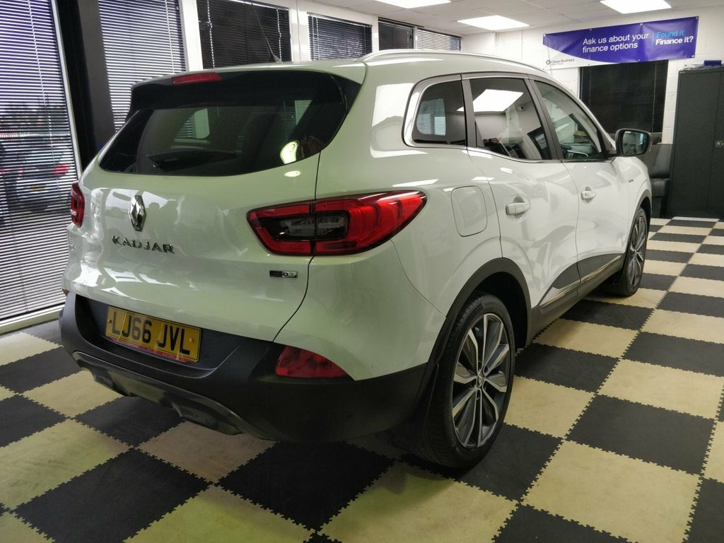 This 2017 Renault Kadjar dCi Signature S Nav boasts exceptionally low mileage for its age, having covered just 43979 miles. This Euro 6 compliant 1.5L diesel model comes in the desirable Signature S Nav trim, offering a refined driving experience. You'll appreciate the convenience of a rear parking camera paired with front and rear parking sensors, along with parking assistance features. Safety is enhanced by the blind spot warning system, and your journeys will be accompanied by the impressive BOSE Energy Efficient Sound System. Stay connected with Android Auto and enjoy personalised comfort thanks to the automatic dual zone climate control. This Kadjar stands out with its remarkable fuel economy, achieving an impressive 72 mpg, which indicates it is more economical than many similar vehicles. Furthermore, its low insurance group and low CO2 emissions highlight its cost effectiveness and environmental consideration compared to other cars in its class. 19in Alloy Wheels - Diamond Cut - Zeus, 3 Point Inertia Reel Seatbelts, ABS with EBD - Electronic Brake Distribu, Accessory Power Point, Adjustable Dashboard Illumination, Air Recirculation, Airbags - Drivers Two Stage Auto Adaptiv, Airbags - Front and Rear Curtain, Airbags - Front Lateral, Airbags - Front Passenger Deactivation, Airbags - Front Passengers Two Stage Ada, Android Auto, Anti-Drill Door Locks and Ignition Barre, Apple CarPlay, Armrest - Front Centre, Assisted Parking Brake, Automatic Headlights and Windscreen Wipe, Blind Spot Warning, Body Sided Moulding with Chrome Insert, BOSE Energy Efficient Sound System, Central Rear Armrest with Cup Holders, Chrome Detailing, Chrome Windo