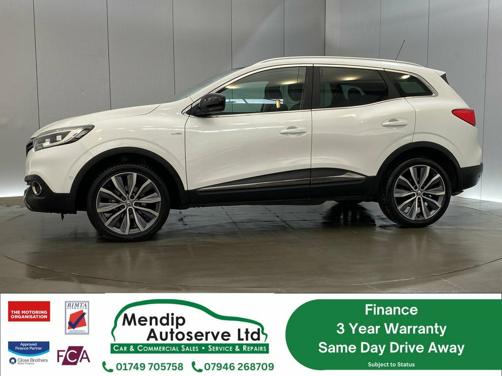 We are very proud to offer this Renault Kadjar 1.5 dCi Signature S Nav, a versatile and stylish SUV that perfectly balances performance and practicality. With a top speed of 113 mph and an impressive fuel consumption of 72.4 mpg, this vehicle is designed to deliver an exhilarating driving experience while remaining economical. The 1.5-litre diesel engine produces 108 bhp and 192 lbs/ft of torque, allowing for smooth acceleration from 0 to 60 mph in just 11.9 seconds. With a manual transmission and front-wheel drive, this Kadjar is not only responsive but also offers a dynamic driving experience. This vehicles boasts 6 service visits across its nearly 40,000 miles. This 2016 model, finished in a striking Arctic White, is both eye-catching and sophisticated. The exterior colour not only enhances the vehicle's aesthetic appeal but also reflects a sense of modernity and elegance. Arctic White is a timeless choice that ensures your Kadjar stands out on the road while also being easy to maintain, as it effectively hides minor dirt and scratches, keeping your vehicle looking pristine for longer. Inside, the Kadjar boasts luxurious Carbon Black leather upholstery, which elevates the overall comfort and style of the cabin. This premium material not only adds a touch of sophistication but also provides durability and ease of cleaning, making it ideal for families or those who frequently travel. The leather seats offer excellent support, ensuring that every journey, whether short o 19in Alloy Wheels - Diamond Cut - Zeus, 3 Point Inertia Reel Seatbelts, ABS with EBD - Electronic Brake Distribu, Accessory Power Point, Adjustable Dashboard Illumination, Air Recirculation, Airbags - Drivers Two Stage Auto Adaptiv, Airbags - Front and Rear Curtain, Airbags - Front Lateral, Airbags - Front Passenger Deactivation, Airbags - Front Passengers Two Stage Ada, Android Auto, Anti-Drill Door Locks and Ignition Barre, Apple CarPlay, Arctic White, Armrest - Front Centre, Assisted Parking Brake, Automatic Headlights and Windscreen Wipe, Blind Spot Warning, Body Sided Moulding with Chrome Insert, BOSE Energy Efficient Sound System, Central Rear Armrest with Cup Holders, Chrome Detailing
