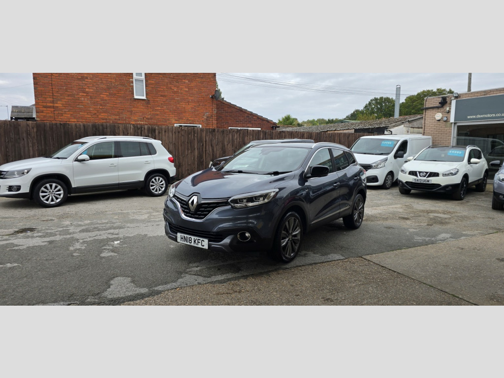 2018 Grey Renault Kadjar 1. 5 Signature Nav dCi 110 Energy Eco2 Start/Stop (Diesel, Manual), , - ONLY £6495 - ULEZ Compliant-, , Grey colour, 19 alloy wheels, chrome detailing, chrome window surrounds, roof rails, panoramic roof, front and rear towing rings, extra tinted windows to rear and tailgate, front and rear parking sensors, SAT Nav, full flat floor, front and rear electric windows, electrochromatic rear view mirror, automatic dual zone climate control, electronic assisted parking brake, HSA hill start assist, 7 TFT screen with digital speedometer, cruise control and speed limiter, hands free system, DAB radio with Bluetooth, USB connection, fingertip audio system remote control, automatic headlights and windscreen wipers, TPMS - tyre pressure monitoring system, tyre inflation kit, eco mode, leather steering wheel with fingertip controls,, 5 seater, leather interior, isofix, remote control locking, key card, 1461 cc, 109 bhp, V5, 2 keys, full service history, 91,000 miles, insurance group 15E, comes with MOT till May 2026, drives great, very clean vehicle , ULEZ compliant, £195 annual tax. , @ FINANCE AVAILABLE @ INDOOR VIEWING AVAILABLE @ WARRANTY. , For more information please do not hesitate to contact me on 07471656020 or 01522698880