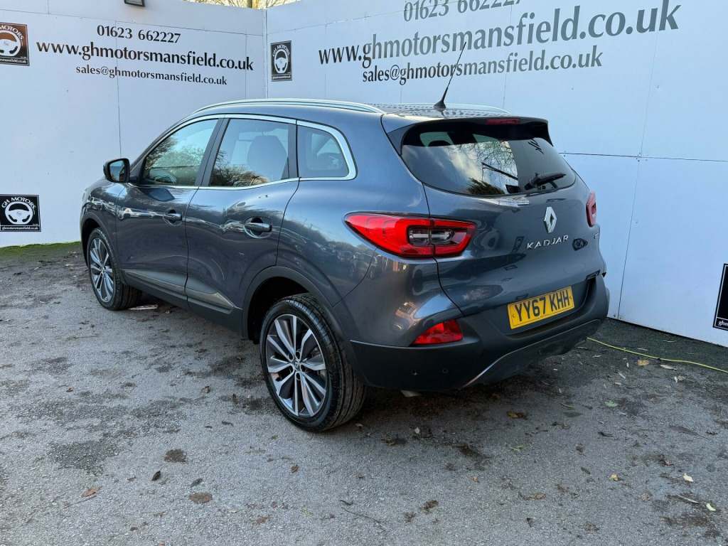 Discover this 2017 Renault Kadjar dCi Signature Nav, a four wheel drive model with remarkably low mileage for its age, having covered just 61811 miles. This Euro 6 compliant Kadjar boasts a 1.6 litre diesel engine and comes equipped with the desirable Techno Pack Premium, which includes Blind Spot Assistance and a rear parking camera. You'll also appreciate the convenience of front and rear parking sensors, full LED headlights, and the integration of Apple CarPlay for seamless connectivity. Inside, enjoy the comfort of automatic dual zone climate control, ensuring a pleasant driving experience in all conditions.12 MONTHS WARRANTY £299This Kadjar Signature Nav offers excellent running costs, highlighted by an impressive fuel economy of 58 miles per gallon. Its low insurance group rating and low CO2 emissions further indicate that this vehicle is a more economical choice compared to many others in its class. These factors, combined with its comprehensive feature set and well maintained provenance, make this Renault Kadjar a compelling option for those seeking a practical and efficient SUV.. 19in Alloy Wheels - Diamond Cut - Zeus, 3 Point Inertia Reel Seatbelts, ABS with EBD - Electronic Brake Distribution and Emergency Brake Assist, Accessory Power Point, Adjustable Dashboard Illumination, Air Recirculation, Airbags - Drivers Two Stage Auto Adaptive, Airbags - Front Lateral, Airbags - Front Passenger Deactivation, Airbags - Front Passengers Two Stage Adaptive, Airbags - Front and Rear Curtain, Android Auto, Anti-Drill Door Locks and Ignition Barrel, Apple CarPlay, Armrest - Front Centre, Assisted Parking Brake, Automatic Headlights and Windscreen Wipers, BOSE Energy Efficient Sound System, Body Sided Moulding with Chrome Insert, Central Rear Armrest with Cup Holders, Chrome Detailing, Chrome Window Surrounds, Climate Control - Automatic Dual Zone, Climate Pack, Convenience Pack, Courtesy Lights - Rear, Cruise Control with Speed Limiter, Daytime Running Lights - LED, Display - Digital Speedometer - 7in TFT Screen, Door Handles - Body Coloured - Front, Door Mirrors - Body Coloured Shell, Door Mirrors - Electrically Operated - Heated - Folding, Door-Boot Open Warning Light, Driver and Passenger Seat Belt Undone Warning Audible Alert, Dust Protection Kit, ESP - Electronic Stability Programme with ASR - Anti-Skid Regulation and UCL - Understeer Logic Control, Eco Mode, Electric Windows - Front, Electric Windows - Rear, Electrochromatic Rear View Mirror, Electronic Parking Brake, Exterior Temperature Sensor, Extra Tinted Windows - Rear and Tailgate, Fingertip Audio System Remote Control, Fleet Management, Fog Lights with Cornering Function, Front and Rear Skids, Front and Rear Towing Rings, Full Flat Floor, Glovebox Light, Gravel Protection Kit, HSA - Hill Start Assist, Headlights - Full LED, Headrests - Front Fully Adjustable, Headrests - Rear Height Adjustable x3, Heated Rear Windscreen, Heating Ducts to Feet of Rear Passengers, Height Adjustable Front Seat Belts, ISOFIX - Child Seat Fixing Points - Outer Rear Seats, Indicators with Side Repetitions, Insurance Approved - Category 1 Alarm System and Immobiliser, Integrated Fuel Filler Cap, Interior Courtesy Light Controlled By All 4 Doors, Keycard - Hands Free, Low Fuel Level Warning Light, Luggage Compartment - Illumination, Multi Position Trunk Floor, Oil Level Gauge, Panoramic Sunroof, Parking Sensors - Front and Rear, Passenger Height Adjustment Seat, Pollen Filter, Power Assisted Steering, Protective Rear Brake Disc, RAID - Renault Anti Intruder Device, Rain Protection Kit, Reading Lights - Driver and Front Passenger, Rear Seat Belt Undone Warning Audible Alert, Rev-Counter, Roof Rails, Satellite Navigation - R-Link v2 System, Seats - 3-Seat Rear Bench, Seats - 60-40 Split Folding Rear, Seats - Drivers Height and Lumbar Adjustment, Seats - Height Adjustable Front Seatbelts with Double Pretensioners, Seats - One Touch Easy Folding Rear Bench, Side Impact Protection Bars, Side and Boot Kick Plates, Signature Nappa Leather Steering Wheel, Steering Wheel - Rake and Reach Adjustable, Sun Visor - Mirror With Light, Superlocking, Trip Computer, Tyre Inflation Kit, Tyre Pressure Monitoring System, USB Connection, Visio System, Windscreen Wipers - Front with Variable Speed Adjustment, Windscreen Wipers - Rear, Techno Pack Premium. Full service history