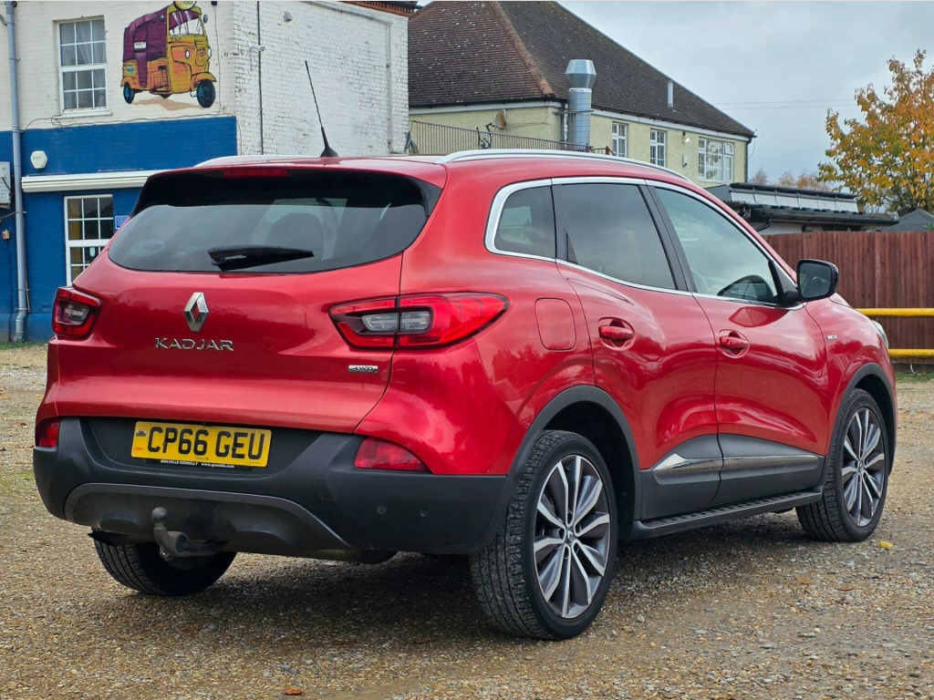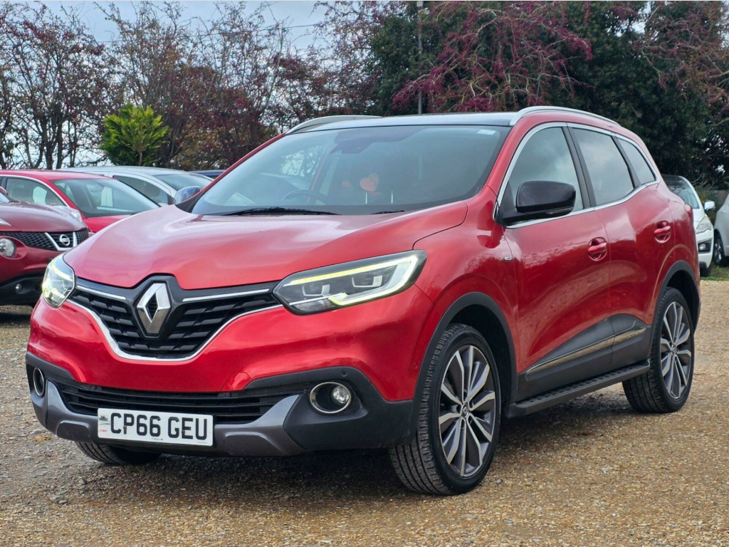 With an MOT valid until September 2026, this 2016 Renault Kadjar dCi Signature Nav offers excellent peace of mind. This Four Wheel Drive model is powered by an efficient 1.6L Diesel Engine and meets Euro 6 emissions standards. It has a clear vehicle history check and has been owned by only two previous keepers, supported by a partial service history. The Signature Nav trim level comes equipped with a host of desirable features, including the Parking Pack Premium with Blind Spot Assistance and a rear camera, Apple CarPlay for seamless smartphone integration, and a Climate Pack with automatic headlights. Enjoy the spacious feel provided by the fixed Panoramic Sunroof and convenient Keycard with hands free, keyless entry.This Renault Kadjar stands out with its impressive fuel economy, achieving a highlight of 58 mpg, which indicates it is more economical than many similar vehicles. Furthermore, its low insurance group and low CO2 emissions also highlight its cost effectiveness and environmental consideration compared to other cars in its class. in alloy wheels - diamond cut - zeus, 3 point inertia reel seatbelts, abs with ebd - electronic brake distribution and emergency brake assist, accessory power point, adjustable dashboard illumination, air recirculation, airbags - drivers two stage auto adaptive, airbags - front and rear curtain, airbags - front lateral, airbags - front passenger deactivation, airbags - front passengers two stage adaptive, android auto, anti-drill door locks and ignition barrel, apple carplay, armrest - front centre, assisted parking brake, automatic headlights and windscreen wipers, body sided moulding with chrome insert, bose energy efficient sound system, central rear armrest with cup holders, chrome detailing, chrome window surrounds, climate control - automatic dual zone, climate pack, convenience pack, courtesy lights - rear, cruise control with speed limiter, daytime running lights - led, display - digital speedometer - 7in tft screen, door handles - body coloured - front, door mirrors - body coloured shell, door mirrors - electrically operated - heated - folding, door-boot open warning light, driver and passenger seat belt undone warning audible alert, dust protection kit, eco mode, electric windows - front, electric windows - rear, electrochromatic rear view mirror, electronic parking brake, esp - electronic stability programme with asr - anti-skid regulation and ucl - understeer logic control, exterior temperature sensor, extra tinted windows - rear and tailgate, fingertip audio system remote control, fleet management, fog lights with cornering function, front and rear skids, front and rear towing rings, full flat floor, glovebox light, gravel protection kit, headlights - full led, headrests - front fully adjustable, headrests - rear height adjustable x3, heated rear windscreen, heating ducts to feet of rear passengers, height adjustable front seat belts, hsa - hill start assist, indicators with side repetitions, insurance approved - category 1 alarm system and immobiliser, integrated fuel filler cap, interior courtesy light controlled by all 4 doors, isofix - child seat fixing points - outer rear seats, keycard - hands free, low fuel level warning light, luggage compartment - illumination, multi position trunk floor, oil level gauge, panoramic sunroof, parking sensors - front and rear, passenger height adjustment seat, pollen filter, power assisted steering, protective rear brake disc, raid - renault anti intruder device, rain protection kit, reading lights - driver and front passenger, rear seat belt undone warning audible alert, rev-counter, roof rails, satellite navigation - r-link v2 system, seats - 3-seat rear bench, seats - 60-40 split folding rear, seats - drivers height and lumbar adjustment, seats - height adjustable front seatbelts with double pretensioners, seats - one touch easy folding rear bench, side and boot kick plates, side impact protection bars, signature nappa leather steering wheel, steering wheel - rake and reach adjustable, sun visor - mirror with light, superlocking, trip computer, tyre inflation kit, tyre pressure monitoring system, usb connection, visio system, windscreen wipers - front with variable speed adjustment, windscreen wipers - rear, parking pack premium, synthetic leather-cloth - signature dark carbon