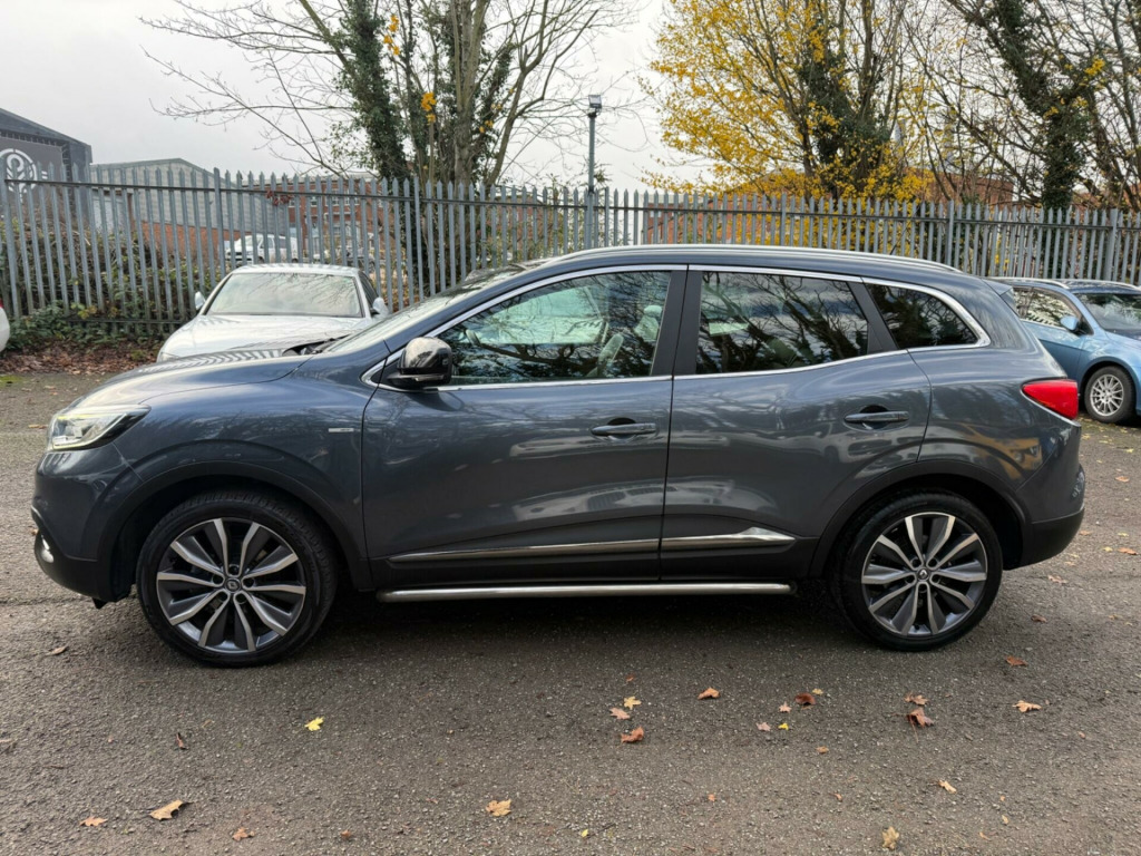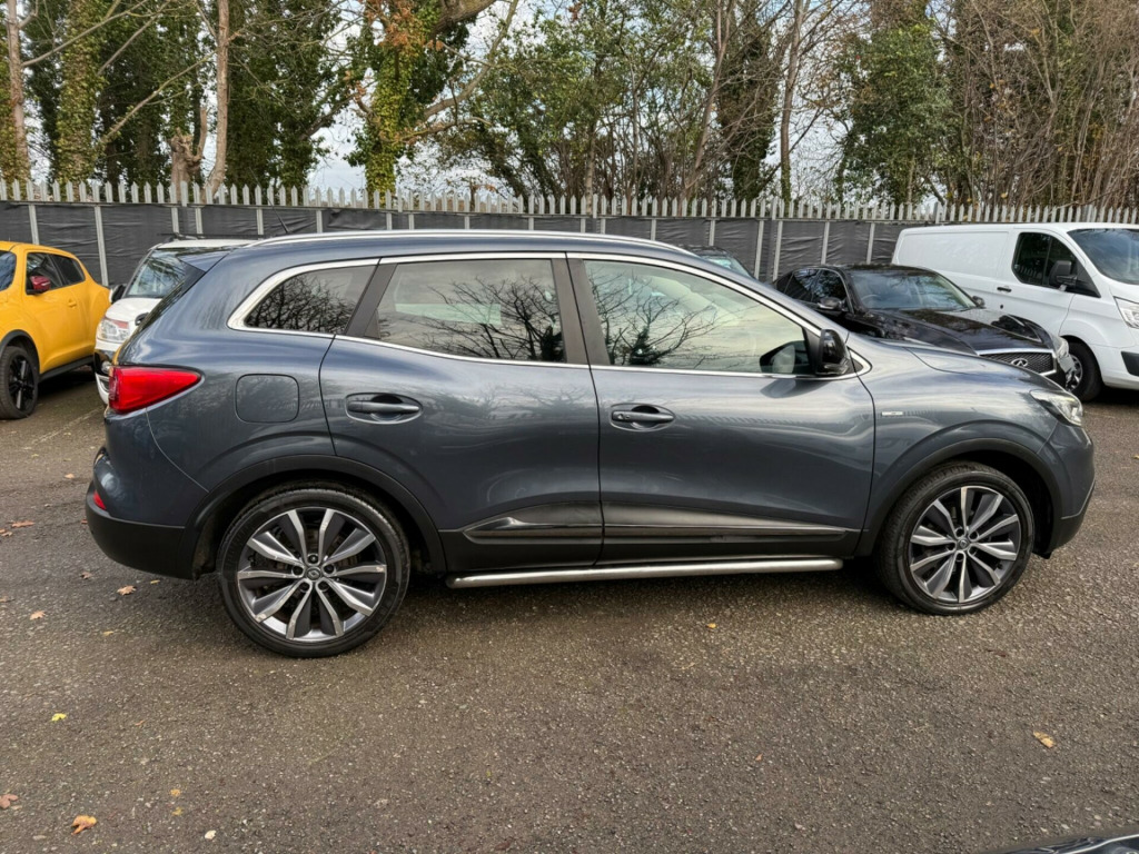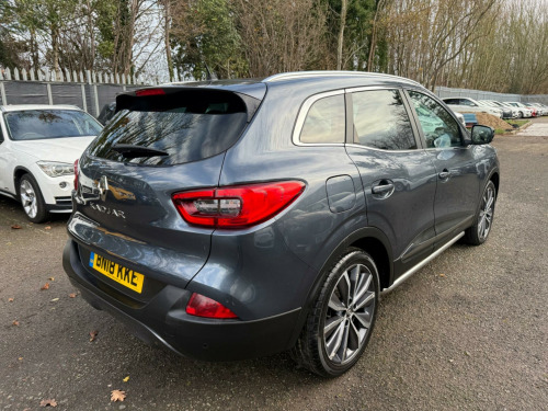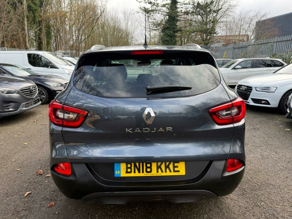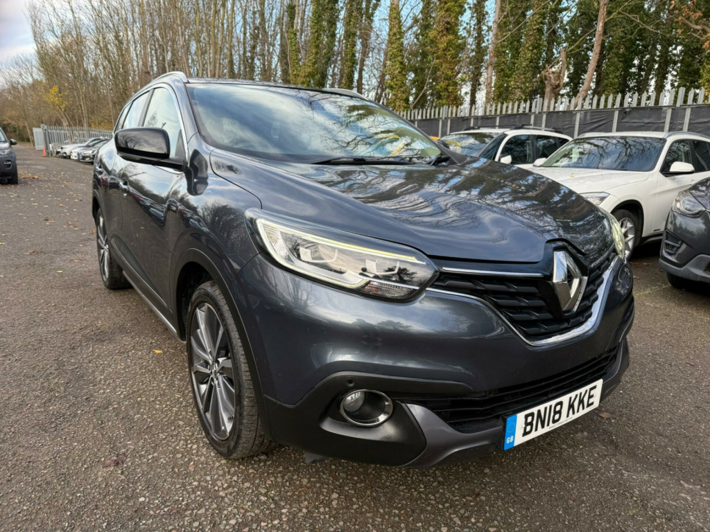 GREY, FINANCE AVAILABLE, NAVIGATION SYSTEM , PARKING SENSORS, PANORAMIC ROOF, ONLY ONE FORMER KEEPER, PRIVACY GLASS, START/STOP, CRUISE CONTROL,ULEZ COMPLIANTSUPERB DRIVE, VERY ECONOMICAL, ALLOY WHEELS, CLIMATE CONTROL, VERY WELL LOOKED AFTER, VERY CLEAN IN AND OUT.This 2018 Renault Kadjar dCi Signature Nav boasts a single owner and a clear vehicle history check, offering peace of mind for its next keeper. This Euro 6 compliant 1.6L diesel engine is presented in the desirable Signature Nav trim, featuring a fixed panoramic sunroof for an airy cabin, and a BOSE Energy Efficient Sound System for an enhanced audio experience. Convenience is key with the Hands Free Keycard allowing for keyless entry, while the Climate Pack ensures comfort with automatic climate control and automatic headlights. Stay connected on the go with Android Auto integration.This Kadjar is designed to be economical and efficient, with an impressive fuel economy of 63 mpg, which is better than many similar vehicles. Its low CO2 emissions and low insurance group also indicate that running costs are kept to a minimum, making it a sensible choice. Furthermore, the MOT is valid until November 2026, providing extended roadworthiness assurance.. 19in Alloy Wheels - Diamond Cut - Zeus, 3 Point Inertia Reel Seatbelts, ABS with EBD - Electronic Brake Distribution and Emergency Brake Assist, Accessory Power Point, Adjustable Dashboard Illumination, Air Recirculation, Airbags - Drivers Two Stage Auto Adaptive, Airbags - Front Lateral, Airbags - Front Passenger Deactivation, Airbags - Front Passengers Two Stage Adaptive, Airbags - Front and Rear Curtain, Android Auto, Anti-Drill Door Locks and Ignition Barrel, Apple CarPlay, Armrest - Front Centre, Assisted Parking Brake, Automatic Headlights and Windscreen Wipers, BOSE Energy Efficient Sound System, Body Sided Moulding with Chrome Insert, Central Rear Armrest with Cup Holders, Chrome Detailing, Chrome Window Surrounds, Climate Control - Automatic Dual Zone, Climate Pack, Convenience Pack, Courtesy Lights - Rear, Cruise Control with Speed Limiter, Daytime Running Lights - LED, Display - Digital Speedometer - 7in TFT Screen, Door Handles - Body Coloured - Front, Door Mirrors - Body Coloured Shell, Door Mirrors - Electrically Operated - Heated - Folding, Door-Boot Open Warning Light, Driver and Passenger Seat Belt Undone Warning Audible Alert, Dust Protection Kit, ESP - Electronic Stability Programme with ASR - Anti-Skid Regulation and UCL - Understeer Logic Control, Eco Mode, Electric Windows - Front, Electric Windows - Rear, Electrochromatic Rear View Mirror, Electronic Parking Brake, Exterior Temperature Sensor, Extra Tinted Windows - Rear and Tailgate, Fingertip Audio System Remote Control, Fleet Management, Fog Lights with Cornering Function, Front and Rear Skids, Front and Rear Towing Rings, Full Flat Floor, Glovebox Light, Gravel Protection Kit, HSA - Hill Start Assist, Headlights - Full LED, Headrests - Front Fully Adjustable, Headrests - Rear Height Adjustable x3, Heated Rear Windscreen, Heating Ducts to Feet of Rear Passengers, Height Adjustable Front Seat Belts, ISOFIX - Child Seat Fixing Points - Outer Rear Seats, Indicators with Side Repetitions, Insurance Approved - Category 1 Alarm System and Immobiliser, Integrated Fuel Filler Cap, Interior Courtesy Light Controlled By All 4 Doors, Keycard - Hands Free, Low Fuel Level Warning Light, Luggage Compartment - Illumination, Multi Position Trunk Floor, Oil Level Gauge, Panoramic Sunroof, Parking Sensors - Front and Rear, Passenger Height Adjustment Seat, Pollen Filter, Power Assisted Steering, Protective Rear Brake Disc, RAID - Renault Anti Intruder Device, Rain Protection Kit, Reading Lights - Driver and Front Passenger, Rear Seat Belt Undone Warning Audible Alert, Rev-Counter, Roof Rails, Satellite Navigation - R-Link v2 System, Seats - 3-Seat Rear Bench, Seats - 60-40 Split Folding Rear, Seats - Drivers Height and Lumbar Adjustment, Seats - Height Adjustable Front Seatbelts with Double Pretensioners, Seats - One Touch Easy Folding Rear Bench, Side Impact Protection Bars, Side and Boot Kick Plates, Signature Nappa Leather Steering Wheel, Steering Wheel - Rake and Reach Adjustable, Sun Visor - Mirror With Light, Superlocking, Trip Computer, Tyre Inflation Kit, Tyre Pressure Monitoring System, USB Connection, Visio System, Windscreen Wipers - Front with Variable Speed Adjustment, Windscreen Wipers - Rear.