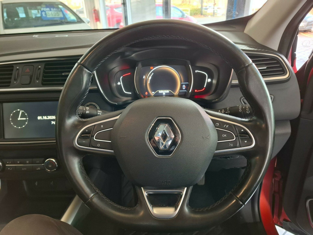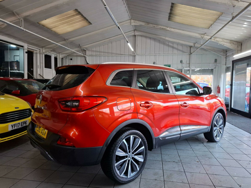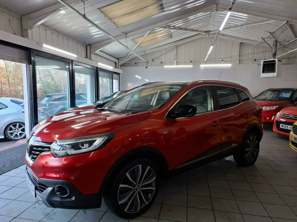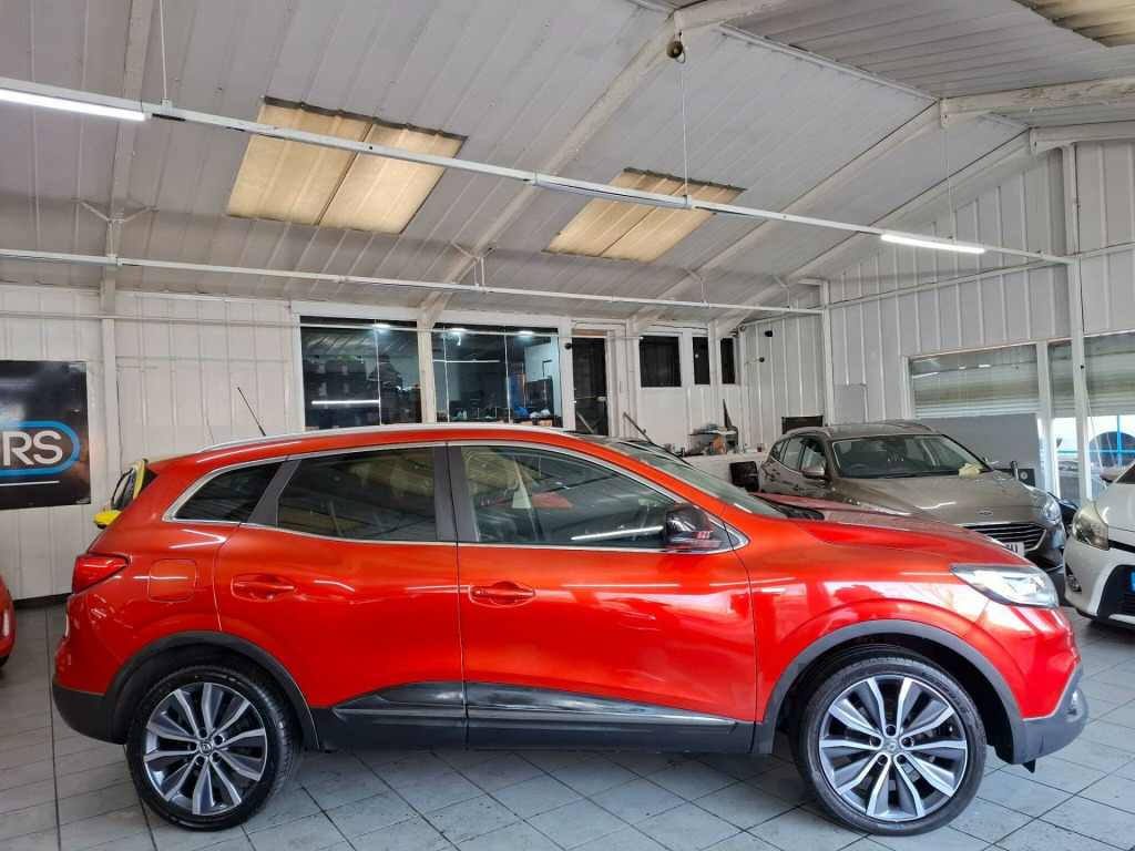 ** VIEWING BY APPOINTMENT ONLY ** FINANCE AVAILABLE, PART EXCHANGE WELCOME, ALL MAJOR DEBIT CARDS ACCEPTED, MORE MAKES AND MODELS IN STOCK.. This 2016 Renault Kadjar dCi Signature Nav presents a superb ownership proposition, having been cared for by only two owners. This stylish SUV is equipped with a 1.6 litre diesel engine and meets Euro 6 emissions standards. Inside, you'll find desirable features such as automatic dual zone climate control for personalised comfort, and a hands free keycard for effortless entry and starting. Enjoy the open air with the fixed panoramic sunroof, and experience superior illumination with full LED headlights. The BOSE Energy Efficient Sound System promises an immersive audio experience.This Kadjar Signature Nav stands out with its impressive fuel economy, achieving an excellent 63 miles per gallon, which indicates it is more economical than many similar vehicles. Furthermore, its low CO2 emissions and low insurance group rating suggest that running costs are kept to a minimum, making it a sensible choice for many drivers.. 19in Alloy Wheels - Diamond Cut - Zeus, 3 Point Inertia Reel Seatbelts, ABS with EBD - Electronic Brake Distribution and Emergency Brake Assist, Accessory Power Point, Adjustable Dashboard Illumination, Air Recirculation, Airbags - Drivers Two Stage Auto Adaptive, Airbags - Front Lateral, Airbags - Front Passenger Deactivation, Airbags - Front Passengers Two Stage Adaptive, Airbags - Front and Rear Curtain, Android Auto, Anti-Drill Door Locks and Ignition Barrel, Apple CarPlay, Armrest - Front Centre, Assisted Parking Brake, Automatic Headlights and Windscreen Wipers, BOSE Energy Efficient Sound System, Body Sided Moulding with Chrome Insert, Central Rear Armrest with Cup Holders, Chrome Detailing, Chrome Window Surrounds, Climate Control - Automatic Dual Zone, Climate Pack, Convenience Pack, Courtesy Lights - Rear, Cruise Control with Speed Limiter, Daytime Running Lights - LED, Display - Digital Speedometer - 7in TFT Screen, Door Handles - Body Coloured - Front, Door Mirrors - Body Coloured Shell, Door Mirrors - Electrically Operated - Heated - Folding, Door-Boot Open Warning Light, Driver and Passenger Seat Belt Undone Warning Audible Alert, Dust Protection Kit, ESP - Electronic Stability Programme with ASR - Anti-Skid Regulation and UCL - Understeer Logic Control, Eco Mode, Electric Windows - Front, Electric Windows - Rear, Electrochromatic Rear View Mirror, Electronic Parking Brake, Exterior Temperature Sensor, Extra Tinted Windows - Rear and Tailgate, Fingertip Audio System Remote Control, Fleet Management, Fog Lights with Cornering Function, Front and Rear Skids, Front and Rear Towing Rings, Full Flat Floor, Glovebox Light, Gravel Protection Kit, HSA - Hill Start Assist, Headlights - Full LED, Headrests - Front Fully Adjustable, Headrests - Rear Height Adjustable x3, Heated Rear Windscreen, Heating Ducts to Feet of Rear Passengers, Height Adjustable Front Seat Belts, ISOFIX - Child Seat Fixing Points - Outer Rear Seats, Indicators with Side Repetitions, Insurance Approved - Category 1 Alarm System and Immobiliser, Integrated Fuel Filler Cap, Interior Courtesy Light Controlled By All 4 Doors, Keycard - Hands Free, Low Fuel Level Warning Light, Luggage Compartment - Illumination, Multi Position Trunk Floor, Oil Level Gauge, Panoramic Sunroof, Parking Sensors - Front and Rear, Passenger Height Adjustment Seat, Pollen Filter, Power Assisted Steering, Protective Rear Brake Disc, RAID - Renault Anti Intruder Device, Rain Protection Kit, Reading Lights - Driver and Front Passenger, Rear Seat Belt Undone Warning Audible Alert, Rev-Counter, Roof Rails, Satellite Navigation - R-Link v2 System, Seats - 3-Seat Rear Bench, Seats - 60-40 Split Folding Rear, Seats - Drivers Height and Lumbar Adjustment, Seats - Height Adjustable Front Seatbelts with Double Pretensioners, Seats - One Touch Easy Folding Rear Bench, Side Impact Protection Bars, Side and Boot Kick Plates, Signature Nappa Leather Steering Wheel, Steering Wheel - Rake and Reach Adjustable, Sun Visor - Mirror With Light, Superlocking, Trip Computer, Tyre Inflation Kit, Tyre Pressure Monitoring System, USB Connection, Visio System, Windscreen Wipers - Front with Variable Speed Adjustment, Windscreen Wipers - Rear.