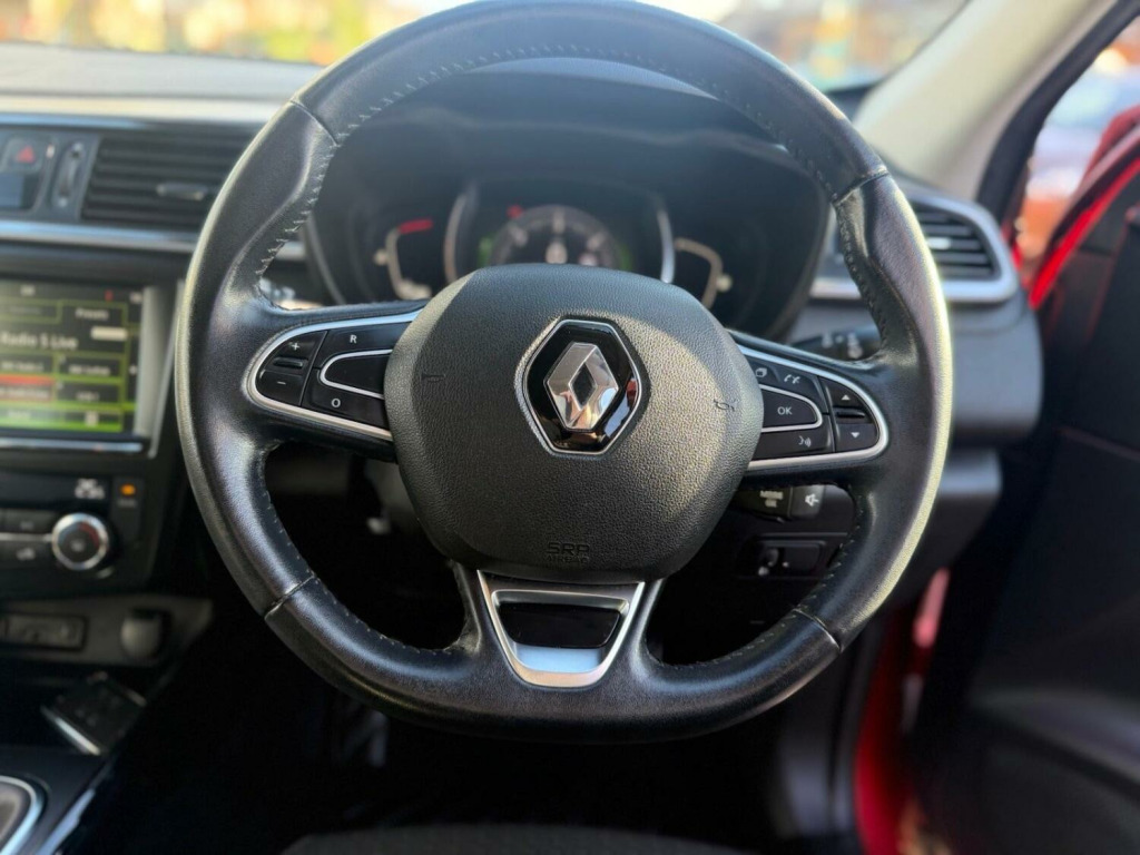 Renault Kadjar Dynamique S NAV DCI, 1.6 diesel, 5 door hatchback in red. This vehicle is currently on 82,900 miles with a full service history present with stamps at 13k, 21k, 25k, 28k, 34k, 45k, 52k, 65k then at 78k. Has a very long MOT with the next one being due on the 14-05-2026. Just two former keepers who have maintained the vehicle to a high standard. Excellent condition throughout, clean bodywork and has a superb clean interior with no unpleasant smells. Very economical and has a high specification which includes remote central locking, start/stop button, alloy wheels, electric windows, LED daytime running lights, front and rear parking sensors, reversing camera, satellite navigation system. dual climate control, air conditioning, automatic headlights, automatic wipers, cruise control, steering controls for audio, bluetooth and much more. This vehicle is HPI clear, the V5 is present and comes with two keys. Part exchange welcome, finance is available. We are located in Chilwell, Nottingham please call before travelling to visit us to check availability and make an appointment. A 3 months warranty is supplied with this vehicle and there is an option to upgrade to a 12 month Warranty Wise warranty for a small fee. Please speak to one of our sales advisors who will be happy to help.
