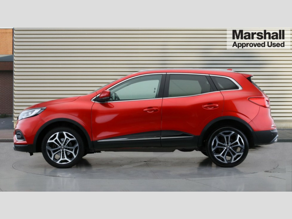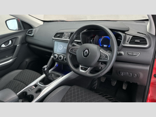 Renault Kadjar 1.3 TCE Techno 5dr Blind spot warning, Cruise control + speed limiter, Digital speedometer with 7 TFT screen, Door/boot open warning light, Eco mode, Emergency services call system, Exterior temperature indicator, Front and rear parking sensors, Gear change indicator, Lane departure warning system, Low fuel level warning light, Multi function trip computer, Oil level gauge, PAS, Power assisted steering, R-Link 2 Multimedia system + 7" touchscreen, TomTom + West European Map, DAB/FM/AM radio, bluetooth + hands free, USB/AUX, voice control, Rear view camera, Smartphone integration with Apple CarPlay and Android auto, Speed alert, 4x35W speakers with 3D sound, Two rear USB sockets, Auto dimming rear view mirror, Automatic headlights and wipers, Automatic high/low beam, Body colour door handles, Body coloured bumpers, Body coloured door mirrors, Bodyside mouldings with chrome inserts, Chrome fog light surround, Chrome inserts on front grille, Chrome window surround, Electric adjustable/heated/folding door mirrors, Extra tinted glass in rear windows and tailgate, Flank protection, Front and rear electric windows, Full LED headlights, Heated rear windscreen, High level third brake light, Integrated C shape indicators with side repeaters, LED daytime running lights, LED front fog lamps with cornering function, LED rear fog light, Longitudinal roof bars, Privacy glass, Puddle lamps, Rear side wing doors, Rear wiper, Shark fin antenna, Variable front intermittent wipers, 3 height adjustable rear headrests, 3 seat rear bench, 60/40 split folding rear seat, Adjustable dashboard illumination, Air recirculation system, Centre rear armrest with cup holder, Driver's seat with lumbar adjustment, Driver/passenger reading lights, Dual zone automatic climate control, Easy life quick folding rear seat, Front/rear floor mats, Height adjustable driver's seat, Height adjustable front headrests, Height adjustable passenger seat, Height/reach adjust steering wheel, Illuminated centre console, Illuminated luggage compartment, Interior courtesy lights operated by all doors, ISOFIX child seat anchorage points attached on outer rear seats, Multi positional boot floor, Pollen filter, Rear courtesy lights, Rear passenger air vents, Single front passenger seat, Sliding front centre armrest, Sun visor and mirror with light, Synthetic leather steering wheel, Synthetic leather/cloth upholstery, 3 point inertia reel seatbelts, ABS/EBD, Active emergency braking system, Driver and front passenger seatbelt undone warning audible alert, Driver/passenger 2 stage auto adaptive airbags, Electronic parking brake, Emergency brake assist, ESP with ASR and UCL (understeer control logical), Front and rear curtain airbags, Front lateral airbags, Height adjustable driver seat belts, Height adjustable front seatbelts with double pretensioners, Hill start assist, Manual rear child locks, Passenger airbag deactivation system, Rear seatbelt undone audible alert, Side impact protection, Three point rear center seatbelt, Tyre pressure monitor, Deadlocks, Hands free key card with Keyless access and start, Insurance approved Cat 1 alarm system, Insurance Approved Immobiliser, RAID (Renault Anti-Intruder Device) with automatic door locking, Remote central locking, 19" Diamond cut alloy wheels