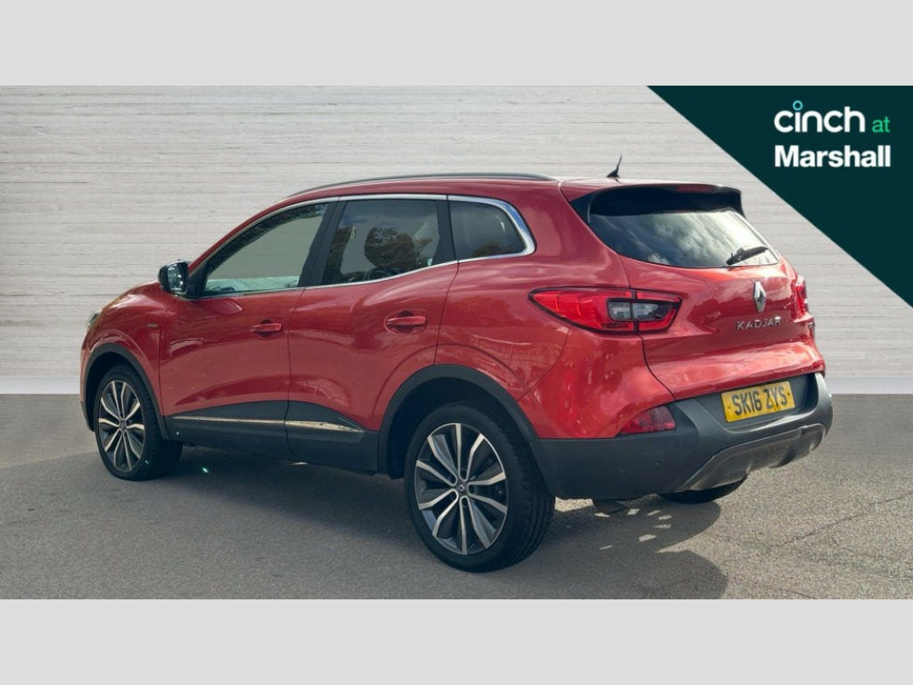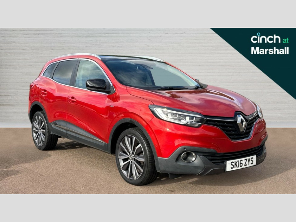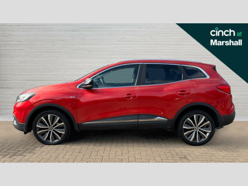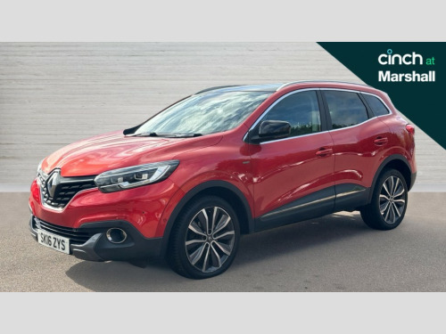 Renault Kadjar 1.6 dCi Signature Nav 5dr 4WD Bluetooth system, Cruise control + speed limiter, Door/boot open warning light, Eco mode, Exterior temperature gauge, Front and rear parking sensors, Oil level gauge, PAS, R-Link Multimedia system with 7" touch screen, satellite navigation and western European map, Rev counter, Traffic sign recognition, Trip computer, Visio system - lane departure and high beam assist, Diesel particulate filter, Bose Premium Audio system with 7 premium speakers + subwoofer, DAB Digital radio, Fingertip controls for audio system, USB connection, Automatic headlights and windscreen wipers, Body colour door handles, Body coloured bumpers, Bodyside mouldings with chrome inserts, Chrome exterior trim, Chrome window surround, Cornering front fog lights, Electric adjustable/heated/folding door mirrors, Electrochrome rear view mirror, Extra tinted glass in rear windows and tailgate, Fixed panoramic glass sunroof, Front and rear electric windows, Front skid plate, Front wipers with variable intermittent facility, Gloss black door mirrors, Heated rear windscreen, Integrated fuel filler cap, LED Headlights, Rear skid plate, Rear wiper, Roof rails, 12v power outlet - front, 3 height adjustable rear headrests, 60/40 split folding rear seat, Adjustable dashboard illumination, Air recirculation system, Centre rear armrest with cup holder, Driver's seat with lumbar adjustment, Driver/passenger reading lights, Driver/passenger sunvisors and illuminated vanity mirrors, Dual zone automatic climate control, Front centre armrest, Front courtesy lights, Front footwell illumination, Height adjustable front headrests, Height/reach adjust steering wheel, Illuminated boot, Isofix system on outer rear seats, Leather steering wheel, One touch easy folding rear seating system, Pollen filter, Rear courtesy lights, Rear passenger heating ducts, Variable boot floor, ABS/EBD, Brake assist function, Driver/passenger 2 stage auto adaptive airbags, Electronic parking brake, ESP + Traction control + Understeer control, Front and rear curtain airbags, Front lateral airbags, Front seat belts warning, Height adjustable front seatbelts, Hill start assist, Passenger airbag deactivation system, Rear seatbelt warning indicator, Three 3 point rear seatbelts, Traction control, Tyre pressure monitor, Deadlocks, Hands free Renault card, Insurance approved Cat 1 alarm system, Insurance Approved Immobiliser, RAID (Renault Anti-Intruder Device) with automatic door locking, Remote central locking, 19" Alloy wheels, Tyre inflation kit