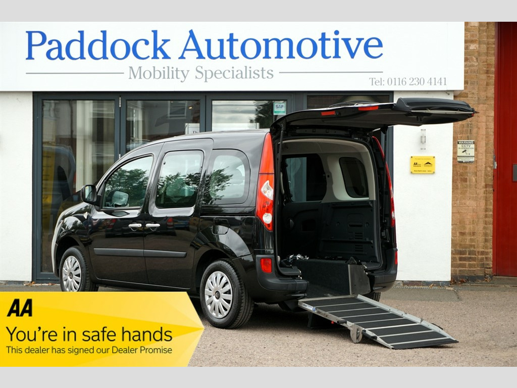 Renault Kangoo 1.6 Automatic Expression, Disabled, Wheelchair Adapted Vehicle, WAV. Complete with Air Conditioning, Power Steering, Remote Central locking and Electric windows. This Superb Vehicle is Presented in Keeping with it's Ultra Low Mileage and Comprehensive Service History. A real Credit to it's Last Owner! Desirable Gowrings Wheelchair Conversion with a Lowered Floor and an assisted Ramp to the Rear. 3 Seats + Wheelchair or Mobility Scooter, with 4 Point Wheelchair Securing with Lap and Diagonal Seat Belt for the Wheelchair User. Supplied Complete with a fresh Service, Valeted, MOT'd and with a Comprehensive Warranty. Enquire Today about our Reservation Scheme! Nationwide delivery, over 50 Adapted cars available. Please try Fish for insurance cover. www.fishinsurance.co.uk We are also Finance Brokers. Details on request. Call for details 0116 2304141. All prices quoted assume VAT exemption as all vehicles are converted for personal wheelchair use - please contact us for any queries or clarification. Follow links to our website for more high-quality pictures, measurements, and internal 360 photographs. Errors and omissions excepted. ABS, Air conditioning, Brake assist system, Central door locking, Connection to ext.entertainment devices, Cruise control, Cup holders, Electric windows, Electronic brake distribution, Front airbag, Front fog lights, Power steering, Remote audio controls, Side airbag Central Locking,Air Conditioning,CD Radio,Electric Door Mirrors,Front Electric Windows,Metallic Paint,Position: Rear Passenger,Power Assisted Steering (PAS),Wheelchair Accessible,Available Length: 110cm,Available Height: 145cm,Available Width: 74cm,Cruise Control,Adjustable Steering Wheel