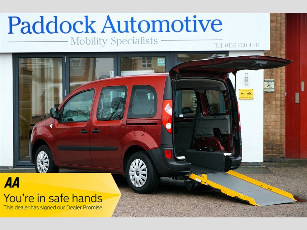 Renault Kangoo 1.6 EXTREME 5Dr, Disabled, Wheelchair Accessible Vehicle, WAV. Complete with, Power Steering, Remote Central locking and Electric windows. This Superb Vehicle is Presented in Keeping with it's Ultra Low Mileage and Service History File. A real Credit to it's Last Owner. Desirable Automotive Group Wheelchair Conversion with a Lowered Floor and an assisted Ramp to the Rear, 3 Seats + Wheelchair or Mobility Scooter. Supplied Complete with a fresh Service, Valeted, MOT'd and with a Comprehensive Warranty. Enquire Today about our Reservation Scheme! Nationwide delivery, over 50 Adapted cars available. Please try Fish for insurance cover. www.fishinsurance.co.uk We are also Finance Brokers. Details on request. Call for details 0116 2304141. All prices quoted assume VAT exemption as all vehicles are converted for personal wheelchair use - please contact us for any queries or clarification. Follow links to our website for more high-quality pictures, measurements, and internal 360 photographs. Errors and omissions excepted. Adjustable Steering Wheel,CD Radio,Central Locking,Cloth Upholstery,Front Electric Windows,Metallic Paint,Position: Rear Passenger,Power Assisted Steering (PAS),Wheelchair Accessible,Rear Parking Sensor,Available Length: 150cm,Available Height: 145cm,Available Width: 76cm