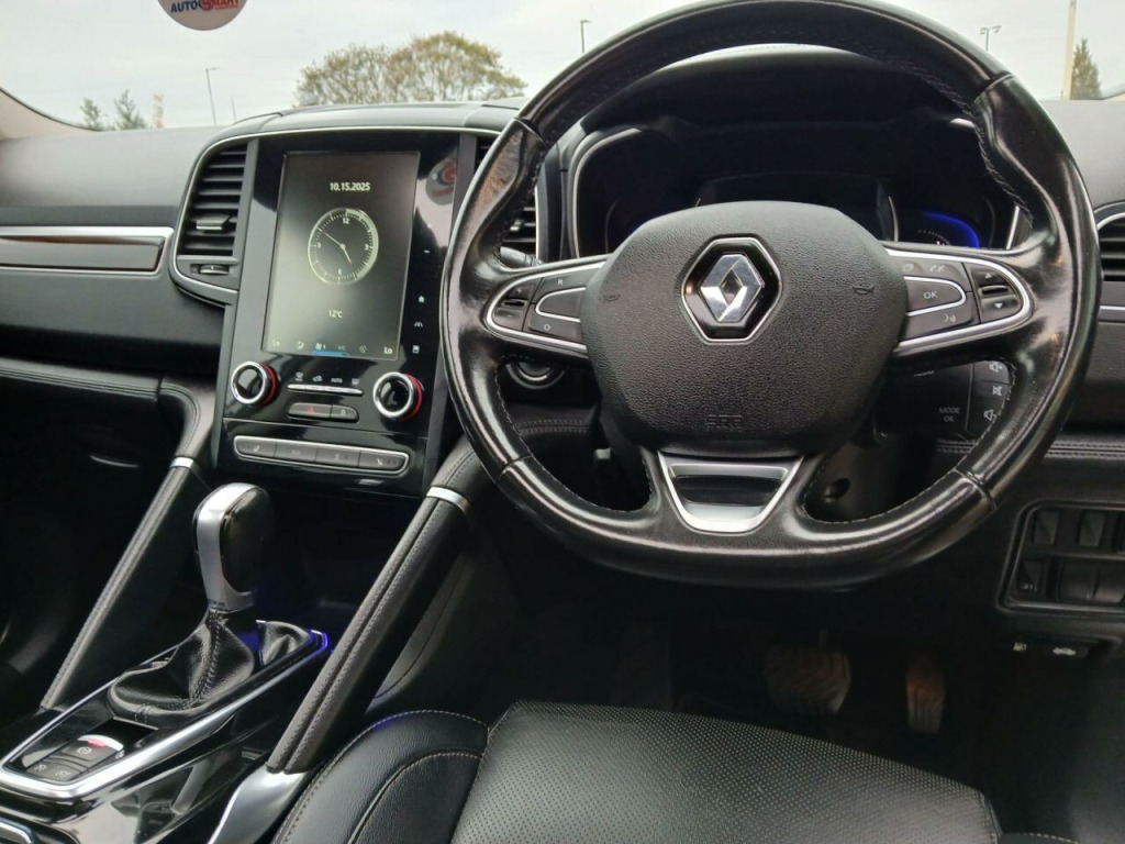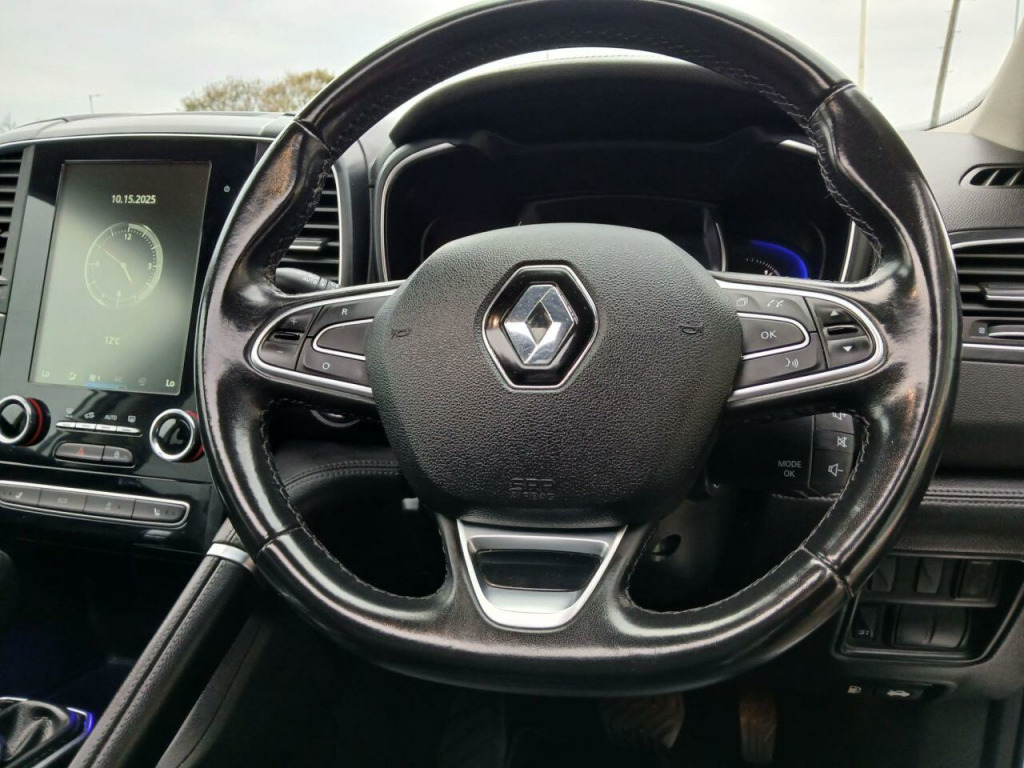 . 19in Alloy Wheels - Diamond Cut - GALIKI, 2 Accessory Power Points, 3 Point Inertia Reel Seatbelts, 3-Seat Rear Bench, 60-40 Split Folding Seats, ABS with EBD - Electronic Brake Distribution and Emergency Brake Assist, AEBS - Advanced Emergency Braking System - Urban and City, Air Recirculation, Airbags - Deactivation of Front Passenger - For Use with Child Seats, Airbags - Drivers Two Stage Auto Adaptive, Airbags - Front Lateral, Airbags - Front Passengers Two Stage Adaptive, Airbags - Front and Rear Curtain, Ambient Lighting, Anti-Drill Door Locks and Ignition Barrel, Apple CarPlay and Android Auto, Arkamys Radio - 4x35W - 3D Sound, Automatic Dual Zone Climate Control, Automatic Headlights and Windscreen Wipers, Blind Spot Warning, Courtesy Lights - Rear, Cruise Control with Speed Limiter, Daytime Running Lights - LED, Display - Digital Speedometer - 7in TFT Screen, Door Handles - Body Coloured - Front, Door Mirrors - Body Coloured Shell, Door Mirrors - Electrically Operated - Heated - Folding, Door-Boot Open Warning Light, Driver and Passenger Seat Belt Undone Warning Audible Alert, ESP - Electronic Stability Programme with ASR - Anti-Skid Regulation and UCL - Understeer Logic Control, Eco Mode, Electric Windows - Front, Electric Windows - Rear, Electrochromatic Rear View Mirror, Electronic Parking Brake, Exterior Temperature Indicator, Extra Tinted Windows - Rear and Tailgate, Fingertip Audio System Remote Control, Front Centre Armrest with Storage, Front Fog Lights, Front and Rear Towing Rings, HSA - Hill Start Assist, Headlights - Full LED, Headrests - Front Fully Adjustable, Headrests - Rear Height Adjustable x3, Heated Front Seats, Heated Rear Windscreen, Heating Ducts to Feet of Rear Passengers, Height Adjustable Front Seat Belts, ISOFIX - Child Seat Fixing Points - Outer Rear Seats, Indicators with Side Repetitions, Insurance Approved - Category 1 Alarm System and Immobiliser, Interior Courtesy Light Controlled By All 4 Doors, Keycard - Hands Free, Low Fuel Level Warning Light, Luggage Compartment - Illumination, Passenger Height Adjustment Seat, Pollen Filter, Power Assisted Steering, R-Link 2 Multimedia System - 8.7in Touchscreen, RAID - Renault Anti Intruder Device, Reading Lights - Driver and Front Passenger, Rear Parking Camera with Front and Rear Parking Sensors, Rear Seatbelt Unfastened Audible Alert, Rev-Counter, Seats - Height Adjustable Front Seatbelts with Double Pretensioners, Side Impact Protection Bars, Steering Wheel - Leather, Steering Wheel - Rake and Reach Adjustable, Sun Visor - Mirror With Light, Sunroof, Superlocking, Trip Computer, Tyre Inflation Kit, Tyre Pressure Monitoring System, Visio System, Leather - Carbon Black, Stingray Silver.