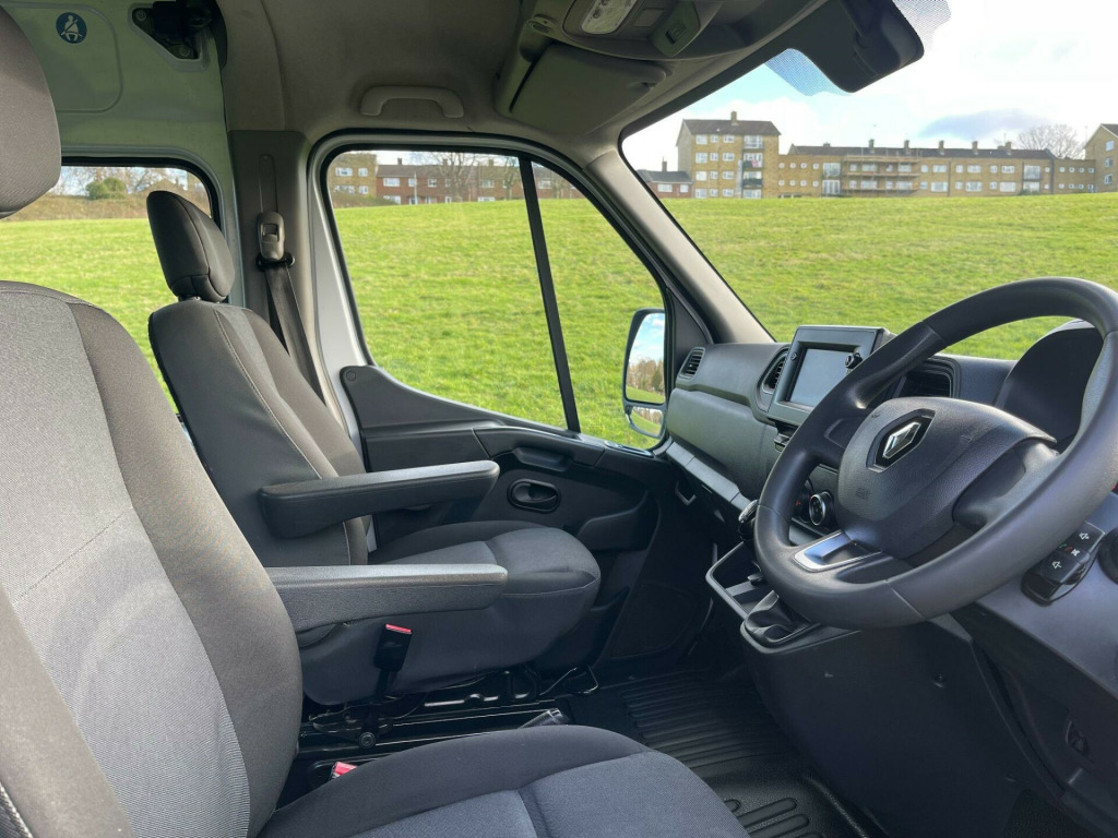 This 2021 Renault Master 2.3 dCi 35 Business Crew Van is a superb example, having had only one owner from new and boasting a clear vehicle history check. This LWB Medium Roof model, registered in 2021, features a robust 2.3 litre diesel engine and meets Euro 6 emission standards. For your convenience, it comes equipped with the MediaNav Multimedia System, complete with Bluetooth connectivity, and a Radio offering DAB, Bluetooth, CD, and USB playback. A tow bar is also fitted, ready for your towing needs.With an impressive cargo volume of 9000 litres, this Master Business Crew Van offers substantial space for your goods. Its low CO2 emissions highlight its efficiency, making it a more environmentally conscious choice compared to similar vehicles. This combination of a single owner, excellent condition, and practical features makes this Renault Master a compelling option for your business needs. dianav multimedia system, tow bar, 16in steel wheels with small wheel stylers, 2x cupholders on centre console, abs with ebd - electronic brake force distribution, airbags - driver, alarm, automatic headlights and front wipers, bulkhead - full steel with glazing, c-shaped drl, closed lid glovebox, deadlocking, door mirrors - electrically adjustable - manual folding and heated, drivers seat with armrest - height adjustment and lumbar adjustment, esc - electronic stability control with grip xtend - hill start assist and trailer swing assist, electric windows - front, electronic engine immobiliser, integrated storage nets and cup holders, left and right side loading doors - glazed with non opening windows, load anchorage points x10, overhead parcel shelf, passenger bench seat, power assisted steering, radio with dab - bluetooth - cd and usb, rear doors - unglazed 180 degree opening, rear running board and handles, remote central locking - 2 button key, seatbelts - 3 point height-adjustable with pretensioners, seats - 2nd row of 4 passenger seats, seats - single passenger height adjustment with lumbar adjustment, spare wheel, steering wheel - height adjustable, trip computer - multi-function with rev counter