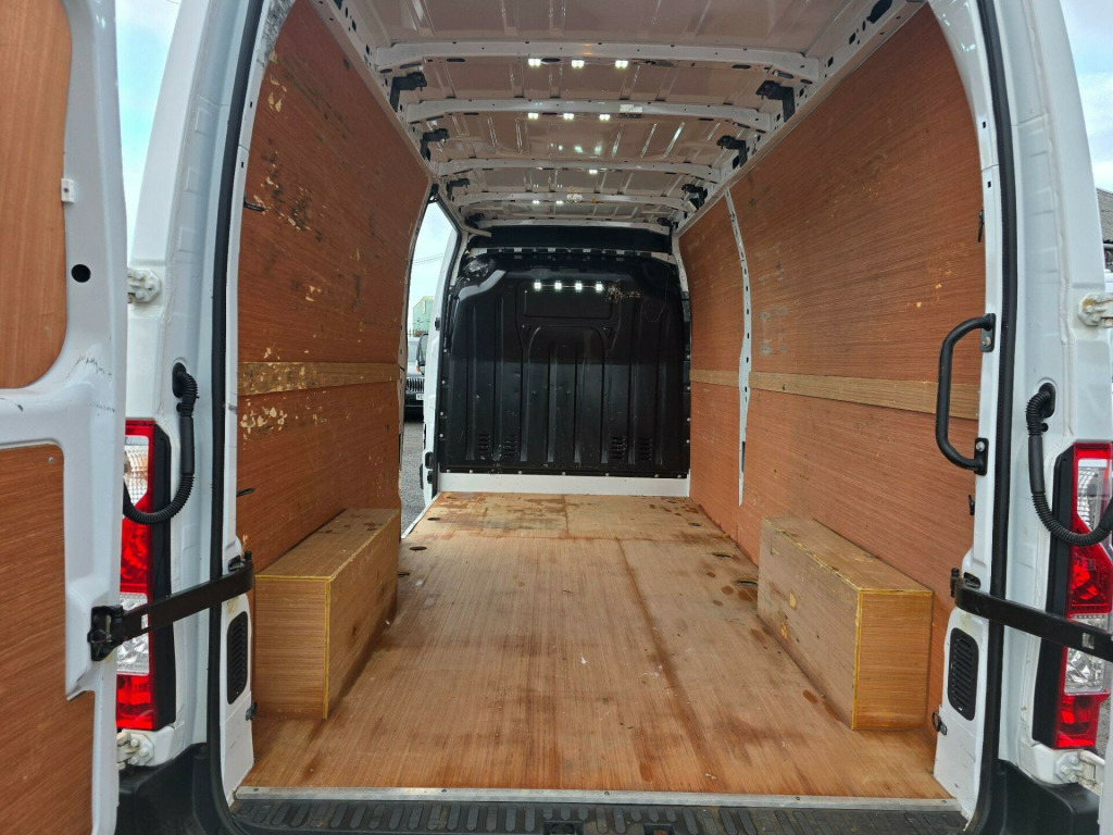This 2021 Renault Master van has had only one owner from new, offering excellent provenance. It features a robust 2.3 litre dCi diesel engine, meeting Euro 6 emission standards, and is presented in the Business trim. For your entertainment and connectivity needs, it comes equipped with a radio that includes DAB, Bluetooth, CD player, and USB functionality.With an impressive cargo volume of 13000 litres, this LWB Medium Roof model provides ample space for your goods, indicating its superior capacity compared to similar vehicles. The Business derivative is designed for practicality and efficiency, making it a reliable choice for a variety of commercial needs. in steel wheels with small wheel stylers, 2x cupholders on centre console, abs with ebd - electronic brake force distribution, airbags - driver, alarm, automatic headlights and front wipers, bulkhead - full steel, c-shaped drl, closed lid glovebox, deadlocking, door mirrors - electrically adjustable - manual folding and heated, drivers seat with armrest - height adjustment and lumbar adjustment, esc - electronic stability control with grip xtend - hill start assist and trailer swing assist, electric windows - front, electronic engine immobiliser, left side loading door - unglazed, load anchorage points x10, overhead parcel shelf, passenger bench seat, power assisted steering, radio with dab - bluetooth - cd and usb, rear doors - unglazed 180 degree opening, rear running board and handles, remote central locking - 2 button key, seatbelts - 3 point height-adjustable with pretensioners, spare wheel, steering wheel - height adjustable, trip computer - multi-function with rev counter