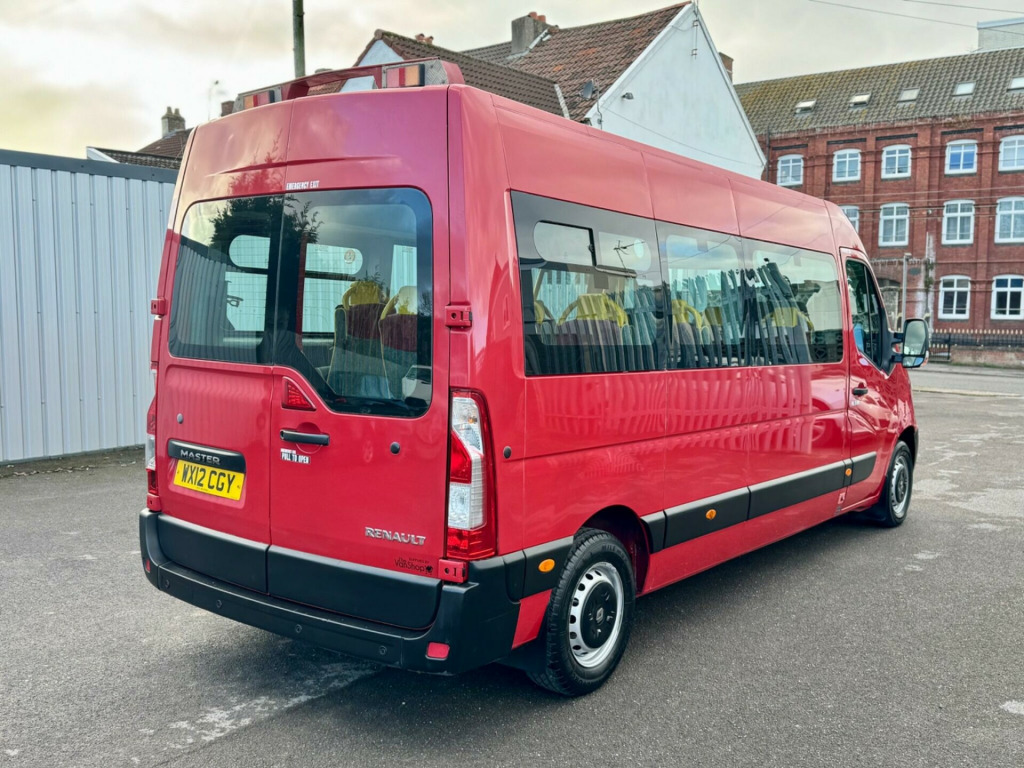 2012 Renault Master 35 FWD LWB Medium Roof Minibus 2.3 dCi 125 BHP Engine with 6 Speed Gearbox. 3500kg GVW so can be driven on a standard driving licence. Onlt one former owner from new. New 12 month MOT upon sale. 3 Remote locking keys. Sky light window. Retractable side step. Fully lined and insulated rear. Rear lights and Speakers. Rear opening windows. Electric windows and mirrors. Steering wheel controls. Two captains chairs with arm rests. Rear parking sensors. Plus much more.This 2012 Renault Master presents an exceptional opportunity with an incredibly low mileage of just 60,000 miles, especially for a vehicle of its age, and has been owned by only one person. This 2.3 dCi 35 FWD LWB Medium Roof Euro 5 model is powered by an efficient 2.3 litre diesel engine and comes equipped with Bluetooth connectivity, allowing for seamless integration of your devices.NO VAT. NO ADMIN FEES. HPI CLEAR. LOW RATE FINANCE AVAILABLE*. PART EXCHANGE WELCOME. NATIONWIDE DELIVERY AVAILABLE. ALL VEHICLES UNDERGO A 100 POINT PDI WORKSHOP INSPECTION. ALL VIEWINGS ARE BY APPOINTMENT. AVAILABLE MOST DAYS UNTIL 8pm, IF YOU REQUIRE MORE INFORMATION OR WOULD LIKE TO ARRANGE A VIEWING OR HAVE A VIDEO OF THE VAN SENT TO YOURSELF VIA WHATSAPP PLEASE CALL ON 01172795071 OR MESSAGE ON 07487322582 in steel wheels, 180ah alternator, 2x20w radio with fingertip control and rca connection, abs - anti lock brakes, airbags - driver, alarm - pre-wiring, anchorage points on load floor, armrest - driver, bluetooth connectivity, bulkhead - full steel, deadlocking, door mirrors - 16w integrated side repeater lights, door mirrors - electrically adjustable - manual folding and heated, door mirrors - standard arms, ebd - electronic brake distribution, electric windows - front, electronic engine immobiliser, fingertip controls, fuel computer - multifunctional, fuel tank - 80 litres, hub caps, left side loading door - unglazed, multi-function tune point, no carminat tomtom live satellite navigation system, passenger bench seat, power assisted steering, raid - renault anti intruder device, rca connection, rear doors - 180 degree solid, rear doors unglazed, remote central locking, roof bars fixings, seats - drivers height adjustment, side marker lights, side panel - right unglazed - no right door, spare wheel, usb connection