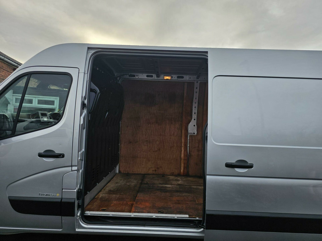 This 2019 Renault Master van boasts a single owner from new, offering excellent provenance. It features a robust 2.3 litre dCi diesel engine, delivering a strong 150 bhp and meeting Euro 6 emission standards. The Business+ trim level ensures a practical and comfortable driving experience, enhanced by manual air conditioning with a pollen filter and a versatile radio system complete with DAB, Bluetooth, CD, and USB connectivity. For added convenience, rear parking sensors are included, aiding in manoeuvring and parking.With an impressive cargo volume of 10800 litres, this Master van is exceptionally well suited for carrying substantial loads. Its Euro 6 compliant engine also contributes to lower CO2 emissions, making it a more environmentally conscious choice compared to many similar vehicles. The combination of its generous load space, powerful yet efficient engine, and thoughtful features makes this Renault Master a compelling option for businesses and individuals requiring a reliable and capable commercial vehicle. v power socket - load area, 16in steel wheels with large wheel stylers, 2x cupholders on centre console, abs with ebd - electronic brake force distribution, air conditioning - manual with pollen filter, airbags - driver, alarm, automatic headlights and front wipers, bulkhead - full steel, c-shaped drl, chrome trim on front grille, clipboard holder, closed lid glovebox, deadlocking, door mirrors - electrically adjustable - manual folding and heated, drivers seat with armrest - height adjustment and lumbar adjustment, esc - electronic stability control with grip xtend - hill start assist and trailer swing assist, electric front windows - drivers side - one touch - descending, electronic engine immobiliser, interior chrome trim, key - 3 button, left side loading door - unglazed, load anchorage points x10, overhead parcel shelf, parking sensors - rear, passenger bench seat, pivoting seatback table and dual split underseat storage compartment, power assisted steering, radio with dab - bluetooth - cd and usb, rear doors - unglazed 180 degree opening, rear running board and handles, remote central locking - 2 button key, seatbelts - 3 point height-adjustable with pretensioners, seats - drivers fully adjustable suspension, spare wheel, steering wheel - height adjustable, trip computer - multi-function with rev counter, wide view mirror