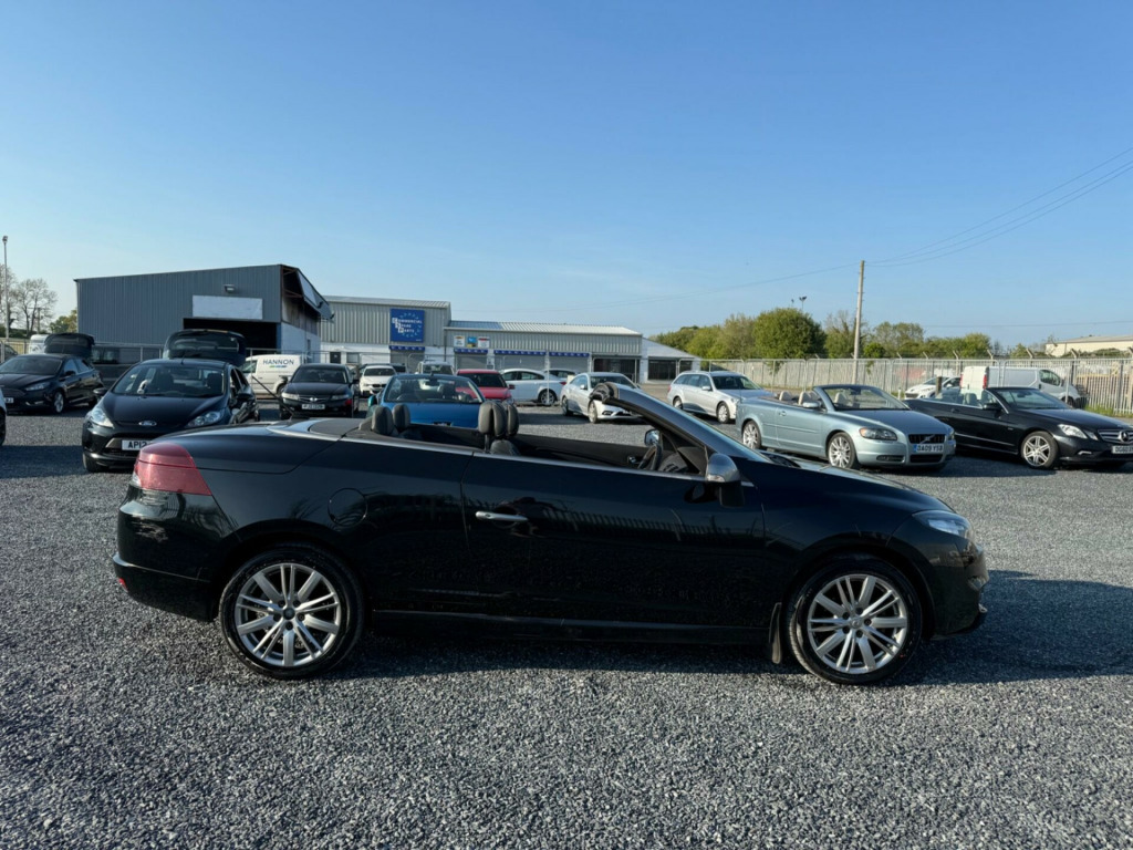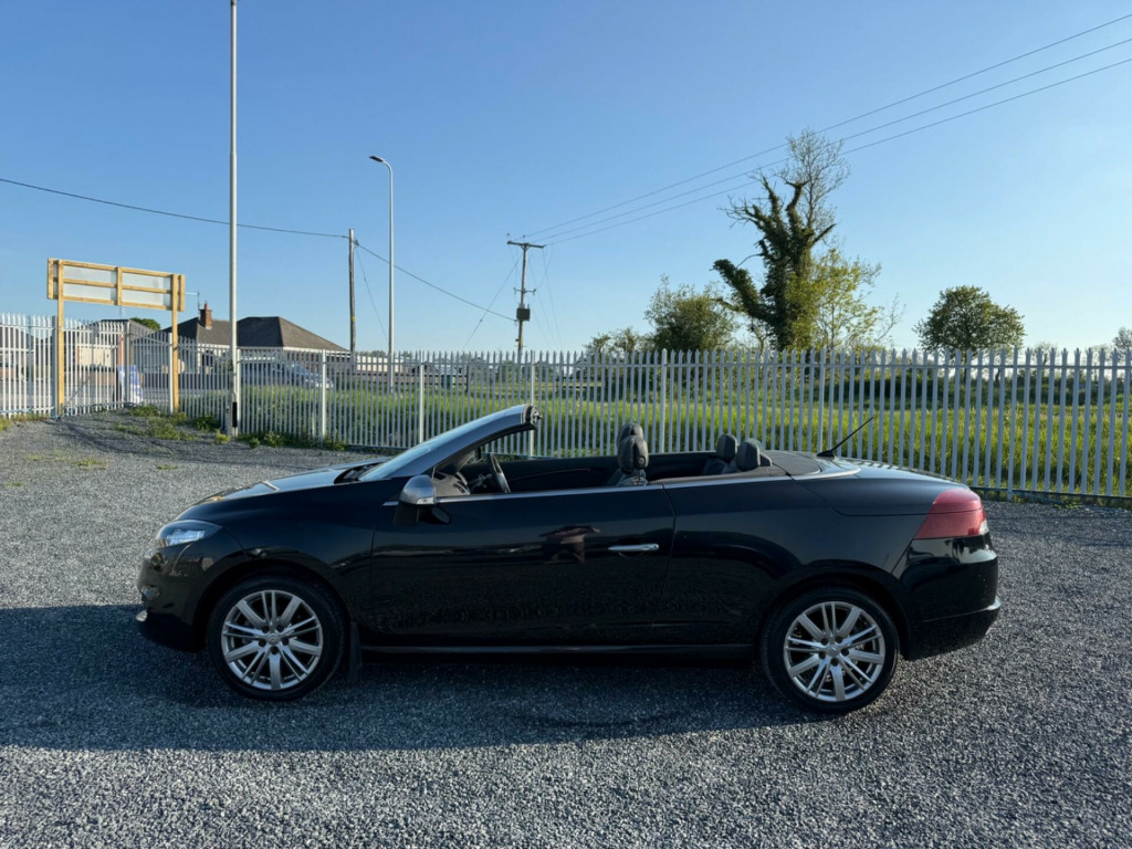 Renault Megane 1.6 dCi GT Line Cabriolet Registered January 2014Fresh Out Of England Warranted 71628 Miles With Service History & Vosa MOT History.Full Pre Delivery Inspection In Our Own Workshop.3 Months Comprehensive No Quibble In House Warranty Included With Option To Extend TO 6 Months.Finished In Metallic Black With Half Leather Stitching.Power Steering, Electric Windows, Electric Door Mirrors, Electric Hood, Panoramic Glass Sunroof, Digital Climate Control + Air Conditioning ( Ice Cold ), Trip Computer, Cruise Control, Colour Screen Sat/Nav, Rear Parking Sensors, Remote Central Locking With Factory Alarm & Immobiliser, 6 Speed Manual, Multi Function Steering Wheel.Full V5 + Service History + 3 Months Comprehensive No Quibble Warranty.Part Exchange Welcome.All Major Credit & Debit Cards Accepted.Viewing By Appointment 7 Days Until 8pm. v power socket - front, 12v power socket - luggage compartment, 17in alloy wheels - celsium - dark chrome, abs - anti lock brakes, asr - anti-skid regulation, aux input, adjustable dashboard illumination, airbags - anti-submarining for front seats, airbags - drivers two stage auto adaptive, airbags - front lateral, airbags - front passenger deactivation, airbags - front passengers two stage adaptive, airbags - front and rear curtain, alarm - thatcham category 1, anti-drill door locks and ignition barrel, arkamys 3d sound 4x30w radio cd with bluetooth and usb connection, armrest - front centre with storage compartment, automatic windscreen wipers with rain sensors, badging - gt front and rear, bluetooth connectivity, boot light, bumpers - front - body coloured gt with gloss black grille, bumpers - rear - body coloured gt with dark chrome diffuser, carminat tomtom live satellite navigation system with joystick control, climate control - automatic dual zone, climate pack, courtesy lights - rear, cruise control with speed limiter, daytime running lights - led, deadlocking, door handles - dark chrome, door mirrors - dark chrome housings, door mirrors - electrically operated - heated - folding, door-boot open warning light, eba - emergency brake assist, ebd - electronic brake distribution, esc - electronic stability control, electric windows - front and rear, exterior temperature sensor, fingertip remote control, fog lights - dark chrome surrounds, front fog lights, fuel computer, headlights - automatic on, headlights - black surrounds, headlights - double optic, headlights - see me home, headrests - anti-roll activation, headrests - front fully adjustable, headrests - gt line embroidered, headrests - rear, heating ducts to feet of rear passengers, isofix - child seat fixing points - rear x2, interior courtesy light controlled by all 4 doors, interior trim - anthracite detailing on door pulls-air vents and dashboard, keycard entry with push button start-stop function, kick plates - front aluminium, lockable glovebox, luggage compartment - illumination, luggage compartment - storage for first aid kit, parking sensors - rear, passenger height adjustment seat, pedals - aluminium sport, pollen filter, power assisted steering, push button start, raid - renault anti intruder device, roll arches - deploying in emergency roll situation, seats - drivers height adjustment, seats - drivers lumbar adjustment, seats - front reclining, seats - front sport, seats - g.t embroidered logo, soft touch dashboard, steering column - reach and rake adjustable, steering wheel - leather, steering wheel - renaultsport design, storage - covered centre console, storage - front door space for water bottle, storage - front under floor, storage - glovebox with lighting, sun visor - drivers with vanity mirror, sun visor - passengers with vanity mirror, sunroof - electric, tinted windows, tyre inflation kit, tyre pressure monitoring system, ucl - understeer logic control, usb connection, wind deflector, windows - short drop system