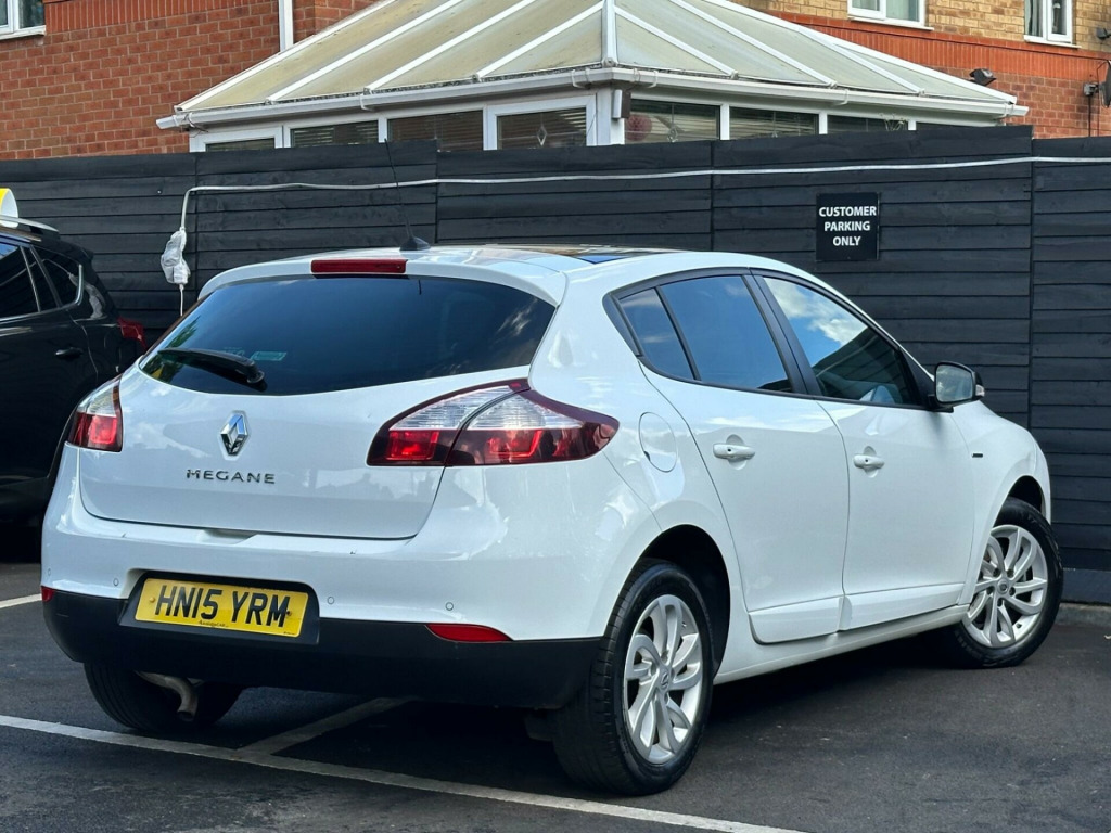 A&A MOTORS LIMITED offer this stunning Renault Megane 1.6 VVT Limited Euro 5 5dr Boasting a great service history with its last service completed on 2025-09-03 at 106141 miles, this 2015 Renault Megane VVT Limited is a well maintained example. This one owner vehicle is powered by a 1.6L petrol engine and comes with a 3 month warranty for your peace of mind. Its MOT is valid until September 2026, ensuring it is roadworthy for the foreseeable future. Notable features include Renault Keyless Entry, automatic headlights, an electric panoramic sunroof with a sunblind, manual air conditioning, and automatic dual zone climate control, all designed to enhance your driving experience.This Renault Megane VVT Limited offers several advantages that set it apart. Its acceleration from 0-62mph in 10.5 seconds provides a responsive drive. The vehicle also benefits from a low insurance group, which can help to keep your running costs down. Furthermore, the generous boot space makes it a practical choice for everyday use, easily accommodating shopping or luggage.Every vehicle at A&A Motor Ltd Company comes with a comprehensive HPI Check. This confirms your new vehicle is clear from being stolen, finance outstanding or being in any total loss accident., Part Exchanges are welcome, Here at A&A Motors ltd Company we will always consider your current vehicle in part exchange. Fill in the details on the website link or call us on 07730522802-07960061716 and a member of staff will be in touch as soon as possible,. 12V Socket - Rear Centre Console, 12v Socket - Front, 16in Alloy Wheels - Kaleido, ABS - Anti Lock Brakes, ASR - Anti Skid Regulation and UCL - Understeer Control Logic, Adjustable Dashboard Illumination, Air Conditioning - Manual, Airbag - De-Activation for Front Passenger, Airbags - Driver, Airbags - Front Lateral, Airbags - Front Passenger, Airbags - Front and Rear Curtain, Alarm - Thatcham Category 1, Automatic Windscreen Wipers with Rain Sensors, Bluetooth Connectivity, Brake Assist, Chrome Door Sill Plates - LIMITED, Climate Control - Automatic Dual Zone, Cruise Control, Daytime Running Lights - LED, Deadlocking, Display - Digital Speedometer, Door Handles - Body Coloured - Front, Door Mirrors - Electrically Operated - Heated - Folding, Door Mirrors - Gloss Black Housing, Door-Boot Open Warning Light, EBA - Emergency Brake Assist, EBD - Electronic Brake Distribution, ESC - Electronic Stability Control, Electric Windows - Front, Electric Windows - Rear, Electronic Engine Immobiliser, Extra Tinted Windows - Rear and Tailgate, Footwell Lighting, Front Fog Lights, Fuel Computer - Multifunctional, Headlights - Automatic On, Headlights - Daytime Running Lights, Headlights - See Me Home, Headrests - Front Fully Adjustable, Headrests - Height Adjustable, Headrests - Rear Height Adjustable x3, Heating Ducts to Feet of Rear Passengers, ISOFIX - Child Seat Fixing Points - Outer Rear Seats, Integrated Fuel Filler Cap, Key - Closing Windows, Keycard - Handsfree - Automatic Opening Upon Approach, Keycard Entry with Push Button Start-Stop Function, Load Anchorage Points, Parking Pack, Pollen Filter, Power Assisted Steering, RAID - Renault Anti Intruder Device, Radio - 4x20W Radio CD with Fingertip Remote Control, Rear Seatbelt Unfastened Audible Alert, Remote Central Locking, Renault Keyless Entry, Rev-Counter, Satellite Navigation - Carminat TomTom Live System, Seatbelt Audible Alert, Seats - 60-40 Split Folding Rear, Seats - Drivers Height Adjustment, Seats - Drivers Lumbar Adjustment, Speed Limiter, Steering Wheel - Height and Reach Adjustable, Steering Wheel - Leather, Storage - Centre Console with Armrest, Storage - Covered Centre Console, Storage - Front Under Floor, Storage - Glovebox with Lighting, Sun Visor - Passengers with Vanity Mirror, Sunroof - Electric Panoramic with Sunblind, Tinted Windows, Traction Control, Tyre Inflation Kit, USB Connection. Full service history