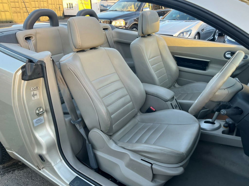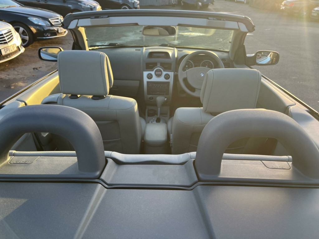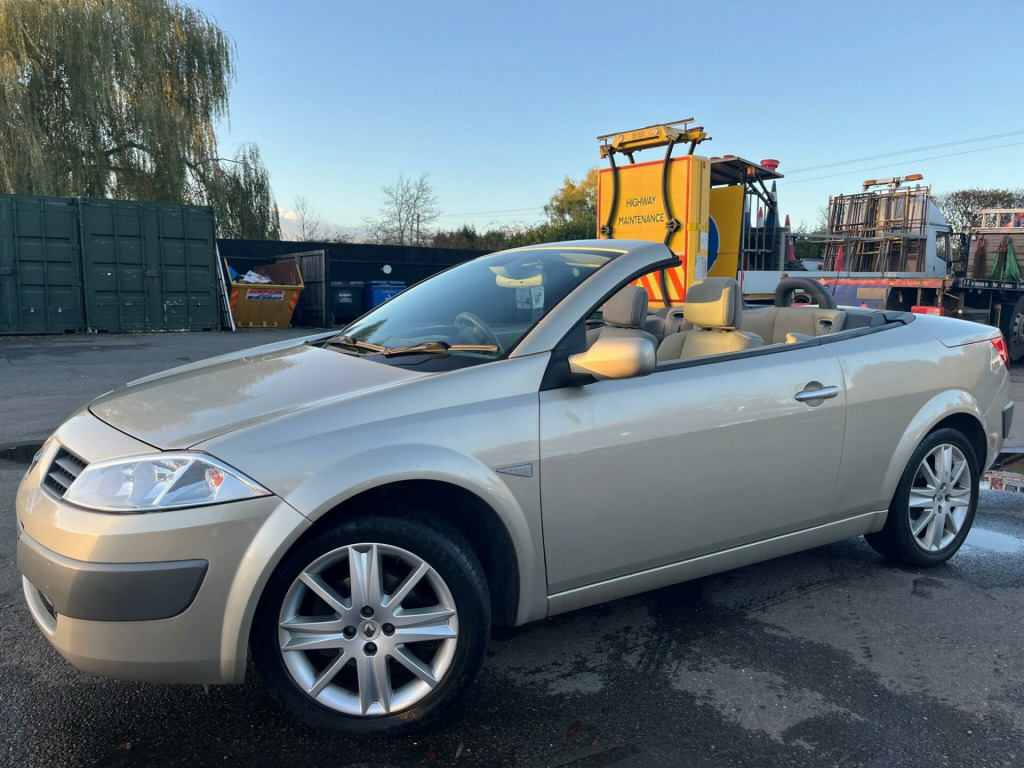 NEW CAM-BELT AND WATER- PUMP FITTED THIS WEEK THIS Renault Megane 2.0 VVT Privilege 2dr AUTOMATIC POWER ROOF CONVERTIBLE LOOKS AMAZING IN CHAMPAGNE METALlIC PAINTWORK AND CONTRASTING CREAM LEATHER HEATED SEATS. THE LAST OWNER HAS LOVED THE CAR FOR 20 YEARS YOU CAN TELL THAT BY THE SUPERB CONDITION THE SPORTS CONVERTIBLE IS IN YES AND IT'S REALLY LOW LOW LOW MILEAGE FOR THE YEAR 35K WITH A GOOD FULL SERVICE HISTORY 22 SERVICES 11 OF THE MAIN DEALER AND JUST SERVICED IN MAY 2025 35297 & IT COMES A NEW MOT WITH NO ADVISES. THIS CAR IS LOADED WITH WITH SOME FACTORY EXTRAS TOO MANY TO LIST HERE. POWER CONVERTIBLE PANORAMIC GLASS SUNROOF, FACTORY FITTED, STEREO RADIO WITH CD-MULTI-PLAYER, FRONT AND REAR PARKING AID DUAL ZONE DIGITAL CLIMATE CONTROL AIR-CONDITIONING, REMOTE CONTROL CENTRAL LOCKING, ZENON HEADLIGHTS, ALLOY WHEELS WITH GOOD TYRES ALL ROUND. 2 SETS OF REMOTE THERE ARE ALL THE BOOKS AND MANUALS. This Renault Megane VVT Privilege from 2005 boasts an exceptional history, having been owned by just one careful keeper since new. This well maintained example is presented with a clear vehicle history check, offering peace of mind for its next owner. Under the bonnet lies a responsive 2.0 litre petrol engine, paired with the Privilege trim level, providing a comfortable and enjoyable driving experience. The Megane VVT Privilege stands out with its low insurance group, making it an economical choice for many drivers. You can also expect impressive fuel economy of 34 miles per gallon, alongside commendably low CO2 emissions for its class. Practicality is also a strong suit, with generous boot space designed to accommodate your luggage or shopping needs with ease. ather upholstery ilo part leather, metallic paint, 4x15w remote control single cd radio, adjustable steering column/wheel, air bag anti-submarine, air bag driver, air bag passenger, air bag side, air-conditioning, air-conditioning/pollen filter, alarm, alloy wheels (16in), anti-lock brakes, armrest, body coloured bumpers, central door locking, climate control, computer (driver information system), dash mounted 6cd multi-changer, deadlocks, electric windows (front/rear), front fog lights, hands-free card & electric folding mirrors, head air bags, head restraints, immobiliser, in car entertainment (radio/cassette), mirrors external, mirrors internal, power socket, power-assisted steering, seat height adjustment, seat lumbar support, side protection mouldings, speakers, steering wheel mounted controls (audio), upholstery cloth/leather
