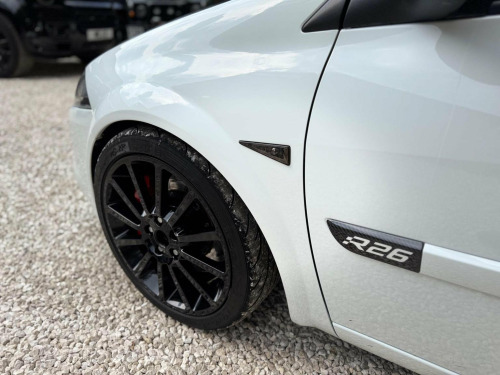 Here is a stunning Renault Megane R26 with a GENUINE 26,000 miles from new, this vehicle has recently had a service, cambelt replacement and remap at RS Tuning Renault specialists in Leeds, fitted with Xpel PPF track pack, under the car is like brand new. This is a top factory spec car with full service history. Glacier white paint, Paino black door handles mirrors, Keyless entry , Keyless start, Power folding mirrors, Parking sensors , Full leather Recaro treadline seats, Remote locking, Climate control, Xenon headlights, Front fog lights , Tinted windows, Cruise control, Brembo brakes , Rear spoiler , Genuine Renault carbon fibre bonnet, Within the last 5k:, Genuine rear disks, Rs tuning lightweight flywheel and R26R clutch , Short shifter, Gearbox oil change, Turbo back milltek exhaust , Light weight half depth stereo, Brand new exide platinum battery, Powdercoated alloys in black wrapped in nearly new Nankang NS2R tyres, This car also comes with some tasteful Modifications which include-, KTR intake filter , R26r spoiler with maxton design extension spoiler, Full turbo back milltek exhaust , Forged intercooler, Rs tuning lightweight r26r flywheel and clutch, 330mm floating front discs and ferodo DS2500 pads, New genuine Renault rear discs and rear pads, Cooksport springs, Deka 630cc injectors, H&R spacers, This car has been serviced at Renault london every 3k miles from brand new!! The car has been carefully tuned to perfection in all respects of performance, handling and braking, The R26 NUR number plate ins included