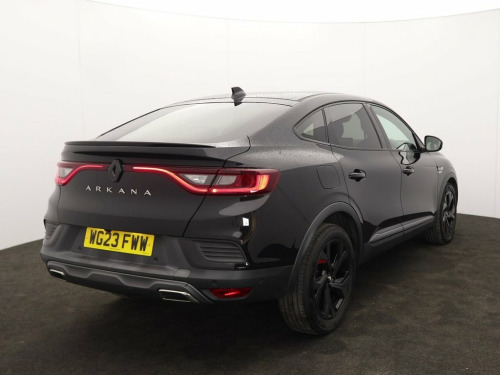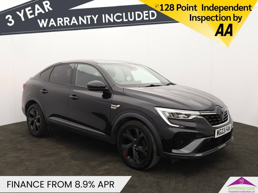 This 2023 Renault Arkana R.S. Line is a superb example, having had only one owner from new and boasting a clear vehicle history check. This stylish coupe SUV features a responsive 1.3L petrol engine, meeting Euro 6 emission standards. Inside, you'll find a wealth of modern technology, including adaptive cruise control with a speed limiter, automatic headlights, and a DAB radio with Bluetooth and USB connectivity. Parking is made easier with a rear view camera, and the handsfree keycard allows for convenient keyless access and starting. The Arkana R.S. Line offers a compelling blend of efficiency and practicality. Its impressive fuel economy of 49 mpg, combined with low CO2 emissions, makes it an economical choice for everyday driving. Furthermore, the generous boot space ensures you have ample room for luggage or shopping, setting it apart from many other vehicles in its class. This combination of features and its excellent condition make it a truly desirable option. 10in TFT Drivers Information Display, Bluetooth - DAB Radio and USB Ports, Easy Link 9.3in Portrait Touchscreen wit, Renault Automatic Emergency Assist - E-C, Shiny Black Shark Fin Antenna, Smartphone Integration with Apple CarPla, Wireless Charging for Smartphone, 18in Alloy Wheels - Silverstone Diamond , Black Side Door Protection with Gun Meta, Chrome Decopart on Wing - Fender Molding, Double Chromed Exhaust Tailpipes Element, Electric Windows - Front and Rear, Exterior Chrome Enhancements, Extra Tinted Windows - Rear and Tailgate, Front Bumper with F1 Blade and Honeycomb, Front Grille with Chrome on Upper Part, Glossy Black Door Mirror and Lower Windo, Gun Metal Front and Rear Skid Plate