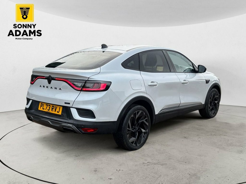 Introducing the Renault Arkana 1.6 E-TECH Esprit Alpine, a stylish petrol hybrid SUV combining performance, efficiency, and cutting-edge technology. This £Pearl White 145ps Euro 6 model features 19" Esprit Alpine alloy wheels, C-shaped LED signature lighting, dual exhaust tailpipe elements, and distinctive espirit Alpine exterior styling. Inside, enjoy a premium cabin with black roof lining, heated front seats, heated steering wheel, MULTI-SENSE with 3 driving modes and 8 ambient lighting options, 10" TFT driver display, and the EASY LINK 9.3" touchscreen with 3D navigation and smartphone integration via Apple CarPlay and Android Auto. Comfort is further enhanced with automatic climate control, rear air vents, foldable sliding rear seats, and wireless phone charging. Safety and convenience features include ABS, ESC, AEBS, lane departure warning, lane keep assist, blind spot monitoring, rear cross traffic alert, parking sensors front and rear, rear-view camera, ISOFIX rear seats, handsfree keycard, hill start assist, and automatic emergency assist (E-Call). Drive efficiency is enhanced with EV mode, ECO mode, and B brake one-pedal regenerative driving. For added peace of mind, if the MOT is under six months, we'll ensure a fresh MOT is completed before sale. The vehicle also comes with a standard three-month back-to-base warranty, with the option to extend it to a nationwide warranty for added reassurance. Nationwide delivery is also available. Fin 10in TFT Drivers Information Display, 19in Alloy Wheels - esprit Alpine, ABS - Anti-lock Braking System, AEBS - Advanced Emergency Braking System, Adaptive Cruise Control with Speed Limit, Automatic Climate Control with Combined , Automatic Headlights, Automatic Windscreen Wipers with Rain Se, B Brake Mode - One-Pedal Driving with In, Black Interior Roof Lining, Blind Spot Warning, Bluetooth - DAB Radio and USB Ports, C-shaped LED Front Signature Lighting - , Central Console with Storage, Deadlocking, Distance Warning Alert, Door Mirrors - Black, Door Mirrors - Electrically Adjustable a, Double Exhaust Tailpipe Elements in Glos, Driver Seat Belt Height Adjustable, Driver and Passenger Front