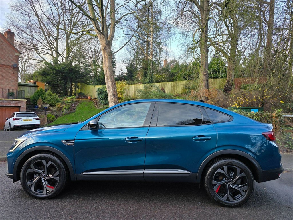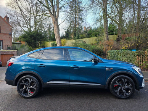 This 2023 Renault Arkana E-TECH r.s. line is a standout example, having been owned by just one careful keeper and boasting exceptionally low mileage for its age at only 19,075 miles. This stylish coupe SUV features a 1.6 litre petrol hybrid engine, meeting Euro 6 emission standards. Inside, you'll find a host of convenient features designed for modern driving, including a heated steering wheel for those chilly mornings, wireless charging for your smartphone, and a handsfree keycard for effortless keyless access and starting. The Arkana also comes equipped with full LED headlights for enhanced visibility and seamless smartphone integration with both Apple CarPlay and Android Auto, keeping you connected on every journey. The highlights of this particular Arkana demonstrate its superior value. With an impressive fuel economy of 59 miles per gallon, it offers significant savings on running costs compared to many other vehicles in its class. Its low CO2 emissions further contribute to its eco friendly credentials. Furthermore, the Arkana boasts a generous boot space, making it a practical choice for families or those who need ample room for luggage or shopping. Its low insurance group rating also means more affordable ownership, making this a truly sensible and appealing option. 18in Alloy Wheels - Silverstone Diamond with Red Inserts,7in TFT Driver Information Display,ABS with EBA - Emergency Brake Assist,Adaptive Cruise Control with Speed Limiter,Auto Dimming Rear View Mirror,Automatic Climate Control with Combined Filter - Humidity Sensor - Air Quality Sensor,Automatic Headlights,Automatic Windscreen Wipers with Rain Sensors,B Brake Mode - One-Pedal Driving with Increased Regenerative Braking,Bluetooth - DAB Radio and USB Ports,C-Shaped LED Front Signature Lighting,Carbon Style Soft Touch Dashboard,Chrome Decopart on Wing - Fender Molding - with RS Line Badge,Door Mirrors - Electrically Adjustable and Foldable with Defrosting and Temperature Sensor,Double Chromed Exhaust Tailpipes Elements,Easy Link 9.3in Portrait Touchscreen with Navigation - Google Search - Traffic Information,ECO Mode Function,Electronic Parking Brake with Auto-Hold Function,ESC - Electronic Stability Control,EV Button to activate PURE mode -100% Electric Drive,Extra Tinted Windows - Rear and Tailgate,Frameless Rear-View Mirror,Full LED Headlights,Hands Free Parking,Handsfree Keycard - Keyless Access and Start,Heated Steering Wheel,HSA - Hill Start Assist,ISOFIX Child Seat Fixing Points on Rear Outermost Seats,LDW - Lane Departure Warning,LKA - Lane Keep Assist,MULTI-SENSE - 3 Driving Modes and 8 Ambient Lighting,Parking Pack,Parking Sensors - Front and Rear,Rear-View Camera,Seats - Passenger Height Adjustment,Seats - Drivers Height Adjustment,Smartphone Integration with Apple CarPlay and Android Auto,Wireless Charging for Smartphone,RS Line Suede-Leather - Black with Red-Grey Stitching