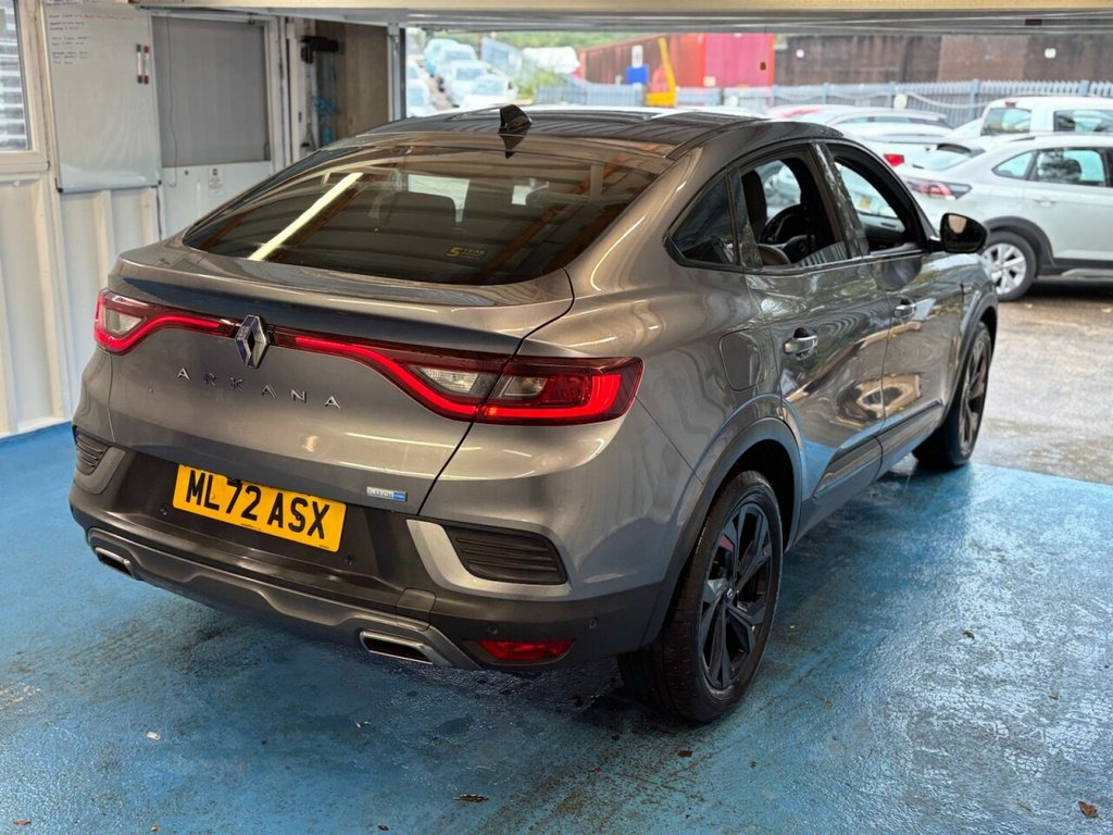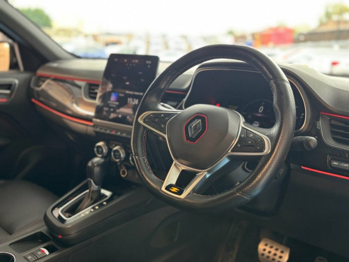 2 KEYS+1 OWNER FROM NEW+ALLOYS+HISTORY+HALF LEATHER SEATS+PRIVACY+PARK CONTROL+DIGITAL DASH+MEDIA+BLUETOOTH+NAV+CLIMATE+CRUISE+HPI CLEAR+VOSA MOT HISTORY, CLEAN +GREAT DRIVE+GOOD MPG,PART EXCHANGE WELCOME+FULL DEALER FACILITIES+RAC CHECKED+FINANCE SPECIALISTS+The car is in very good condition in and out . Bodywork and interior clean for age and mileage . Interior is clean and tyres good ,Engine and gearbox in good order. This 2022 Renault Arkana E-TECH r.s. line is a superb example, having had only one owner since new. This stylish coupe SUV boasts a 1.6 litre petrol hybrid engine, offering an impressive fuel economy of 59 miles per gallon. As a Euro 6 compliant vehicle, it also benefits from low CO2 emissions. The r.s. line trim enhances its sporty appeal, and it comes equipped with a suite of advanced features for your convenience and safety. These include Blind Spot Warning with assistance, wireless charging for your smartphone, and seamless smartphone integration with both Apple CarPlay and Android Auto. For effortless driving, it features Adaptive Cruise Control with a speed limiter, and parking is made simple with front and rear parking sensors. The highlights of this Renault Arkana demonstrate its excellent value and efficiency. Its 59 mpg fuel economy is a significant advantage, meaning fewer trips to the petrol station and lower running costs. Furthermore, its low insurance group rating indicates that insuring this vehicle will be more affordable compared to simila 18in Alloy Wheels - Silverstone Diamond , 7in TFT Driver Information Display, ABS with EBA - Emergency Brake Assist, Active Emergency Braking System - AEBS, Adaptive Cruise Control with Speed Limit, Airbags - Deactivation - Front and Side , Anti Drill Door Locks and Locking Fuel C, Auto Dimming Rear View Mirror, Automatic Climate Control with Combined , Automatic Headlights, Automatic Windscreen Wipers with Rain Se, B Brake Mode - One-Pedal Driving with In, Black Interior Roof Lining, Black Side Door Protection with Gun Meta, Blind Spot Warning, Bluetooth - DAB Radio and USB Ports, C-Shaped LED Front Signature Lighting, Carbon Style Soft Touch Dashboard, Central Console with Storage, Central