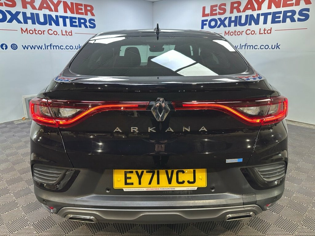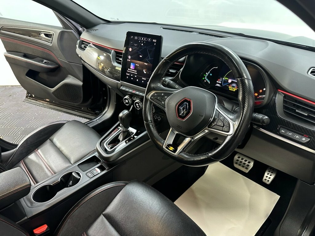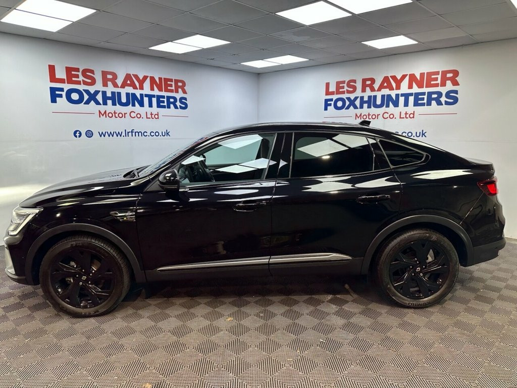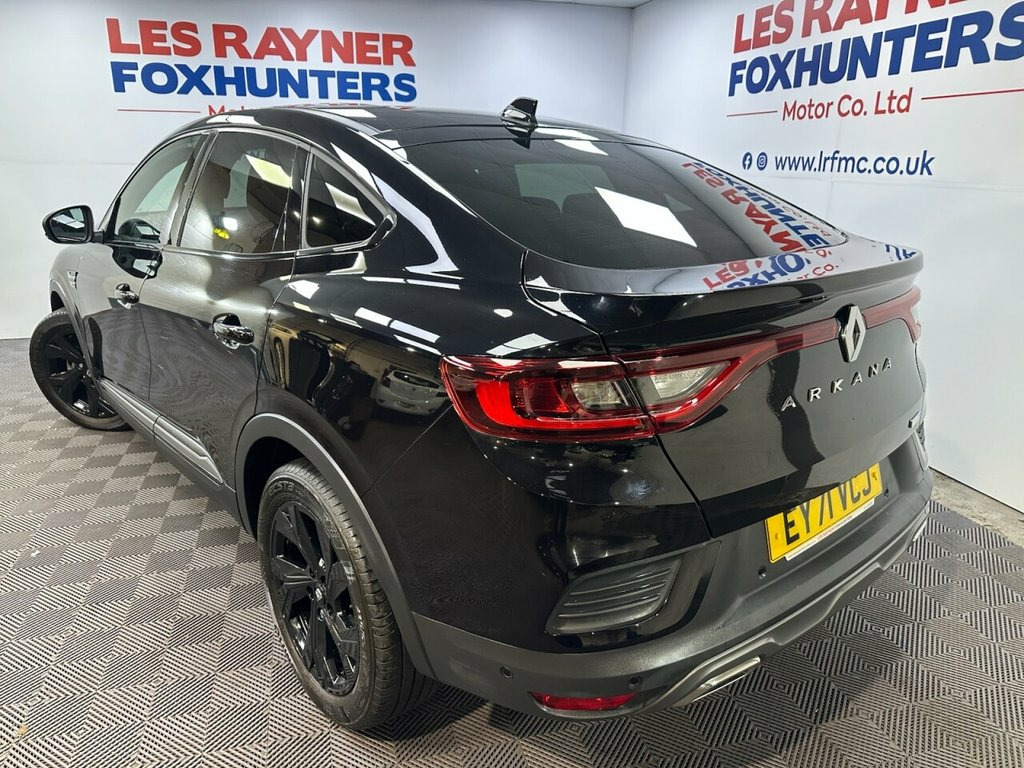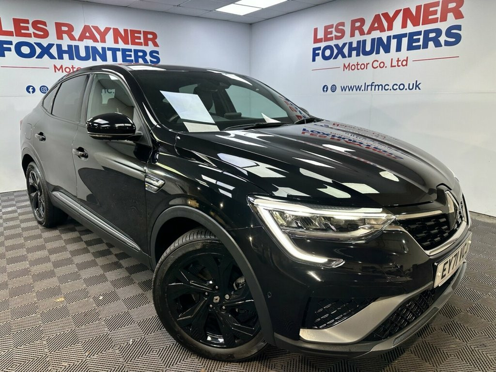 EY71VCJ RENAULT ARKANA 1.6 E-TECH r.s. line SUV 5dr Petrol Hybrid Auto 2WD Euro 6 (s/s) (145 bhp)- 37,902 miles- 1 former keeper- 2 recorded services- The Renault Arkana E-Tech is a coupe- SUV available as a self-charging full hybrid, powered by a 145hp E-Tech powertrain that uses an electric motor for much of the time, especially in cities. It features a multi-mode gearbox for a smooth driving experience, impressive fuel economy, low CO2 emissions, and a large, practical boot for its design. The E-Tech technology automatically charges its battery while driving, eliminating the need to plug it in. Specification includes Reversing camera, rear privacy glass, LED headlights, 18in alloys, electric folding mirrors, lane departure system, blind spot monitoring, full leather, heated seats and steering wheel, multifunction steering wheel, drive modes, cruise control, Sat Nav, Bluetooth, Apple carplay, android auto, DAB Radio, Air conditioning, Climate control. 2 keys. Whats App Part Ex Valuation Hotline! Send photo's and details to 0759183525 Black