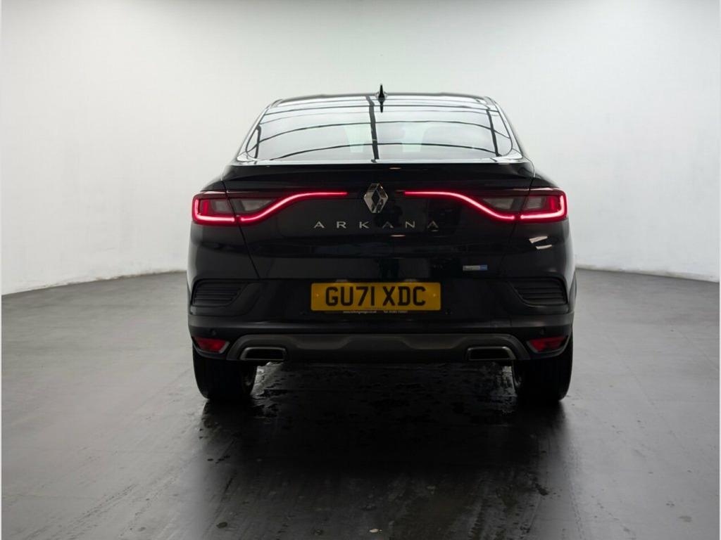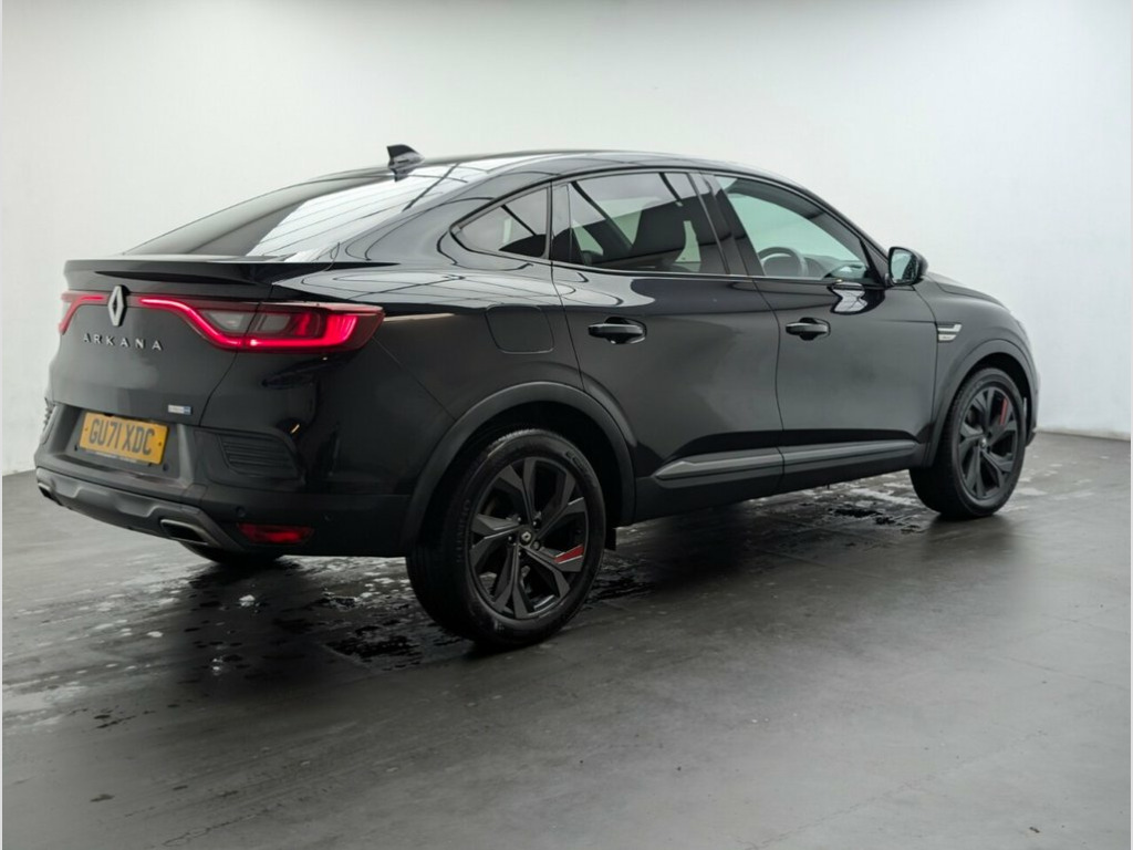18" alloys, Navigation, Parking camera, Heated seats and Lane keep assist. 4 services - last service done at 41132 miles on 18/07/2025. This 2021 Renault Arkana E-TECH r.s. line boasts a clear vehicle history check and an MOT valid until July 2026, offering peace of mind for its next owner. This stylish SUV coupe features a 1.6 litre petrol hybrid engine, meeting Euro 6 emission standards. Inside, you'll find a host of convenient features including adaptive cruise control with speed limiter, smartphone integration with Apple CarPlay and Android Auto, and a heated steering wheel for those colder journeys. Enjoy automatic climate control with advanced sensors for optimal cabin comfort, alongside Bluetooth connectivity, DAB radio, and USB ports. The Renault Arkana E-TECH r.s. line stands out with its impressive fuel economy, achieving up to 59 miles per gallon, which indicates it is more economical than many similar vehicles. Furthermore, its low CO2 emissions and low insurance group highlight its cost effectiveness for everyday driving. Practicality is also a strong point, with generous boot space making it suitable for families and those needing extra storage. 18in Alloy Wheels - Silverstone Diamond , 7in TFT Driver Information Display, ABS with EBA - Emergency Brake Assist, Active Emergency Braking System - AEBS, Adaptive Cruise Control with Speed Limit, Airbags - Deactivation - Front and Side , Anti Drill Door Locks and Locking Fuel C, Auto Dimming Rear View Mirror, Automatic Climate Control with Combined , Automatic Headlights, Automatic Windscreen Wipers with Rain Se, B Brake Mode - One-Pedal Driving with In, Black, Black Interior Roof Lining, Black Side Door Protection with Gun Meta, Blind Spot Warning, Bluetooth - DAB Radio and USB Ports, C-Shaped LED Front Signature Lighting, Carbon Style Soft Touch Dashboard, Central Console with Storage,