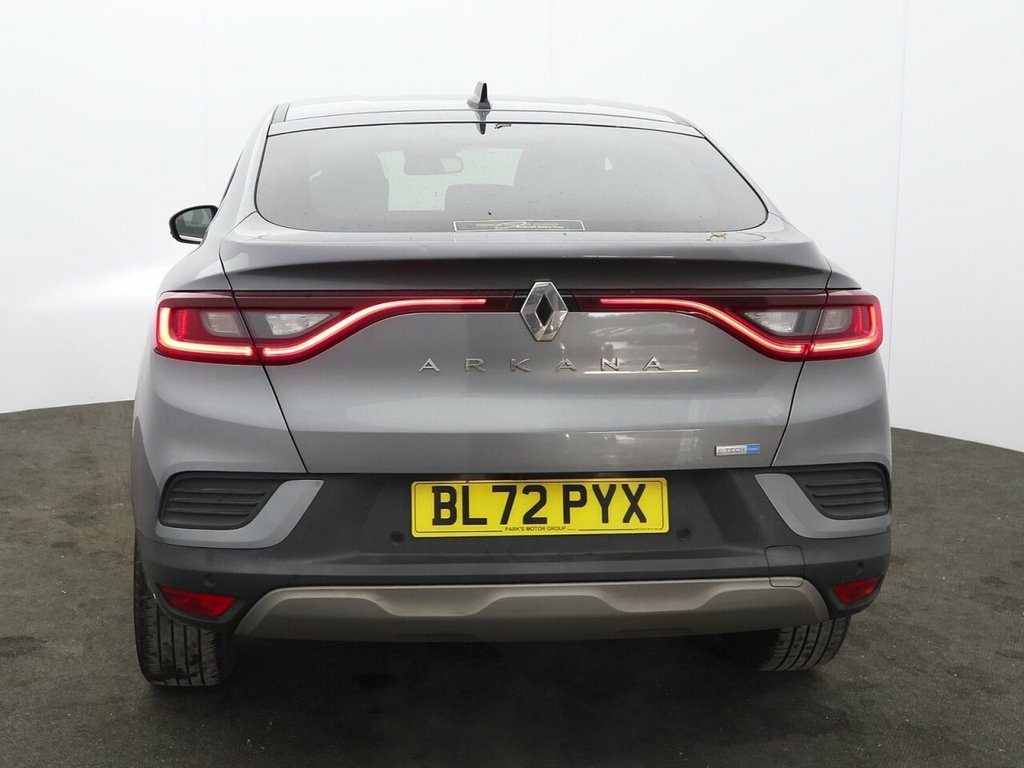 Discover this 2022 Renault Arkana E-TECH S Edition, a stylish and efficient hybrid SUV that offers a compelling blend of technology and practicality. This Euro 6 compliant model boasts a 1.6 litre petrol hybrid engine, providing an impressive fuel economy of up to 59 miles per gallon. The S Edition trim ensures you benefit from a host of convenient features, including automatic headlights that illuminate your path, and a handsfree keycard for effortless keyless entry and start. Stay connected and entertained with Bluetooth, DAB radio, and USB ports, while front and rear parking sensors offer enhanced assistance when manoeuvring. Inside, you'll appreciate the automatic climate control, complete with a humidity and air quality sensor for a comfortable cabin environment. This Renault Arkana stands out with its exceptionally low CO2 emissions, making it an environmentally conscious choice. Its large boot space provides ample room for all your luggage and shopping needs, while its low insurance group rating means more savings for you. These highlights demonstrate how this Arkana offers a superior driving experience compared to other vehicles in its class, combining advanced hybrid technology with everyday usability and cost effectiveness. 7in TFT Driver Information Display, Bluetooth - DAB Radio and USB Ports, Easy Link 9.3in Portrait Touchscreen wit, Renault Automatic Emergency Assist, Shiny Black Shark Fin Antenna, Smartphone Integration with Apple CarPla, 18in Alloy Wheels - Pasadena - Diamond C, Black Side Door Protection with Chrome I, Chrome Decopart on Wing - Fender Molding, Chrome Window Lower Lining, Door Mirrors - Electrically Adjustable a, Electric Windows - Front and Rear, Extra Tinted Windows - Rear and Tailgate, Front Grille with Chrome on Upper Part, Grey Front and Rear Skid Plates, Auto Dimming Rear View Mirror, Automatic Climate Control with Combined , Automatic Windscreen Wipers with Rain Se, Central Console
