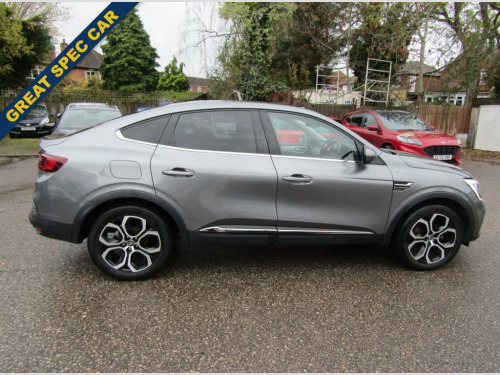 WE ARE PLEASED TO OFFER THIS RENAULT ARKANA SELF CHARGING HYBRID,, , GREAT ECONOMY,,,HIGHER DRIVING POSITION,,,,PLEASE CALL TO VIEW AND BOOK A TEST DRIVE 01159615389,, PART EXCHANGE WELCOME,, FINANCE PACKAGES AVAILABLE,, WE ARE A LOCAL INDEPENDENT BUSINESS WITH OVER 30 YEARS TRADING EXPERIENCE ,,,WE HAVE OUR OWN WORKSHOP FACILITIES AND M.O.T STATION,, SERVICE PLAN AVIALABLE ONLY £17.50 PM 18in Alloy Wheels - Pasadena - Diamond C, 7in TFT Driver Information Display, ABS with EBA - Emergency Brake Assist, Active Emergency Braking System - AEBS, Adaptive Cruise Control with Speed Limit, Airbags - Deactivation - Front and Side , Anti Drill Door Locks and Locking Fuel C, Auto Dimming Rear View Mirror, Automatic Climate Control with Combined , Automatic Headlights, Automatic Windscreen Wipers with Rain Se, B Brake Mode - One-Pedal Driving with In, Black Side Door Protection with Chrome I, Blind Spot Warning, Bluetooth - DAB Radio and USB Ports, C-Shaped LED Front Signature Lighting, Central Console with Storage, Central Door Locking, Chrome Decopart on Wing - Fender Molding, Chrome