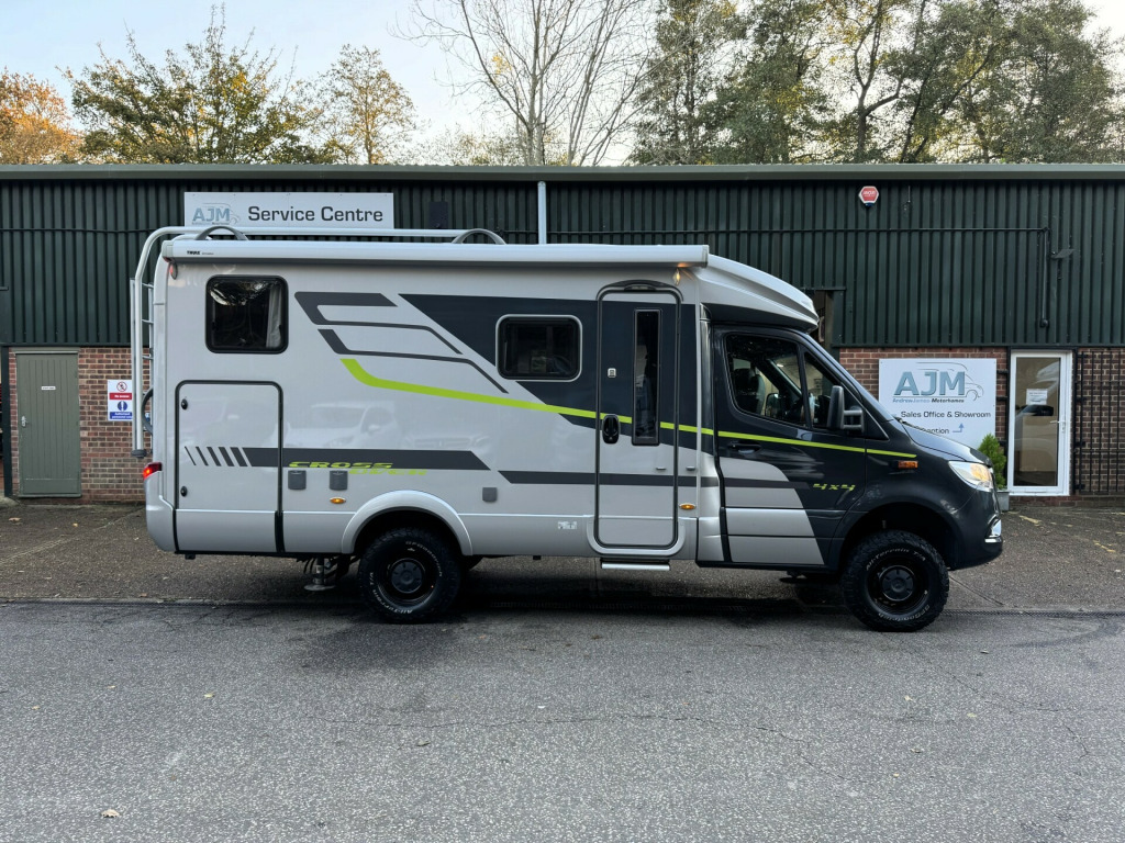 *** NEW ARRIVAL *** We are delighted to offer this stunning very rare 2023 Hymer ML-T570 Crossover on the ever popular Mercedes Benz 4x4 chassis.This incredible example at a high specification is presented in excellent condition courteous of the previous owner.Cab features: Mercedes Benz Sprinter chassis, 8 speed Automatic, 4x4 drive, full media system with APP mode and navigation, Keyless push button start, Climate control, Reverse camera, Electronic waste water dump valve control, adaptive cruise control, lane assist, rubber floor cab carpets, Remis cab blinds, full leather swivel base captains chairs.The layout consists on spacious seating group with ample under bench and over head storage, LED ambient lighting throughout, large over cab heki light with LED lamps and USB charging points, LED 12v TV, option for 3rd berth on lounge conversion, battery monitor system and inverter control panels.Moving down the motorhome the side kitchen offer 3x large under counter draw units with cutlery tray, large overhead cupboard, 2x burner gas hob with glass lid cover, single bowl stainless sink with chrome mixer tap and glass lid cover, kitchen worktop extension, Thetford 12v Compressor large fridge freezer.Opposite the kitchen is the spacious washroom with swing wall to separate for shower option, Thetford electric flush toilet with total 2x cassettes with stow away location in external locker for second cassette. ample storage cupboards, LED lit vanity mirrors, roof heki light for ventilation.The rear of the motorhome offers the large single/double bed option with memory foam mattress, large under bed wardrobe with easy access lifting top panel, large cupboard with shelving, over bed cupboards, USB and mains 240v points, 12v roof extractor vent, roof light above bed.Electrical features: Truma gas/electric heating and hot water system, 2x Lithium 150ah power cells, 1x 95ah AGM battery, Dometic inverter with remote switch control button, Roof mounted solar panel.Moving to the exterior features: Gas locker for twin 6kg bottles with spare toilet cassette mount, Large garage with external shower, 450kg load rating in garage, Thule colour coded wind out canopy awning, external BBQ point, rear ladder and roof bars, 16'' wheels with Goodrich white writing walled tyres, rear wall mounted full size matching spare wheel, Fixed tow bar with electrics, Reverse camera, LED drive front roof facing spot lamps, E&P hydraulic levelling system.Viewing now available and highly recommended.Disclaimer: Whilst every effort is made to ensure the accuracy of the data shown, it is not a definitive statement of specification of the vehicle and no responsibility will be accepted for errors in listing made on this site. uetooth connection, climate control, colour satnav, external gas bbq point, full leather, manufacturer direct, rain-sensing wipers, cassette toilet, double bed, fixed bed, hand basin, shower, wardrobe, 2-burner hob, fridge freezer, side kitchen, 3 point seatbelts, central locking, electric windows, park assist camera, power steering, adaptive cruise control, adaptive steering, digital instrument cluster, multi-function steering wheel, spare wheel, steering wheel reach adjustment, traction control, trip computer, abs, service indicator, twin air bags, alarm cat 1, immobiliser, privacy glass, tracker fitted, electric handbrake, electric mirrors, heated door mirrors, bluetooth enabled stereo, digital radio, mobile phone app interface, radio, front armrest, height adjustable drivers seat, auto lighting, body coloured bumpers, colour coded body, front fog lights, led 3rd brake light, led rear lights, towbar - fixed, tyre repair kit, 12v compressor fridge, 12v points, 32, 8 speed automatic, ample external locker space, ample storage offered, dometic inverter, double floor, double glazed side windows, e&p levelling system, external shower point, fully winterised, heated rear garage, internal blinds, internal fitted curtains, large agm leisure battery, large rear garage, led lighting throughout, mains 240v sockets, omnistor colour coded awning, overhead led lighting, roof bars, roof mounted solar panel, space for 2x 6kg gas bottles, swivel captains chairs, truma dual fuel heating system, truma electric/gas water heater, weight 4100kg, wrap around cab blinds, smart lithium power cells