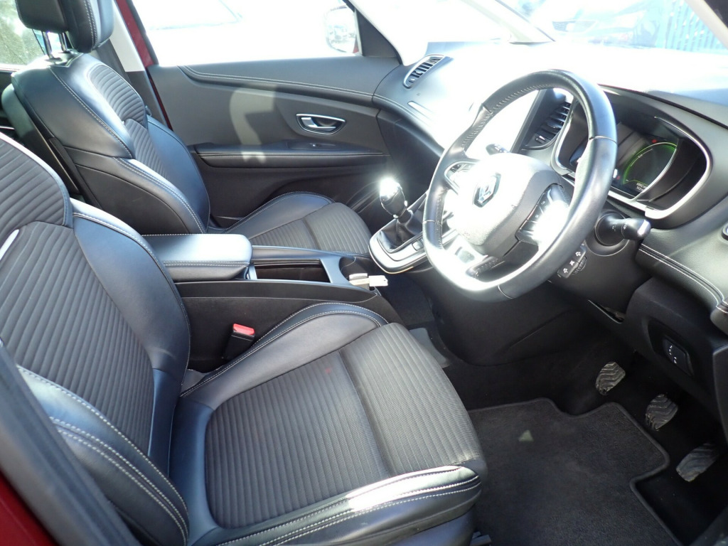 We are very pleased to offer this 2017 Renault Scenic Dynamique S Nav finished in Metallic Carmin Red, and powered by the efficient 1.2 litre TCe petrol engine with 6-speed manual transmission. This is a luxury specification family MPV with 20'' alloy wheels, panoramic roof, satellite navigation, DAB digital radio, 3D sound system, Bluetooth, all-round parking sensors, reversing camera, climate control and much more. Complete with a full service history, 2 keys, carpet mats and the Renault book pack, this outstanding Scenic is available now for your viewing and test drive in Tonbridge where we are open 7 days a week. v power socket - front, 12v socket - rear centre console, arkamys auditorium 3d sound system with 6 speakers, display - digital speedometer - 7in tft screen, in car entertainment connections, r-link 2 multimedia system - 8.7in touchscreen, 20in alloy wheels - exception, body sided moulding with chrome insert, chrome detailing, door handles - body coloured with chrome inserts, door mirrors - body coloured, door mirrors - electrically operated - heated - folding, electric windows - front one touch, electric windows - rear, extra tinted windows - rear and tailgate, heated rear windscreen with wash-wipe, integrated fuel filler cap, led indicators in door mirrors, panoramic fixed glass sunroof with electric sunblind, tyre inflation kit, 3 height adjustable rear head restraints, adjustable dashboard illumination, air ducts to 2nd row passengers under front seats, air recirculation, automatic dual zone climate control with air quality sensor, central console - sliding, dashboard and upper door panels with stitch detailing, driver and front passenger led reading lights and led central light, driver and front passenger seat with rear mounted storage pockets and aviation tables, driver and passenger sunvisors with vanity mirror and light, electrochromatic rear view mirror, extra comfort front headrests, fingertip audio system remote control, front and rear towing rings, gear knob - leather and satin chrome, glovebox light, illuminated luggage compartment on opening of boot, indicators with side repetitions, interior courtesy light controlled by all 4 doors, led reading lights for 2nd row passengers, leather steering wheel, multi position trunk floor, multisense system - ambient lighting and driving modes selector, one touch folding 2nd row seats, passenger height adjustment seat, pollen filter, seats - drivers height and lumbar adjustment, seats - fold flat, start and stop button, steering wheel - rake and reach adjustable, sunblinds - second row rear windows, 3 point inertia reel seatbelts, abs with ebd - electronic brake distribution and emergency brake assist, aebs - advanced emergency braking system with pedestrian detection, airbags - curtain front and rear, airbags - driver, airbags - front lateral, airbags - front passenger, child locks, esp - electronic stability programme with understeer control, electronic parking brake, hsa - hill start assist, isofix - child seat fixing points - outer rear seats and front passenger, insurance approved - category 1 alarm system and immobiliser, insurance approved locks and ignition barrel, keycard - hands free, load limiters, raid - renault anti intruder device - auto closure - 6mph, seatbelts not fastened warning, seats - height adjustable front seatbelts with double pretensioners, superlocking, visio system, automatic headlights and windscreen wipers, daytime running lights - led, front fog lights, headlights - halogen, led tail lights, puddle lighting in door mirrors, cruise control with speed limiter, door-boot open warning light, eco mode button, exterior temperature indicator, fatigue alert, gear change indicator, head up display - colour with adjustable brightness, low fuel level warning light, oil pressure warning, power assisted steering, rear parking camera, rev-counter, trip computer, tyre pressure monitoring system