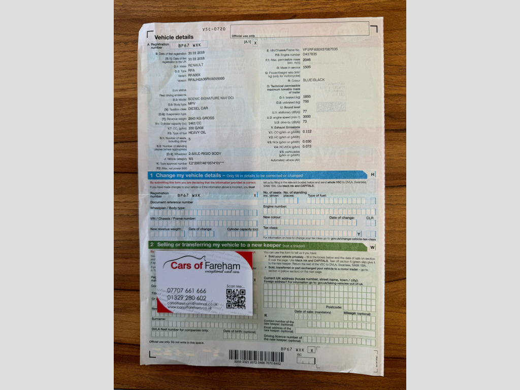 This 2018 Renault Scenic 1.5 dCi Signature Nav Euro 6 5dr MPV is currently available for £8,995 in Fareham Hampshire with Diesel engine and Manual gearbox. For more information or to arrange a viewing, click here to send us an email using form below.
