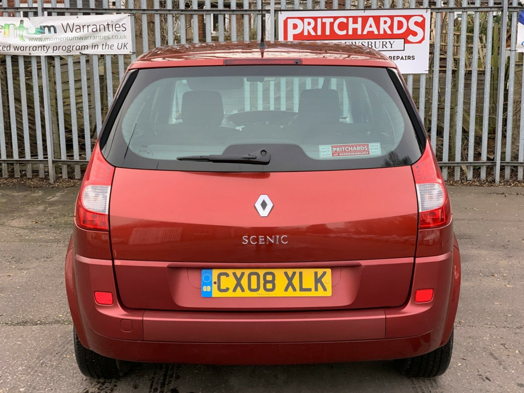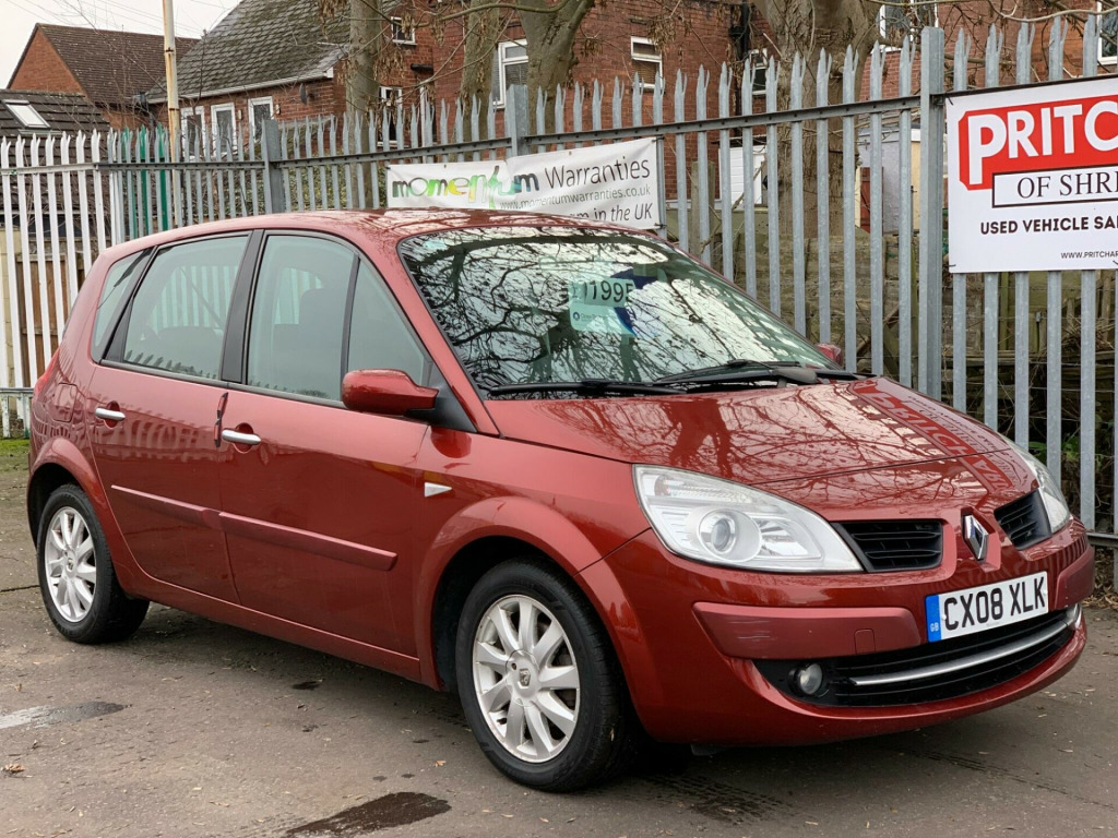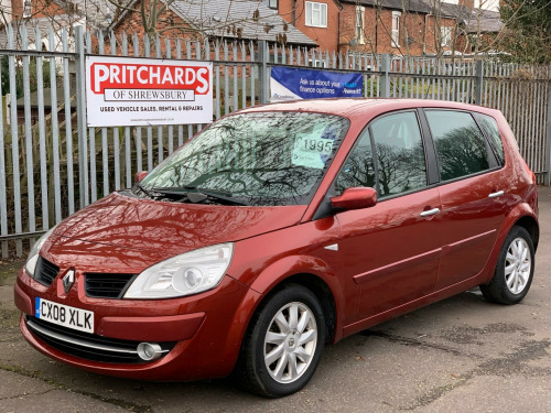 Discover our 2008 Renault Scenic. With a full service history, two keys, exceptionally low mileage for the age and an incredibly sweet running engine - what's not to like? If you're after a budget vehicle to get you from A-B, this could be the vehicle for you.The very low mileage is backed up with a comprehensive 17 stamp service history. It has all sorts of convenient storage containers, and fold out tables in the rear. It's the perfect budget car with Renault's old and trusty 1.6 petrol engine. Please feel free to come and view this car at our forecourt in Shrewsbury.. Adjustable Steering Column/Wheel, Air Bag Driver, Air Bag Passenger, Air Bag Side, Air Conditioning and Pollen Filter, Alarm, Alloy Wheels (16in), Alloy Wheels - 16in, Alloy Wheels - 16in Nervastella, Anti-Lock Brakes, Body Coloured Bumpers, Central Door Locking, Centre Rear Seat Belt, Computer (Driver Information System), Deadlocks, Electric Windows (Front/Rear), Front Fog Lights, Head Air Bags, Head Restraints, Immobiliser, In Car Entertainment (Radio/CD), Mirrors External (Electric Heated/Folding), Mirrors Internal, Power Socket, Power-Assisted Steering, Seat - ISOFIX Anchorage Point, Seat Height Adjustment, Seat Lumbar Support, Side Protection Mouldings, Single-CD/RDS Radio/6 Speakers/Fingertip Remote, Spare Wheel, Upholstery Cloth. Full service history