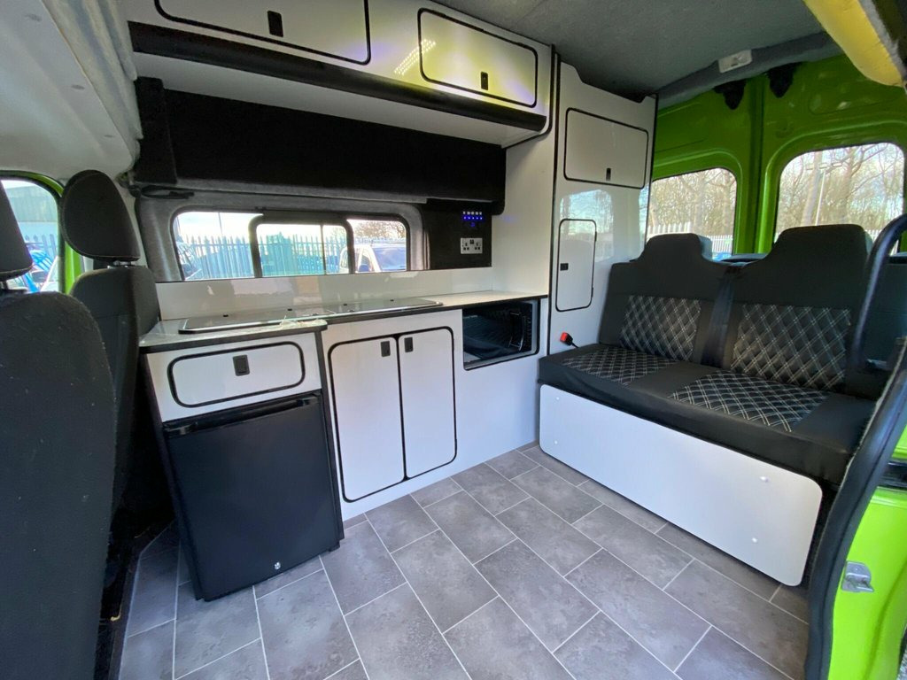 PODIUM PCL IS DELIGHTED TO PRESENT A RENAULT TRAFIC HIGHROOF CONVERTED FOR 2 WITH A BRAND NEW ROCK AND ROLL BED THAT CAN SLEEP 2 PEOPLE IN COMFORT, A BEAUTIFULLY LAYED OUT 2 BERTH WITH 4 SEAT BELTS, ALL ELECTRICAL CONNECTIONS WIRED, WITH LED LIGHTS, REAR ELECTRIC HOOKUP, WEBESTO DIESEL HEATER FITTED, BRAND NEW 2 BURNER STOVE WITH GAS CONNECTION WITH SINK INSTALLED WITH FRESH WATER TANK, FULLY WORKING CAB AIR CONDITIONING, REAR CAN INSULATED AND LINED, AMPLE STORAGE, PRINTED SERVICE HISTORY WITH 3 SERVICES, JUST BEEN FULL SERVICED, MOT VALID UNTIL 08/08/2026, 1 OWNER SINCE NEW. Step into the world of Podium PCL, where quality, trust, and expertise come together to create a refined vehicle-buying experience. We proudly showcase a wide selection of over 200 meticulously handpicked vehicles, including Cars, SUVs, Vans, Motorhomes, and Campervans. Each vehicle is carefully sourced by our expert purchasing team, backed by over 12 years of industry experience, and undergoes thorough checks to ensure the highest standards. All our vehicles are HPI clear and supported by the AA Dealer Promise, offering complete peace of mind with every purchase. Enjoy the added benefit of 12 months of complimentary AA breakdown cover, along with a 3-month warranty included within the advertised price, extendable up to 3 years for long-term reassurance. We also offer swift vehicle deliveryfree within a 150-mile radius and just ?2 per mile thereafter (Scotland rates may vary). Once payment is received, 12V Power Socket - Front, 16in Steel Wheel with Delos Wheel Trims, ABS with EBD - Electronic Brake Force Di, Airbags - Driver, Alarm, Anchorage Points x18, Bamboo Green, Bulkhead - Deleted, Bulkhead - Full Steel, Closed Glovebox, DAB Radio with Bluetooth - USB Socket an, Deadlocking, Door Mirrors - Heated with Electric Adju, Drivers Seat with Armrest - Height Adjus, Electric Windows - Front, Electronic Engine Immobiliser, ESC - Electronic Stability Control with , Gear Change Indicator, Left Side Loading Door - Unglazed, Manual Air Conditioning with Pollen Filt, NO MediaNav or Renault R-Link 7in Touch , Parking Sensors - Rear, Passenger Bench Seat, Power Assisted Steering, Rear Doors - 180 De